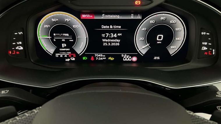 Audi connect safety and service (e-call), Audi connect with Amazon Alexa Integration, Audi drive select (Auto, Comfort, Dynamic, Efficiency, Individual, Off-road and All road), Audi phone box light with wireless charging, Audi virtual cockpit - 12.3" high-resolution classic display with fully customisable instrument cluster, Bluetooth interface, Camera based traffic sign recognition, Electromechanical power steering, MMI navigation plus with MMI touch screens includes 10.1" and 8.6" screens with haptic feedback, Natural voice recognition, Operating buttons in Matte black, Parking system plus with 360 degree display (front, rear and side sensors) - acoustic and visual park assist system, Power operated tailgate, Rear view camera, Smartphone interface includes wireless Apple carplay/Android Auto, Start/stop system, 85 litre fuel tank, Adaptive air suspension, Quattro all wheel drive with self locking centre differential, Audi music interface - front 2 USB-C ports with charger and data functions, Audi sound system with 6 channel amplifier, 180 watt amplifying capacity and 10 loudspeakers including subwoofer, DAB digital radio module, Aluminium roof rails, Aluminium window trim, Auto dimming frameless rear view mirror, Body coloured door mirrors, Electrically adj heated/folding + automatically dimming exterior mirrors with memory + automatic kerb side function for passenger side exterior mirror, Heat insulating glass in windshield, Integrated LED indications in door mirrors, LED 3rd brake light, LED daytime running lights, LED rear tail lights, Loading edge protection in stainless steel, Matrix LED headlights with dynamic front and rear indicators, Privacy glass - dark tinted rear and rear side windows from B-pillar backwards, Rear side wing doors, Rear wiper, S Line badge on wings, S Line body styling, S line bumpers in full body colour paint finish, S line roof spoiler, S line styling side ventilation grilles and side skirts, 3 seat bench in 2nd row, 3 zone climate control, Black cloth headlining, Comfort front centre armrest, Electric adjustable front seat with 4 way lumbar support, driver memory functionality, Folding rear seats, Front head restraints, Front/rear floor mats, Heated front seats, Illuminated door sill trims with S logo, ISOFIX child seat mounting for front passenger seat and 2 outer rear seats with top tether child seat mounting for all 3 rear seats, LED interior ambient lighting, Luggage compartment cover, Luggage compartment sill protection in stainless steel, Rear head restraints, Single front passenger seat, Stainless steel pedals, Sunvisors with illuminated vanity mirrors, 3 point seatbelts on all rear seats, Audi pre sense front, Child locks on rear doors, Convenience key with safelock and gesture tailgate, Driver and front passenger, front side and curtain airbags, Electromechanical parking brake, Electronic Stabilisation Control (ESC) including ABS, ASR and EDL, Extended pedestrian protection measures, Hill hold assist, Seatbelt reminder, Tyre pressure loss indicator, Warning triangle and first aid kit, Anti theft alarm with tow away protection, Anti-theft wheel bolts and wheel loosening detection, Keyless Go, Remote central locking, Darkened matt brushed aluminium inlays, Tool kit, Tyre repair kit,
