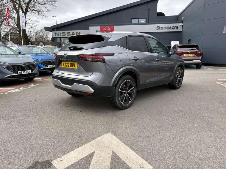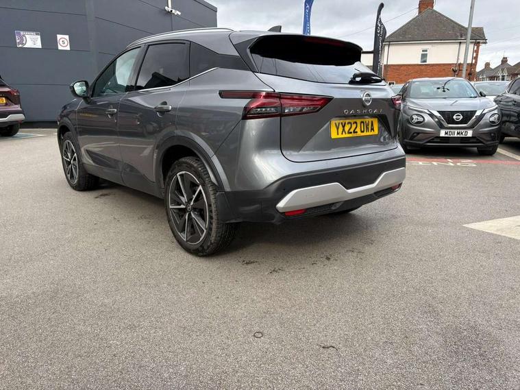 Blind spot warning, Drive modes (sport, normal, eco), Electric speed sensitive power steering, Emergency and breakdown call, Front and rear parking sensors, Full Digital 12.3" TFT Digital Combimeter, Google maps services - search, weather, 3D maps and Google street view, Hands free power tailgate, Idle stop/start system, Intelligent around view monitor, Intelligent Cruise control (ICC), Intelligent driver alert system, Intelligent forward collision warning, Intelligent lane intervention, Lane departure prevention, Lane departure warning system, Moving object detection, Nissan connect 12.3 inch touchscreen infotainment system, Nissan connect navigation, Push button starter, Rear cross traffic alert, Remote control services - door locks, lights, horn and car locator, Telematics - notifications and connectivity services, TomTom live traffic services, Traffic sign recognition with legal speed adjustment, Trip computer, Virtual personal assistant and firmware over the air capability, Wireless Apple CarPlay and wired Android Auto, Wireless charging pad, 6 speakers, AM/FM audio system with DAB, Bluetooth audio streaming, Front USB connections (Type-A and Type-C), Rear USB charging only ports (Type-A and Type-C), Auto dimming rear view mirror, Auto rear wiper when reversing, Automatic hazard signal with emergency stop signal, Body colour mirror caps, Body coloured door handles, Bodyside mouldings, Chrome side window finisher, Door handle with button, Dusk sensor, Electric auto folding door mirrors, Electrically adjustable and heated door mirrors with LED turn indicator, Fixed panoramic glass roof with electric sunshade, Follow me home headlights, Front and rear LED turning signals, Intelligent auto headlights, LED daytime running lights, LED rear lights, One touch front and rear electric windows with remote opening and closing, Partially body coloured bumpers, Privacy glass, Rain sensor, Rear bumper with graphite insert, Rear roof spoiler, Rear side wing doors, Rear styling plate, Roof rails, Shark fin antenna, Splash free rain sensing wipers, Super UV and infrared cut glass, Three blink turn signal, 12v power socket in dashboard and luggage, 2 way electrical driver lumbar adjustment, 2x Rear coat hooks, 3 bench rear seats in 2nd row, 3 rear headrests, 4 folding assist grip, 6 Luggage hooks - 4 on floor, 2 on side, 60/40 split folding rear seat bench, 8 way electric adjustable drivers seat, Ambient lighting around centre console, Ambient lighting in front doors, Centre console storage tray, Chrome interior door handles, Cloth/syntech leather monoform upholstery, Dark black/blueish PVC wrapping, Dark headlining, Driver and front passenger sunvisors with illuminated vanity mirrors, Driver seat back pocket, Dual zone automatic climate control with pollen filter, Front and rear door storage, Front cupholders x 2, Front door with bottle holders, Glovebox with light, Hard trunk cover, Height adjustable front headrests, Leather shift knob, Leather steering wheel, Luggage board system, Luggage space lighting, Manual lumbar support on passenger seat, Manually adjustable passenger (slide recline + lifter), Multifunction steering wheel, Passenger seat back pocket, PVC front centre console and armrest, Rear armrest with 2 cupholders, Rear door bottle holders, Single front passenger seat, Soft PVC kneepad, Steering wheel switches, Tilt/telescopic adjustable steering wheel, Two rear isofix child seat anchorage points with top tether, Welcome light and doors with console tray ambient lighting, Drive assist pack - Qashqai, Heat pack - Qashqai, Tech Pack (Drive Assist + HUD), 3x3 point rear seatbelt pretensioners + load limiters, ABS, ESP, EBD and brake assist, Active brake limited slip, Auto hold function, Child locks on rear doors, Curtain and front side, far side airbags, Driver and passenger airbags, Driver, passenger and 2nd row rear seat belt reminder, Electronic parking brake, Front seatbelt pretensioners + load limiters, Height adjustable front seatbelts, Hill start assist, Intelligent blind spot intervention, Intelligent front emergency braking with pedestrian, cyclist recognition and junction assist, Intelligent rear automatic braking, Tyre pressure monitoring system, Vehicle dynamic control, Capless fuel filler, Engine immobiliser, Nissan i-key, Remote central door locking with deadlocking, Thatcham Cat.1 alarm, Interior instrumental panel C finisher, 19" Alloy wheels, Tyre puncture repair kit,