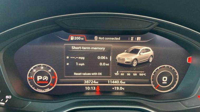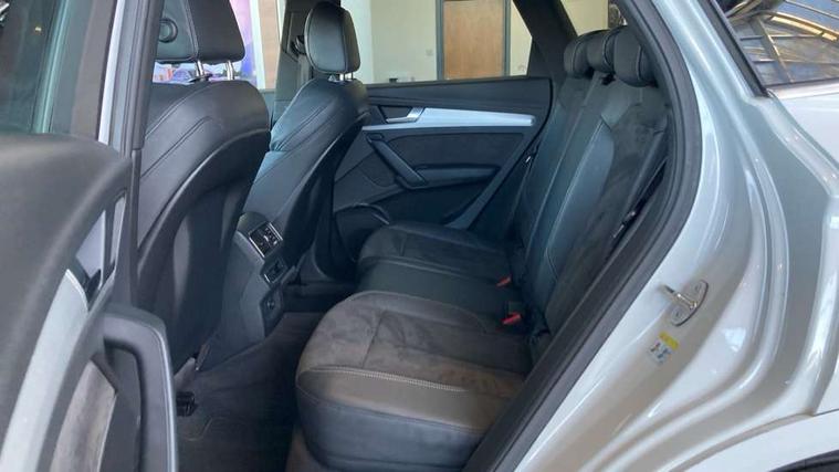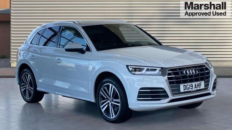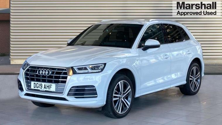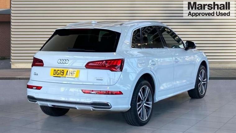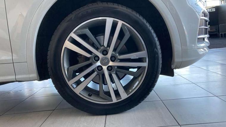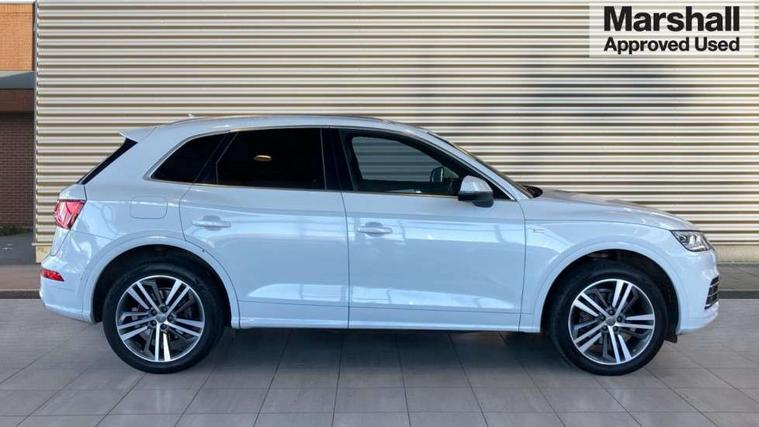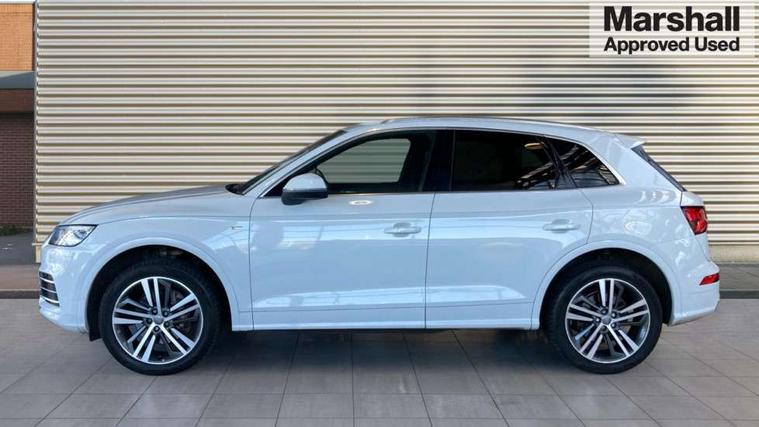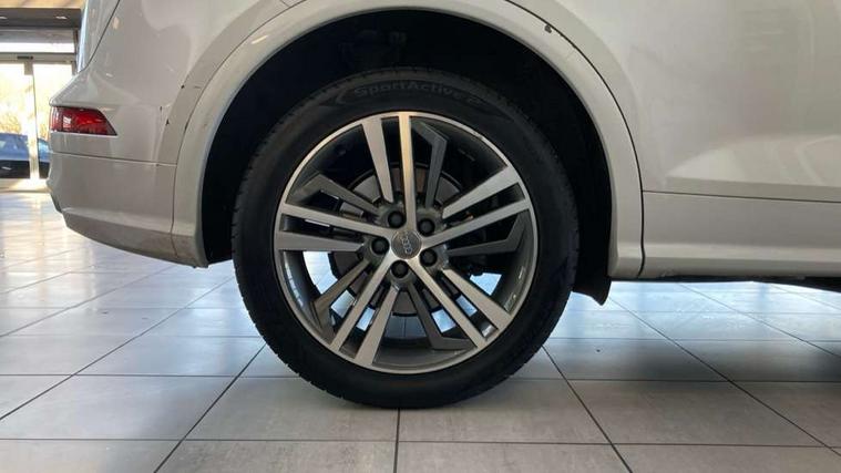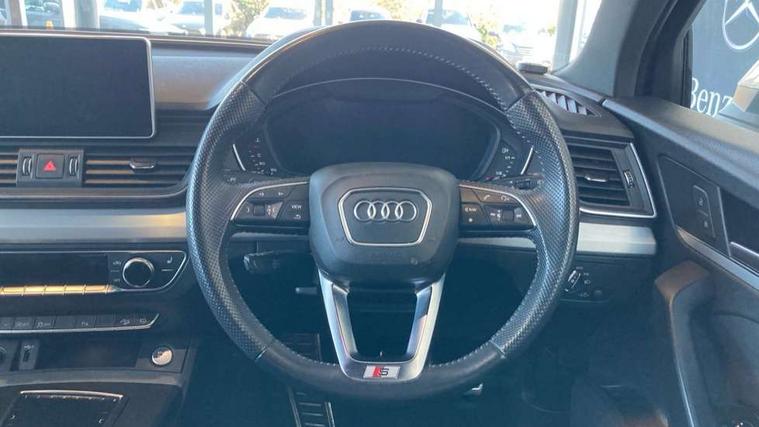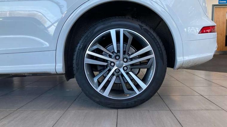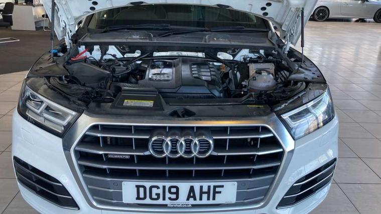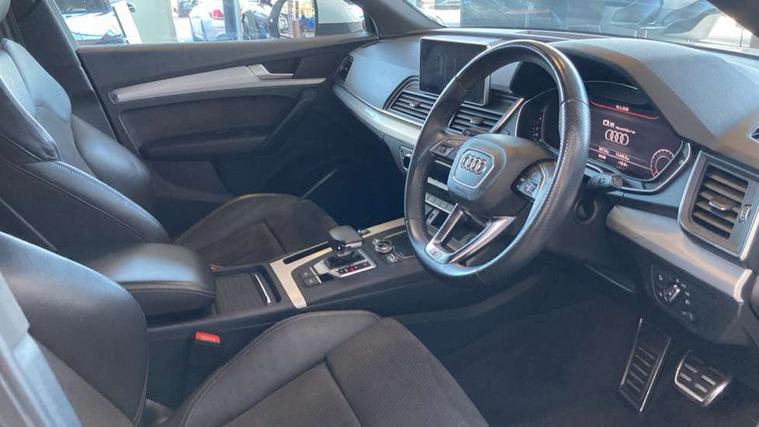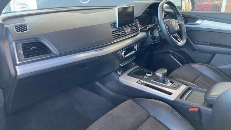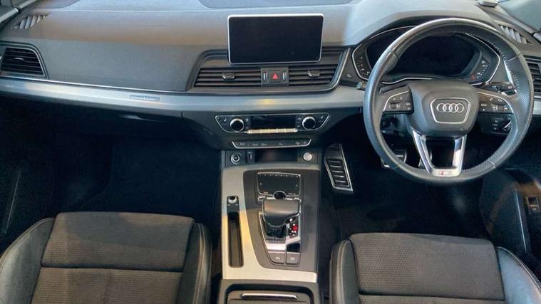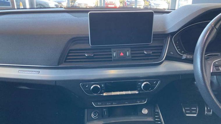 7" Colour driver information system, Audi drive select, Audi parking system plus with front and rear sensors, Audi smartphone interface, Electro - mechanical power assisted steering, MMI Navigation, Mobile telephone preparation - bluetooth interface, Power tailgate, Service interval indicator, Voice control system, Diesel particulate filter, 2x SD card slot, CD player, DAB Digital radio, MMI radio plus with 7" colour MMI screen and MMI controller, Acoustic windscreen, Air inlets in matt titanium black with blades in matt aluminium silver, Aluminium roof rails, Auto dimming rear view mirror, Automatic headlight levelling, Body colour bumpers, Body colour door mirrors, Body colour rear diffuser with matt aluminium silver surrounds, Body colour S Line side skirts, Body colour underbody protection, Chrome exhaust tailpipe, Front and rear electric windows, High beam assistant, Light and rain sensor for auto activation of lights and windscreen wipers, Loading sill protector in stainless steel, Privacy glass with front acoustic glazing, Rear wiper, S Line badges on the front wings, S Line front and rear bumpers/side air inlets and diffuser, S Line rear spoiler, Twilight grey matt radiator grille with matt aluminium horizontal chrome struts, 2 x USB charging port with aux input socket, 3 rear headrests, 3 zone climate control, 4 way electric lumbar support for driver and front passenger, 40:20:40 split folding rear seat with rear centre armrest, Black cloth headlining, Contrast stitching on seats, steering wheel and gear lever gaiter, Front centre armrest, Front sport seats with S embossed logo, Front/rear floor mats, Height adjustable front head restraints, Illuminated door sill trims with S logo, ISOFIX child seat mounting and top tether, Luggage compartment carpet, Perforated leather gearknob, Removable luggage compartment floor, Stainless steel pedals, Sunvisors with vanity mirrors, Tool kit, Trunk roller cover, High gloss pack - Q5, Non Smokers pack, 3 point seatbelts on all seats, 6 airbags - Driver, front passenger, curtain and side airbags, Electromechanical parking brake, Electronic stabilisation control including ABS, ASR and EDL, Front passenger airbag deactivation, Hill descent control, Hill hold assist, Multi collision brake assist, Pop-up bonnet for pedestrian protection, Pre sense city, Seat belt force limiter, Seatbelt monitoring, Tyre pressure warning, Warning triangle and first aid kit, Anti theft alarm, Anti-theft wheel bolts, Keyless Go access/ignition system, Remote central locking,