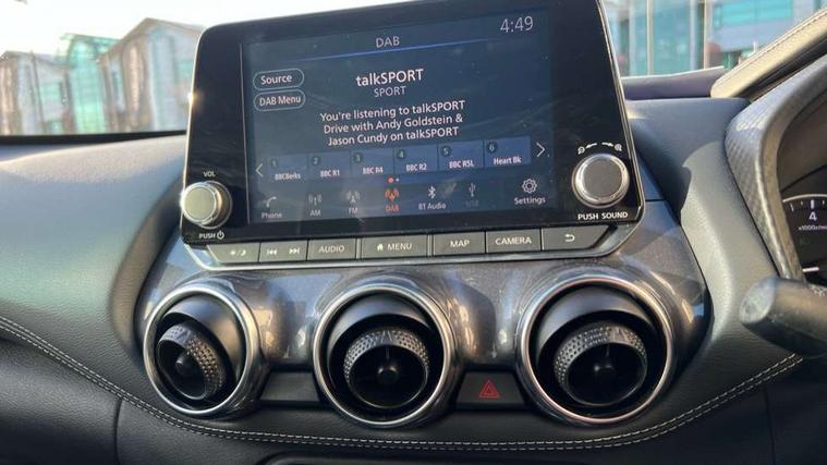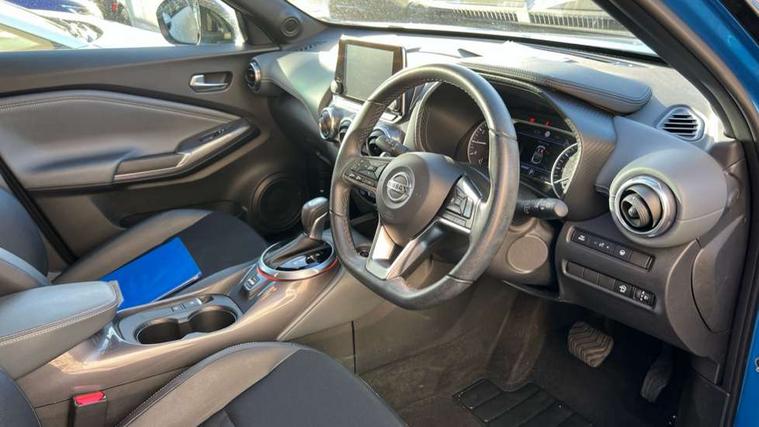 7" full colour TFT screen combimeter, Apple CarPlay and Google Android auto, Drive modes select (Eco, normal and sport), eCall emergency call system, Emergency and breakdown call, Front parking sensor, Idle start/stop system, Intelligent lane intervention, Lane departure warning system, Nissan connect 8" touch screen entertainment system, Nissan connect nav with TomTom traffic, Nissan connect services and Wifi connection, Outside temperature sensor, Power Steering, Rear parking sensor, Traffic sign recognition, Trip computer, Voice recognition, Gasoline particulate filter, Bluetooth system, USB, Aux-in and 12V socket, Bose personal plus audio system with 8 speakers(4 speakers and 2 headrest speaker for driver and passenger seats), Bose personal sound stage control, DAB Digital radio, Rear console USB port, Auto dimming interior rear view mirror, Auto headlights, Automatic hazard signal with emergency stop signal, Body colour bumpers, Body colour door handles, Electrically adjustable door mirrors with integrated indicators, Follow me home headlights, Front and rear electric window with one touch driver window, Heated and auto folding door mirrors, High beam assist, LED daytime running lights, LED front fog lights, LED headlamps, LED rear fog lamp, LED rear lamps, Rain sensor windscreen wipers, Rear privacy glass, Rear side wing doors, Rear wiper, Thermaclear heated windscreen, Three blink turn signal, 3 height adjustable rear headrests, 3 seat bench in 2nd row, 60/40 split folding rear seat, Automatic climate control, Card holder on driver sunvisor, Cloth/Synthetic leather upholstery, Door ambient lighting, Driver and passenger sliding and reclining seats, Driver seat back pocket, Driver side rear coat hanger, Driver/passenger sunvisors and vanity mirrors, Front and rear cabin lights, Front armrest, Front door pockets with bottle holders, Front head restraints, Front passenger isofix child seat anchorage point, Front/rear passenger grab handles, Gear console ambient circle lighting, Grey synthetic leather kneepad, Heated front seats, Height adjustable driver's seat, Height adjustable passenger seat, Internal chrome door handles, Leather gearshift knob, Leather steering wheel, Luggage board, Luggage space lighting, Monoform sporty seats, Multifunction steering wheel, Passenger seat back pocket, Rear door bottle holders, Single front passenger seat, Steering wheel mounted gearshift paddles, Telescopic steering wheel adjustment, Two cupholders in front centre console, Two rear isofix child seat anchorage points with top tether, Welcome light and console tray ambient lighting, ProPilot pack - Juke, ABS with EBD and brake assist, Active ride control, Active Trace Control, Driver and passenger airbags, Driver and passenger side airbags, Electric handbrake with auto hold function, Electronic Stability Programme (ESP), Front and rear curtain airbags, Height adjustable seatbelts, Hill start assist, Intelligent emergency braking with pedestrian and cyclist recognition, Rear door child safety locks, Seatbelt reminder for driver/front passenger and rear seats, Single tone horn, Three 3 point rear seatbelts, Traction control, Tyre pressure monitoring system, VDC Dynamic Vehicle Control, Ventilated rear brake discs, Alarm, Immobiliser, Intelligent Key with push button starter, Remote central locking,