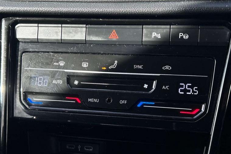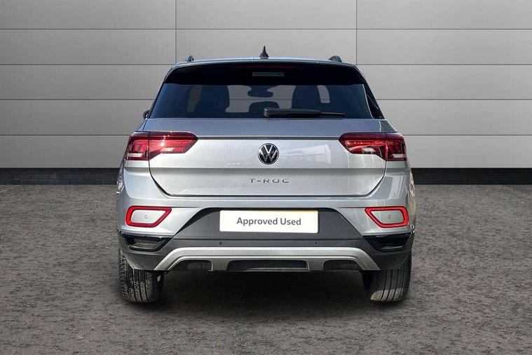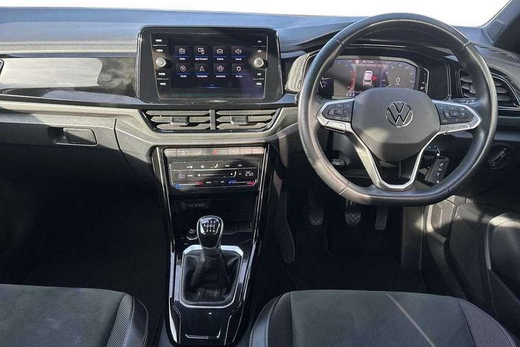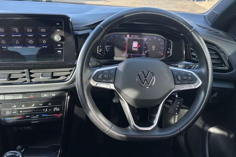 10.25" Digital cockpit pro, Bluetooth mobile phone interface, Driver alert system with fatigue detection, Driver tips and journey analysis, Dynamic road sign display, Emergency call service, Lane keeping system Lane Assist, Modified key software - reduce switch off time for key status change to Long no motion, Online services, Park assist including front and rear parking sensors, Power assisted speed sensitive steering, Service interval indicator, Tailgate/trunk lid release from outside, Think blue trainer driver tips and journey analysis, Warning sound and light for front seatbelts unfastened, Wireless app connect, Battery regeneration during braking, Front shock absorption, Rear shock absorption chassis with increased ride height, Start/stop function with battery regeneration, Diversity antenna for FM reception, Front and rear 6 speakers, Music playback - MP3, WMA and AAC files, Premium USB cable in choice of either Apple or Android smartphone compatibility, SD card slot, Simultaneous pairing of 2 compatible mobile devices, Title and cover art display, We Connect and We Connect Plus functionality, 3rd brake light, Auto dimming interior rear view mirror, Automatic hazard lights activation under emergency braking, Automatic headlight control with LED separate daytime running lights with coming/leaving home function, Body colour sports bumpers with silver metallic underbody fascia, Dynamic headlight range control with self adjusting whilst driving, Extended roof spoiler, Exterior mirrors aspherical on driver side, convex on front passenger side, External USB type C socket and charging sockets, Front windscreen wiper with intermittent wipe and 4 position delay, Heated rear window, LED Plus headlamps, LED rear combination lamps, LED rear number plate lights, LED tail lamp rear comination lamps, Light mode for poor weather, rain, fog or snow, Power windows with comfort operation and circuit breaker, Rain sensor, Rear exhaust tailpipe, Rear fog light on one side and reversing lights on both sides, Rear side wing doors, Rear wash/wipe with intermittent wipe setting, Remote electrically foldable door mirrors, puddle lights and reverse activated passenger's door mirror, 12V power socket in centre console, 3 rear head restraints, 3 seat bench in 2nd row, 4 load lashing points in luggage compartment, Air care climatronic air conditoning system with active combination filter and 2-zone temperature control, Chrome plated radiator grille inserts, air vent surrounds and light switch surrounds, Door and side trim panel with leatherette insert, Drawer under drivers seat, Front + rear carpet mats, Front centre armrest, Front comfort sports seats, Front cupholders x 2, Front footwell illumination, Instrument lighting, white adjustable panel illumination, Interior ambient lighting and surround lighting, Interior light delay, Isofix child seat preparation, Leather gearshift handle, LED interior light with switch off delay/dimmer and 2 front/rear LED reading lights, Load-through provision with cup holder when folded down ('Unsplit rear seat bench, split folding backrest, with centre armrest), Luggage compartment lighting, Non-folding front passenger seat backrest, Single front passenger seat, Storage compartment in left and right luggage area, Storage compartment in rear doors, Storage compartments in driver and front passenger doors, Sunvisors with illuminated vanity mirrors, Variable boot floor, height adjustable and removable, Driver assistance pack without proactive passenger protection - T-Roc, 3 point height adj front seatbelts + pretensioners, 3 point seatbelts in outer rear with ECE label, ABS, Child locks on rear doors, Driver and front passenger airbag with front passenger airbag deactivation, Driver and front passenger safety-optimised head restraints, Drivers seatbelt reminder, Electronic parking brake, Electronic Stability Control (ESC) inc EDL (Electronic Differential Lock) and ASR (Traction Control), Front and rear passengers curtain airbag system including front side airbags, Front assist with city emergency braking and pedestrian monitoring, Front disc brakes, Front seat side impact airbags, Predictive pedestrian protection, Rear disc brakes, Single tone horn, Tyre pressure loss indicator, Volkswagen roadside assistance, Alarm with interior protection, Anti-theft alarm system with interior monitoring, backup horn, and towing protection, Remote central locking with SAFELOCK, radio remote control with 2 remote control folding keys, Trims for alloy wheels,