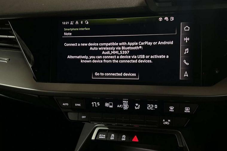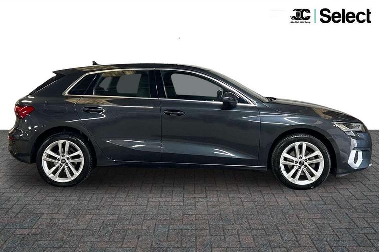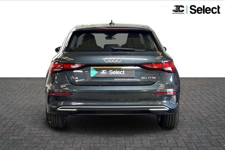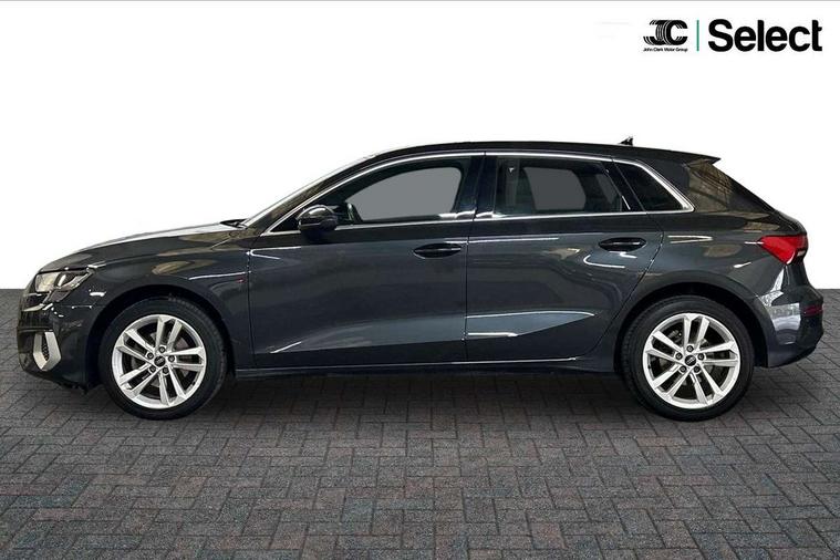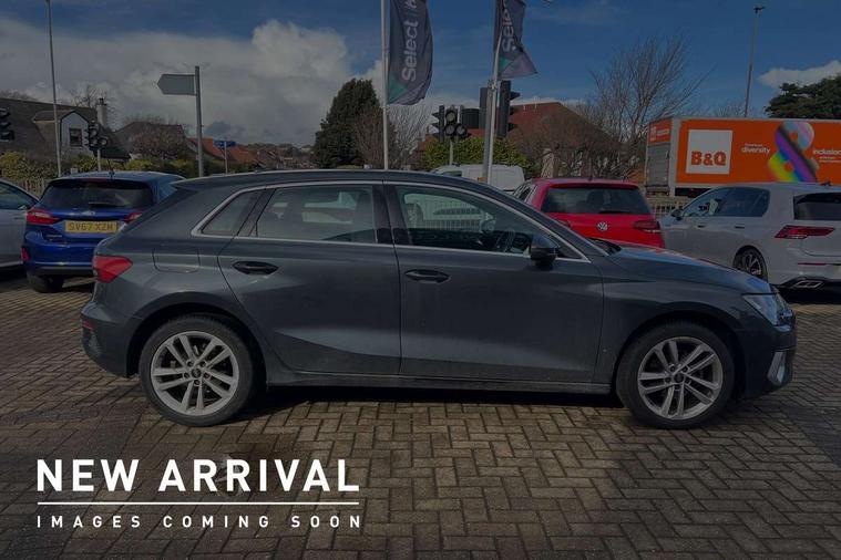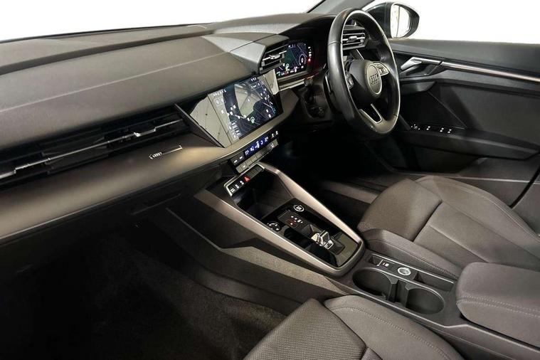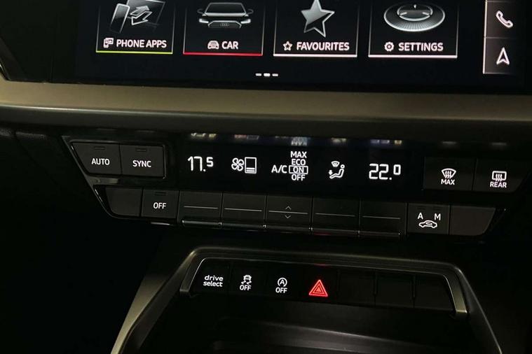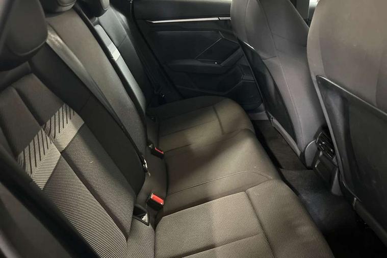 Audi drive select (Auto, Comfort, Dynamic and Individual), Audi smartphone interface, Audi Virtual Cockpit - 10.25" digital and colour instrument cluster, Automatic start/stop system with recuperation, Bluetooth interface, Camera based traffic sign recognition, Collision avoidance assistant, e-Call (emergency call), Electromechanical power speed sensitive steering, Lane departure warning system, MMI Navigation Plus with high resolution 10.1" colour touch screen display, Service indicator, Trip computer, Voice control system with natural language interaction, Standard suspension, 2xUSB-C connection with data and charging functions, 6 passive loudspeakers, DAB Digital radio, 3rd brake light, Acoustic glass windscreen, Aluminium window trim, Auto dimming frameless rear view mirror, Body colour exterior mirrors, Body colour roof spoiler, Electrically adjustable/heated/folding/auto dimming door mirrors with integrated LED indications + kerb view function for passenger side, Front electric windows, LED daytime running lights, LED headlights and halogen rear lights, Light and rain sensors, Rear electric windows, Rear side wing doors, Rear window, rear door windows and rear side windows in clear glass, Rear wiper, 12V socket and storage compartment in front centre console, 3 seat bench in 2nd row, 3 spoke leather multifunction steering wheel with paddle shift, 4 way electrically adjustable lumbar support for driver and front passenger, 60/40 split folding rear seat bench, Dual zone electronic climate control, Front and rear headrests, Front centre armrest, Front door sill trims with aluminium inlay, Front/rear floor mats, Height and reach adjustable steering wheel, Interior lighting - Front and rear roof module including reading lights, glove compartment light and right hand side, Interior lighting - glove compartment light and right hand side, Luggage compartment floor covering, Manual boot compartment lid, Manually adjustable front seats, Routine cloth upholstery with front sports seats, Seat side bolsters, Single front passenger seat, Steel grey cloth headlining, Aluminium interior elements pack - A3 Sportback, LED interior lighting pack - A3 Sportback, Sport styling pack - A3 Sportback, 3x3 point rear seat belts, Driver and front passenger airbag with passenger airbag deactivation, Electronic Stabilisation Control (ESC) including ABS, ASR and EDL, First aid kit with warning triangle and 2 safety vests, Front side airbags with head airbags and interaction airbag, Pre-sense front with pedestrian and cyclist detection, Seatbelt monitoring, Tyre pressure loss indicator, Anti theft alarm, Anti-theft wheel bolts, Electronically operated child locks, Immobiliser, Remote control central locking, Inlays with silk effect paint in platinum grey,