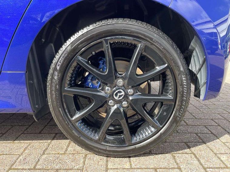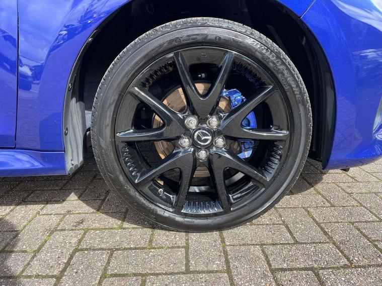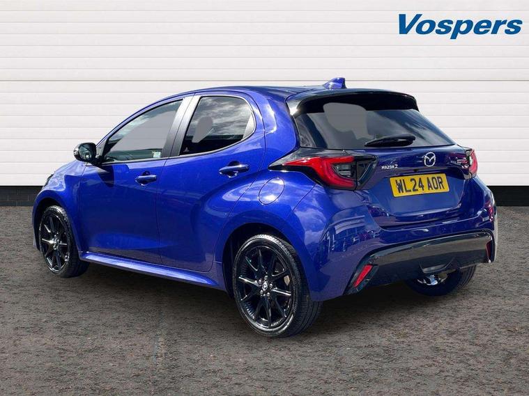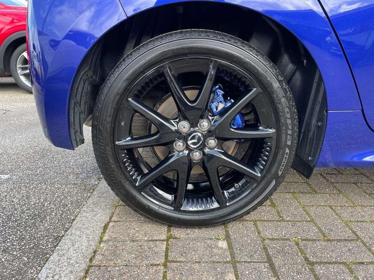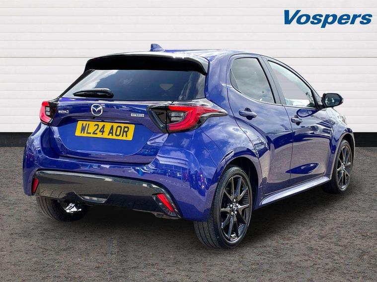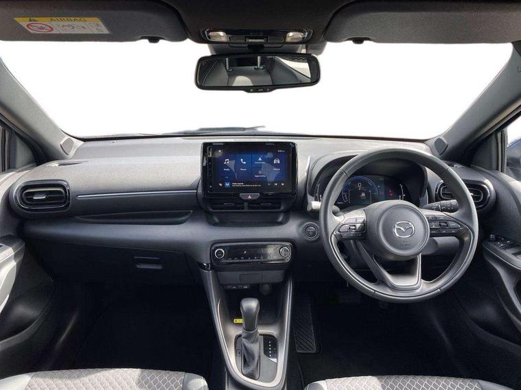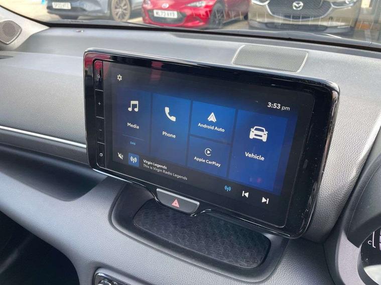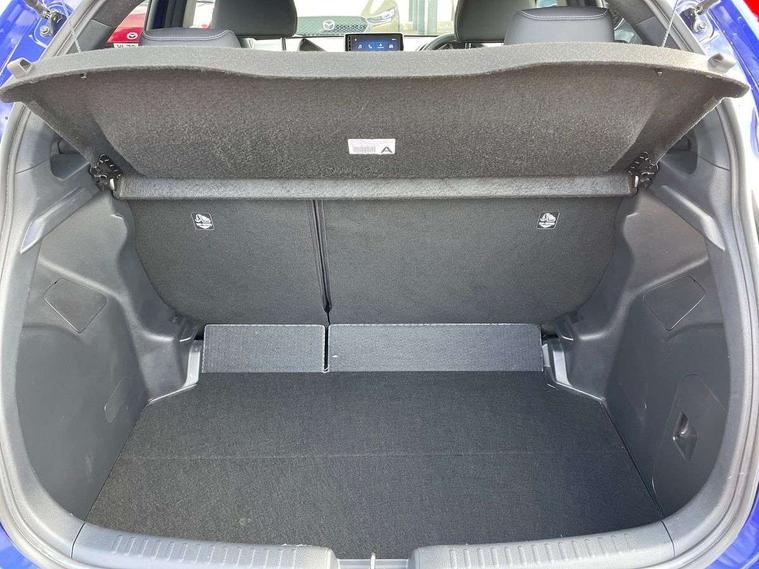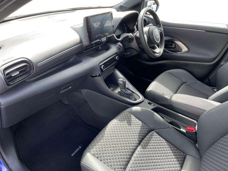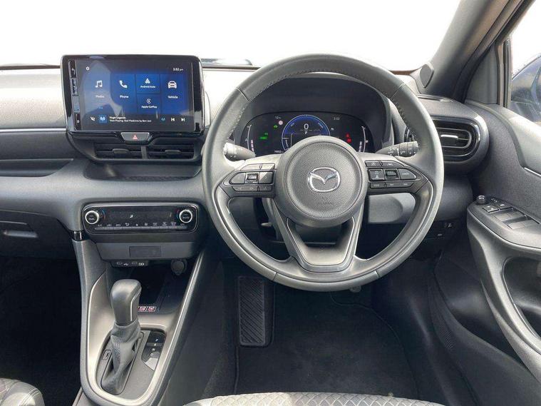 7" Digital instrument cluster with speedometer and hybrid system indicator, Adjustable speed limiter, Drive mode selector (Eco, Normal and Power), Driver attention alert system, Dynamic radar cruise control, E-call with GPS, EV drive mode, Front and rear parking sensors, Integrated bluetooth, Lane tracing assist includes Lane centering, Lane departure alert, Steering assist and Vehicle sway warning, Multi-information display, PAS, Push button start and stop, Qi wireless charging, Rear cross traffic alert with auto braking, Reversing camera, Road sign assist - RSA, Service indicator, Tailgate, Trip computer, Wireless Apple CarPlay and wired Android Auto, i-stop, 6 speaker audio system and 9" colour screen centre display, DAB Digital radio, Steering wheel mounted audio/bluetooth controls, USB type C port, Auto dimming rear view mirror, Auto folding door mirrors, Automatic high beam - AHB, Body coloured front bumper, Body coloured rear bumper with gloss black lower mouldings, Coming home function, Dusk sensing headlights, Front and rear electric windows, Gloss black electric adjustable/heated door mirrors, Gloss black front grille, Gloss black rear roof spoiler, Hybrid badge, LED front fog lights, LED headlights with manual headlight levelling and LED daytime running lights, LED rear combination light with LED turn signals, LED third brake light, Mazda unique tailgate garnish, Piano black lower window garnish, Privacy glass in rear side and rear windows, Rain sensing front wipers with adjustable sensitivity and speed, Rear side wing doors, Rear wash wiper, Shark fin antenna, Welcome lighting, 12V power outlet, 3 seat bench in 2nd row, 60/40 split fold down rear seats, Ambient lighting, Black roof lining in pillar and ceiling, Cloth/Synthetic leather upholstery, Driver, front passenger and two rear door storage, Driver, Front passenger and two rear grab handles with coathooks, Drivers seat manual slide recline and height adjustment, Drivers/front passengers with covered vanity mirrors and light, Dual zone climate control, Front centre armrest with console storage, Front head restraints, Front passenger seat manual slide, recline and height adjust, Front sport seats, Glovebox, Interior courtesy light with LED illumination, ISOFIX child seat anchorage points attached on outer rear seats, Leather handbrake, Leather wrapped gearshift, Leather wrapped steering wheel with telescopic and tilt adjustment, Luggage compartment light, Seatback pocket at rear of the front passenger seat, Single front passenger seat, Three height adjustable rear head restraints, 2x3 point front seatbelts with pre-tensioners, 3 point seatbelts on all rear seats, Airbags - driver and front passenger, Anti-lock braking system (ABS), Blind spot monitoring with rear cross parking support brake function, Collision mitigation braking system, Driver and passenger central airbags, Dynamic stability control + Traction control, Electronic parking brake with auto-hold and auto-disengage function, Emergency brake light signal (EBS), ESP, Front and rear curtain airbags, Front passenger airbag cut-off switch, Front side airbags, Hill start assist control (HAC), Manual child lock in rear doors, Pre-crash safety system - PCS, Rear parking support brake, Regenerative braking system, Seatbelt reminder audible warning, Tyre pressure monitoring system, Deadlocking system, Remote central locking, Smart keyless entry, Thatcham approved immobiliser and alarm, 17" Alloy wheels, Emergency tyre repair kit,