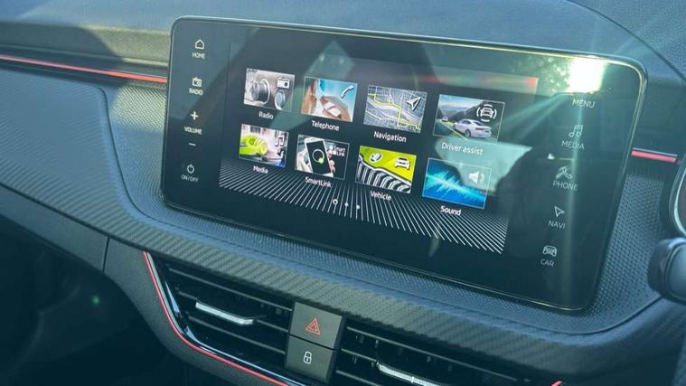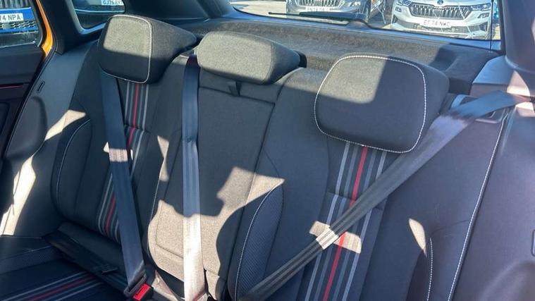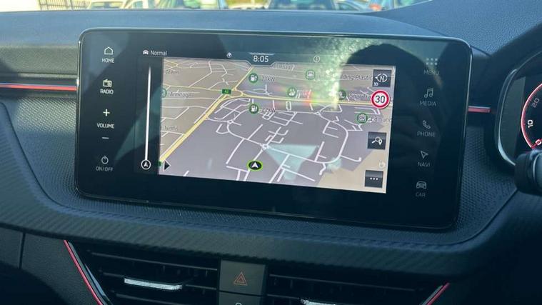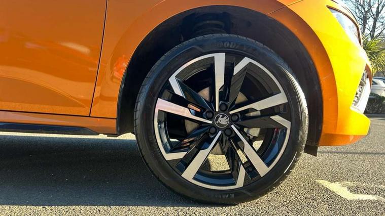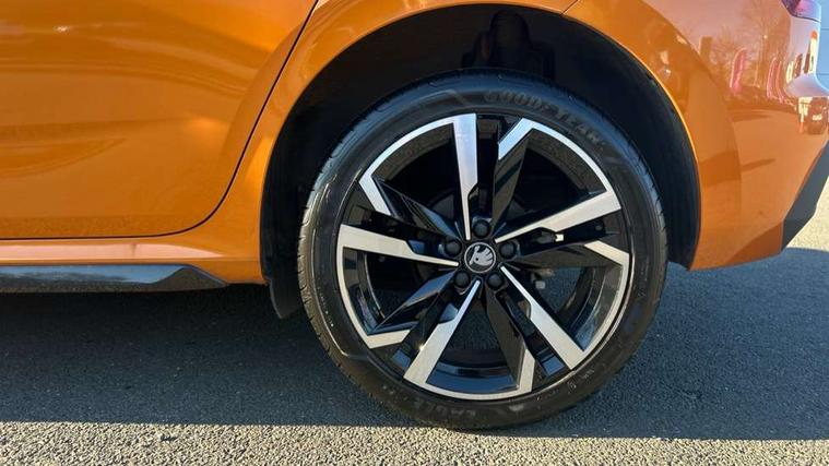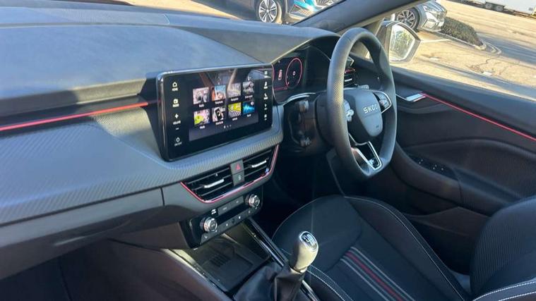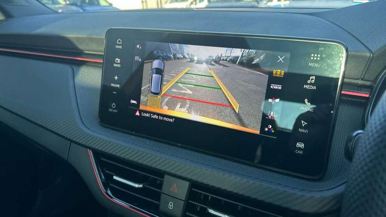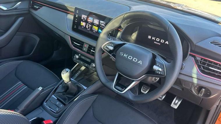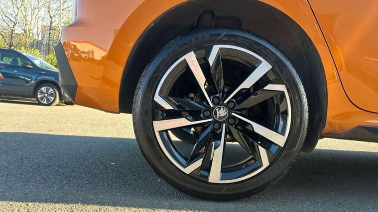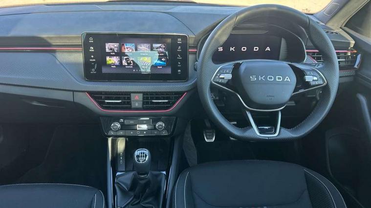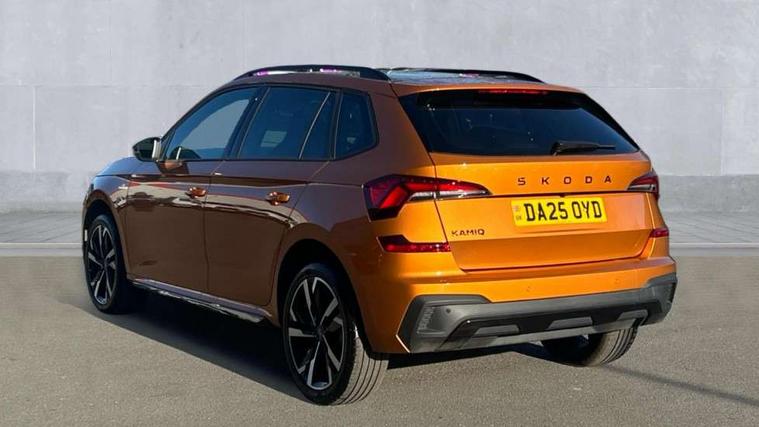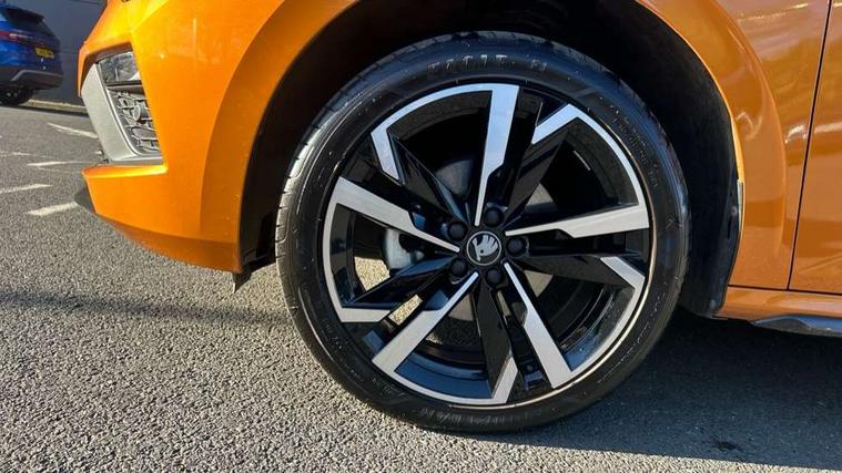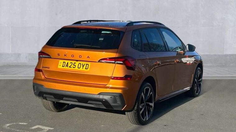 Advanced driver attention and drowsiness monitor, Bluetooth system, E-call, Front assist system, PAS, Rear parking sensors, Rear view camera, Service indicator, Speed limiter, Traffic sign recognition, Virtual cockpit with 10.25" display, Voice control system, Wireless smartlink, 4 USB C ports, 8 Speakers, 9.2" Skoda navigation display, DAB Digital radio, Auto dimming rear view mirror, Automatic headlight control with coming home and leaving home feature, Black door mirrors, Black radiator grille, Black rear diffuser, Black roof spoiler, Body colour bumpers, Body colour door handles, Boot lettering in black, Extended tailgate glass, Fixed panoramic sunroof with black roof rails, Front and rear electric windows, Heated rear window, LED daytime running lights, LED high beam, LED low beam, LED third brake light, Light sensors, Monte carlo plaque, Privacy glass, Rear side wing doors, Rear wiper, Ticket holder inside windscreen, 12V socket in luggage compartment, 3 seat bench in 2nd row, Aluminium pedals, Ambient lighting in white/red, Art leather carbon decor inserts, Art leather carbon door inserts, Black roof lining, Cargo elements, Chrome inner door handles, Driver and passenger sun visors with vanity mirror, Dual zone climate control, Front and rear roof lights, Front centre armrest, Front head restraints, Glove compartment with illumination, Height adjustable driver seat, Height adjustable front passenger seat, Ice scraper, Inner circulation control with pollen filter, ISOFIX on front passenger seat, Isofix preparation for back seats, Leather gearknob and handbrake lever, Manual lumbar support for front seats, Monte Carlo cloth upholstery, Net package and top tether hooks in boot space, Net under rear shelf, Pocket on the back of both front seats include mobile phone pockets, Rake/reach adjustable steering wheel, Reading lights, Rear centre armrests, Red hotstamping, Single front passenger seat, Sports seats, Textile floor mats, Third rear headrest, Top tether for front passenger seat, Umbrella in driver's door, Light and view plus package - Kamiq, 3x3 point rear seatbelts, Airbags - driver and front passenger, Disc brakes, ESP, Extended and predictive pedestrian/cyclist protection, Front passenger airbag deactivation switch, Front side airbags with curtain airbags, Hill hold control, Manual leather parking brake, Manual rear child locks, One tone horn, Seatbelt reminder for driver an co-driver, Traction control, Tyre pressure monitor, Anti-theft alarm system with interior monitoring, backup horn, towing protection and remote central locking with SAFE system, Anti-theft wheel bolts, Electronic engine immobilizer, 18" Ursa black diamond cut alloy wheels,