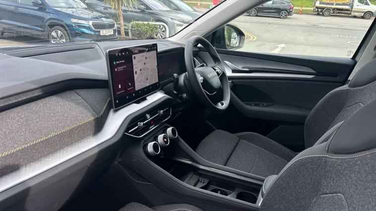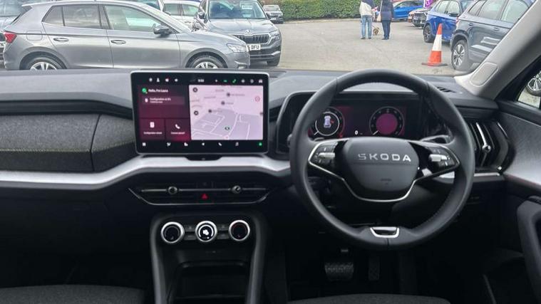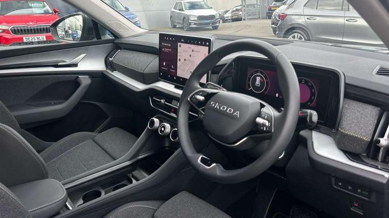 13" satellite navigation touchscreen display, Blind spot detection with door exit warning, Bluetooth system, ChatGPT functionality, Driver alert - Fatigue and drowsiness monitor, Dry display cleaner, Emergency call, Front and rear parking sensors, Front cross traffic assist, Lane assist, PAS, Rear traffic assist, Rear view camera, Tailgate unlocking from outside, Traffic sign recognition, USB C Port x 2 in front centre console, Virtual Cockpit - 10.25" digital display, Voice control system, Wireless charging for two smartphones (15W) with cooling function, Wireless SmartLink for Apple CarPlay and Android Auto, Stop/start function, 2x USB-C in the rear, 8 Speakers, DAB Digital radio, Aero front windscreen wipers with intermittent function, All weather light, Auto dimming rear view mirror, Black wheel arch surrounds, Body colour bumpers, Body colour door mirrors and handles, Cornering light and poor weather light, Electric folding /adjustable/separted heated/folding door mirrors, auto dimming with boarding sports and memory function, Electric front and rear windows, Exterior black decorative trims, Heat insulating glass in windshield, Heated rear window, Ice scraper in fuel tank cap, Invisible tailpipe, LED daytime running lights, LED front fog lamps, LED Headlights, LED rear fog light, LED rear lights, LED third brake light in rear spoiler, Light assistant with automatic headlight control and coming home feature, Logo projection in door mirrors, Rear roof spoiler, Rear side wing doors, Rear window wiper, Safety reflectors on front and rear doors, Unique dark chrome design logo on alloy wheels, Window control switches with black trim, Windscreen wipers with rain sensor, Without engine designation, 1.5l bottle holder points in all door, 1x centre rear reading light, 2 seat bench in 3rd row, 3 configurable smart dials with 32mm coloured display, 3 seat bench in 2nd row, 4 foldable roof handles with rear coat hooks, Ambient interior lighting - Dashboard, front-door stowage compartments, front and rear door panels and footwell lighting, Automatic gear selector on steering column, Chrome interior door handles, Driver/front passenger reading lights, Fabric headlining, Fixed bench 40:60:40 split folding backrests, Front and rear floor mats, Front centre armrest with jumbo box storage compartment, cup holder and 12V socket, Height adjustable front headrests, Isofix child seat fittings in outer middle row rear seats and front passenger with top tether, Manual height adjustment for front passenger seats and thigh support extender, Manual lumbar support for front passenger seat, Manually adjustable steering column, Pollen filter, Rear centre armrest with cupholders, Rear seat boot backrest release, Single front passenger seat, Skoda lettering on steering wheel, Storage pocket including mobile phone pockets on the backs of the front seats, Sunvisors with illuminated vanity mirrors, Three rear height adjustable headrests, Ticket holder on A Pillar, Tri zone climate control, Umbrella in door panel x1 made from sustainable materials, Upper and lower glovebox with card holder and coin compartment, USB C port by rear view mirror for charging only (15W), Variable boot floor, Auto door release and activation of warning lights in the event of an accident, Driver and front passenger airbag with knee airbag and front passenger airbag deactivation, Electric child locks, Electronic parking brake, ESC (incl. ABS+EMD+MSR+ASR+EDL+HBA+DSR+RBS+ESBS+MCB+TSA+XDS), Front assist with braking reaction to vehicles, pedestrians and cyclists, Front disc brakes, Fuel cut off safety device, Height adjustable front 3 point seatbelts + pretensioners, Hill hold assist, Junction assist with automatic emergency braking, Rear disc brakes, Safety vest holder in door, Seat belt reminder for all seats, Three point rear seat belts, Two tone horn, Tyre pressure monitor, Alarm with interior monitoring and tilt sensor with safe function, Anti-theft wheel bolts, Immobiliser, Remote central locking with 2 keys, Breakdown kit, Tool kit,
