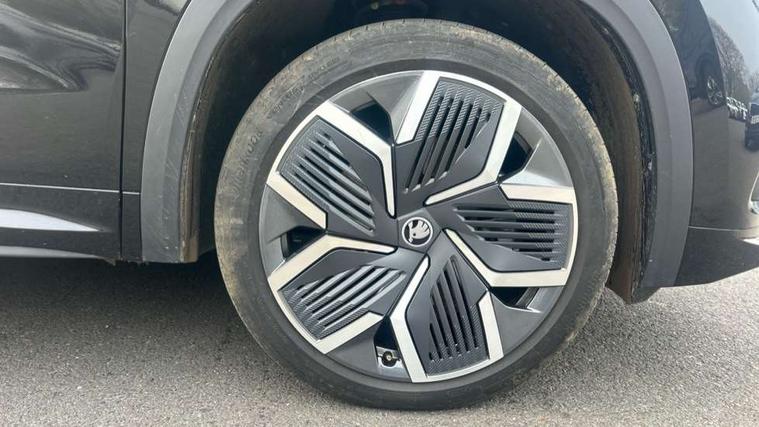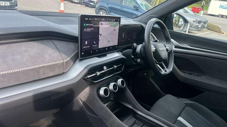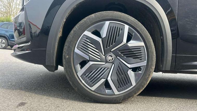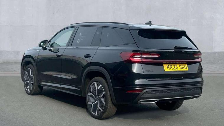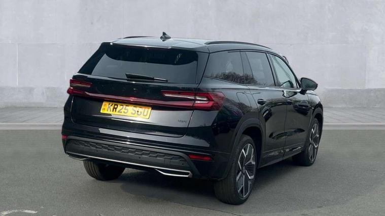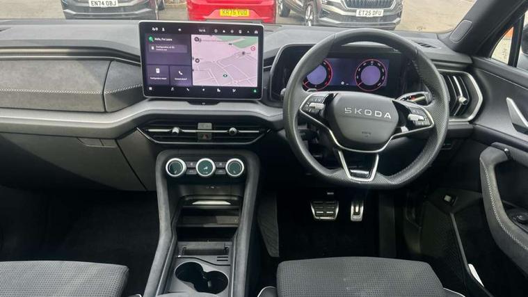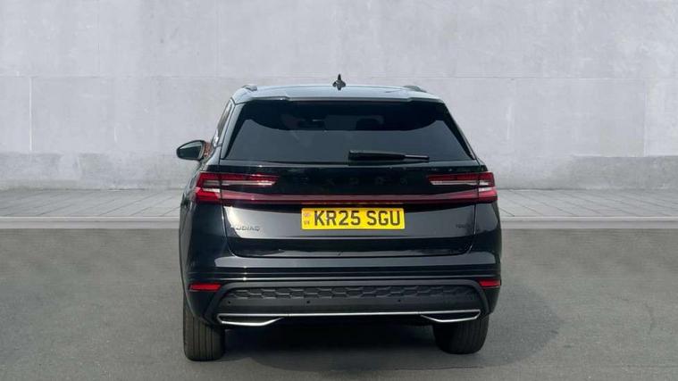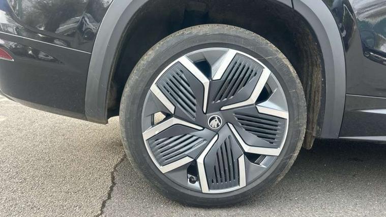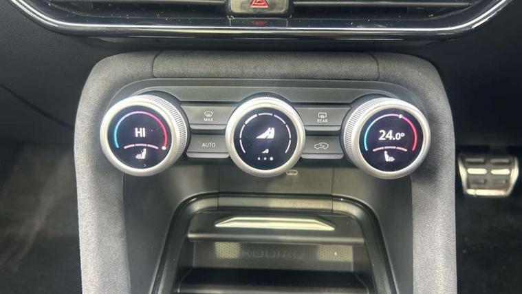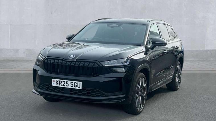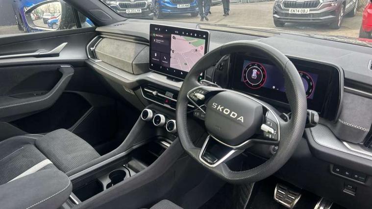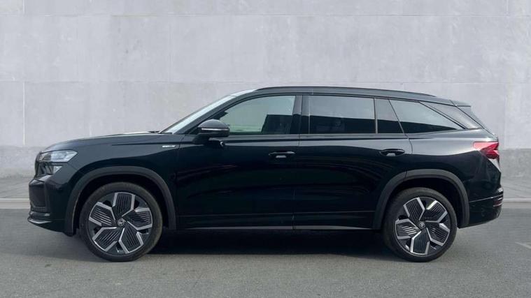 13" satellite navigation touchscreen display, Blind spot detection with door exit warning, Bluetooth system, ChatGPT functionality, Driver alert - Fatigue and drowsiness monitor, Dry display cleaner, Emergency call, Front and rear parking sensors, Front cross traffic assist, Lane assist, Off road modes, PAS, Rear traffic assist, Tailgate unlocking from outside, Traffic sign recognition, USB C Port x 2 in front centre console, Virtual Cockpit - 10.25" digital display, Voice control system, Wireless charging for two smartphones (15W) with cooling function, Wireless SmartLink for Apple CarPlay and Android Auto, Stop/start function, 2x USB-C in the rear, DAB Digital radio, Aero front windscreen wipers with intermittent function, Auto dimming rear view mirror, AWL (all weather lighting) and all weather light with cornering function, Black diffuser and decorative tailpipe with a unique dark chrome finish, Black roof rails, Black sports styling including front grille and window surrounds, Black wheel arch surrounds, Body colour door handles, Cornering light and poor weather light, Electric folding /adjustable/separted heated/folding door mirrors, auto dimming with boarding sports and memory function, Electric front and rear windows, Exterior black decorative trims, Front and rear sports bumpers including lower rear chrome strip, Gloss black door mirrors, Gloss black window frame and D pillar, Heat insulating glass in windshield, Heated rear window, Ice scraper in fuel tank cap, LED daytime running lights, LED third brake light in rear spoiler, Light assistant with automatic headlight control and coming home feature, Logo projection in door mirrors, Privacy glass, Rear roof spoiler, Rear side wing doors, Rear window wiper, Red decorative strip between rear LED lights, Safety reflectors on front and rear doors, Sportline badge on front fenders, Tailgate lettering in Black, Unique dark chrome design logo on alloy wheels, Window control switches with black trim, Windscreen wipers with rain sensor, Without engine designation, 1.5l bottle holder points in all door, 1x centre rear reading light, 2 seat bench in 3rd row, 3 configurable smart dials with 32mm coloured display, 3 seat bench in 2nd row, 4 foldable roof handles with rear coat hooks, Aluminium pedals, Ambient interior lighting - Dashboard, front-door stowage compartments, front and rear door panels and footwell lighting, Automatic gear selector on steering column, Chrome interior door handles, Driver/front passenger reading lights, Fabric headlining, Fixed bench 40:60:40 split folding backrests, Front and rear floor mats, Front centre armrest with jumbo box storage compartment, cup holder and 12V socket, Front sport seats, Height adjustable front headrests, Interior black decorative trims, Isofix child seat fittings in outer middle row rear seats and front passenger with top tether, Manually adjustable steering column, Pollen filter, Rear centre armrest with cupholders, Rear seat boot backrest release, Single front passenger seat, Skoda lettering on steering wheel, Storage pocket including mobile phone pockets on the backs of the front seats, Sunvisors with illuminated vanity mirrors, Three rear height adjustable headrests, Ticket holder on A Pillar, Tri zone climate control, Umbrella in door panel x1 made from sustainable materials, Upper and lower glovebox with card holder and coin compartment, USB C port by rear view mirror for charging only (15W), Acoustic package - Kodiaq, Performance package - Kodiaq, Sportline design selection pack - Kodiaq, Auto door release and activation of warning lights in the event of an accident, Driver and front passenger airbag with knee airbag and front passenger airbag deactivation, Electric child locks, Electronic parking brake, ESC (incl. ABS+EMD+MSR+ASR+EDL+HBA+DSR+RBS+ESBS+MCB+TSA+XDS), Front assist with braking reaction to vehicles, pedestrians and cyclists, Front disc brakes, Fuel cut off safety device, Height adjustable front 3 point seatbelts + pretensioners, Hill hold assist, Junction assist with automatic emergency braking, Rear disc brakes, Safety vest holder in door, Seat belt reminder for all seats, Three point rear seat belts, Two tone horn, Tyre pressure monitor, Alarm with interior monitoring and tilt sensor with safe function, Anti-theft wheel bolts, Immobiliser, Remote central locking with 2 keys, 20" Rila anthacite polished alloy wheel with black matte aero covers,