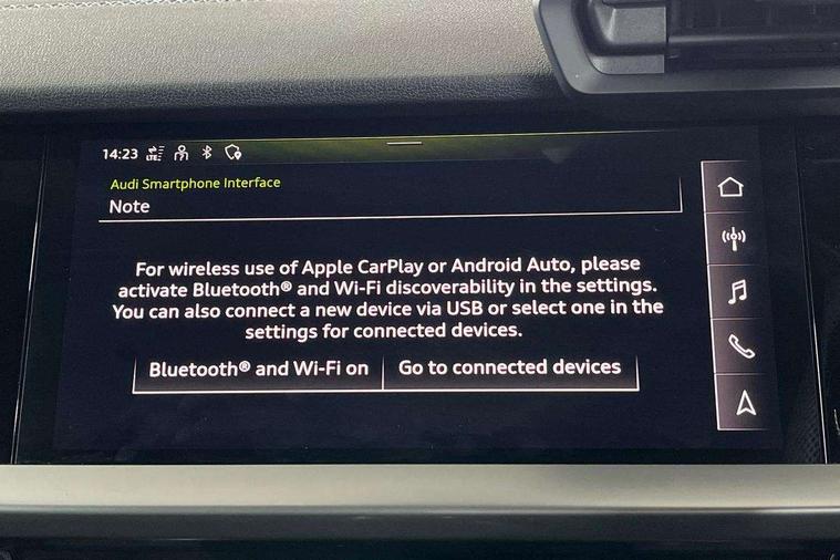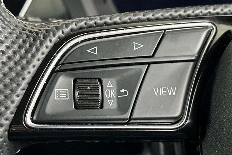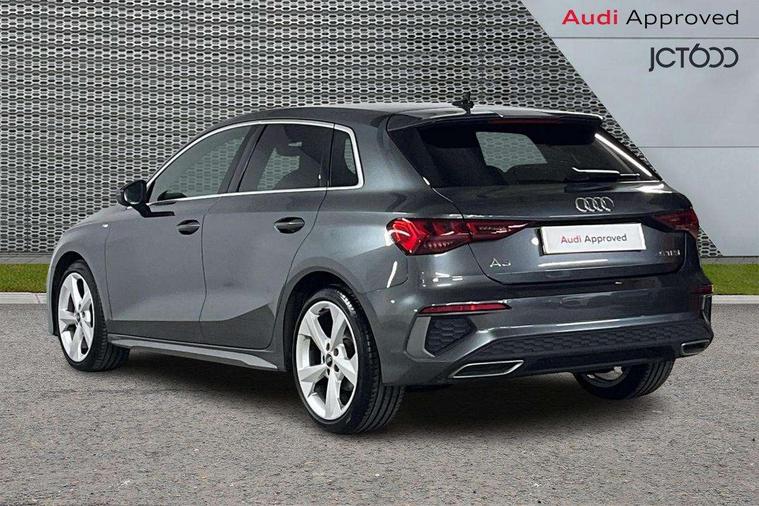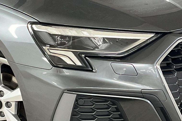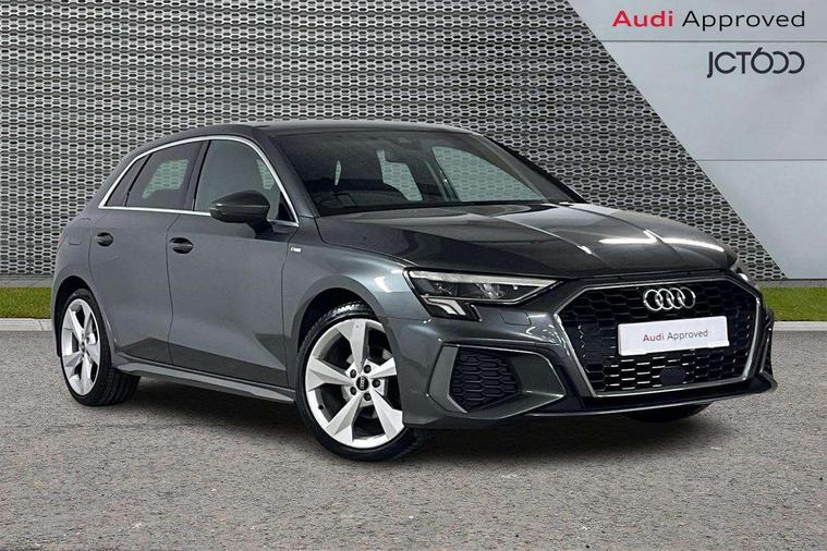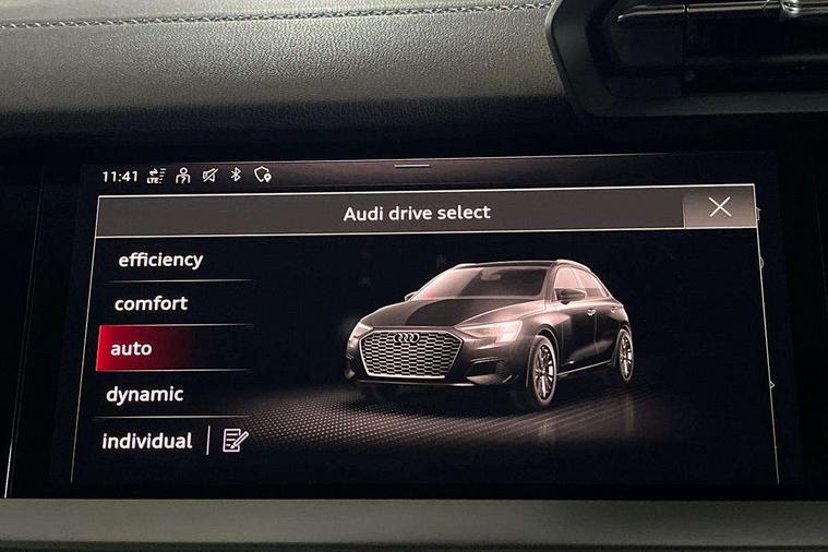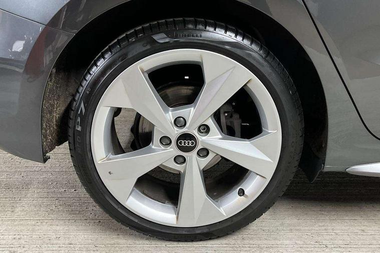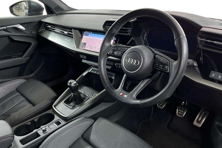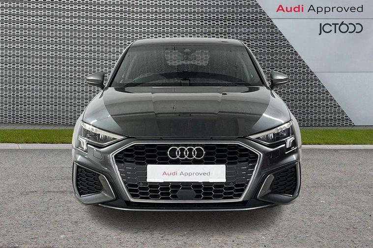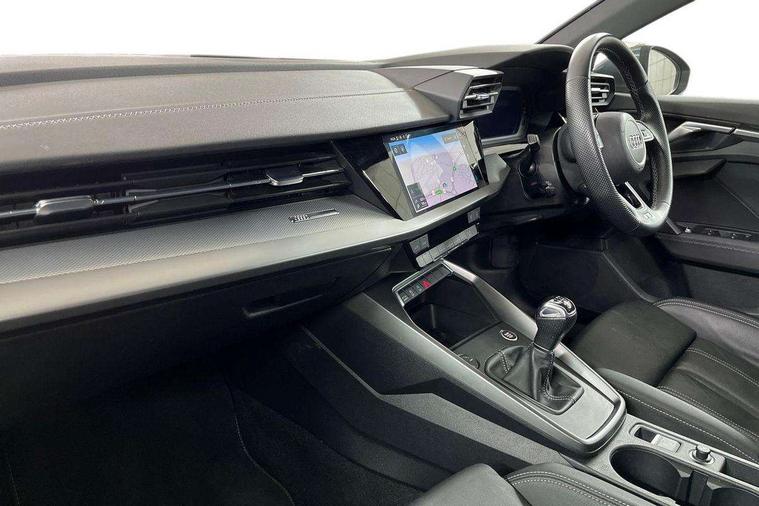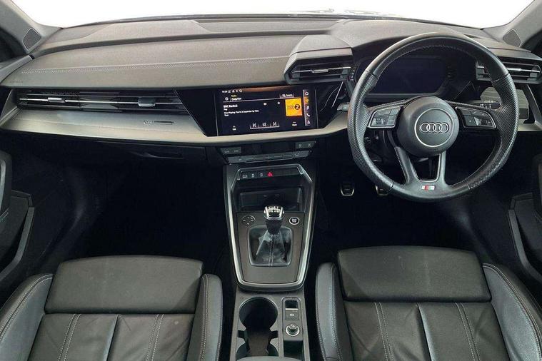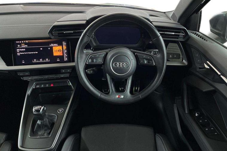 Audi drive select (Auto, Comfort, Dynamic, Efficiency and Individual), Audi smartphone interface, Audi Virtual Cockpit - 10.25" digital and colour instrument cluster, Automatic start/stop system with recuperation, Bluetooth interface, Collision avoidance assistant, Cruise control, e-Call (emergency call), Electromechanical power speed sensitive steering, Lane departure warning system, MMI Navigation Plus with high resolution 10.1" colour touch screen display, Rear parking sensors, Service indicator, Trip computer, Voice control system with natural language interaction, 2xUSB-C connection with data and charging functions, 6 passive loudspeakers, DAB Digital radio, 3rd brake light, Acoustic glass windscreen, Aluminium window trim, Auto dimming frameless rear view mirror, Electrically adjustable/heated/folding/auto dimming door mirrors with integrated LED indications + kerb view function for passenger side, Front electric windows, Illuminated aluminium inserts front door sills with S logo, LED daytime running lights, LED headlights with LED rear lights and dynamic rear indicators, Light and rain sensors, Privacy glass - dark tinted rear window, rear door and side windows, Rear electric windows, Rear side air outlets in grained matt black, Rear side wing doors, Rear wiper, S line bumpers, S roof spoiler, 12V socket and storage compartment in front centre console, 3 seat bench in 2nd row, 40/20/40 split folding rear seat bench with cupholder, Black cloth headlining, Dual zone electronic climate control, Front and rear centre armrest in leather, Front and rear headrests, Front/rear floor mats, Height and reach adjustable steering wheel, Illuminated vanity mirror, Interior lighting - glove compartment light and right hand side, Luggage compartment floor covering, Manual boot compartment lid, Manually adjustable front seats, Seat side bolsters, Single front passenger seat, Stainless steel pedals and front footrest in black, Twin leather upholstery with front sports seats S embossed logo, Aluminium interior elements pack - A3 Sportback, S line styling pack - A3 Sportback, 3x3 point rear seat belts, Audi pre sense front, Driver and front passenger airbag with passenger airbag deactivation, Electronic Stabilisation Control (ESC) including ABS, ASR and EDL, First aid kit with warning triangle and 2 safety vests, Front side airbags with head airbags and interaction airbag, Pre-sense front with pedestrian and cyclist detection, Seatbelt monitoring, Tyre pressure loss indicator, Anti theft alarm, Anti-theft wheel bolts, Immobiliser, Manual child locks, Remote control central locking, Accent surfaces in the dashboard and centre console in platinum grey silk effect paint finish, Dark spectrum aluminium inlays,