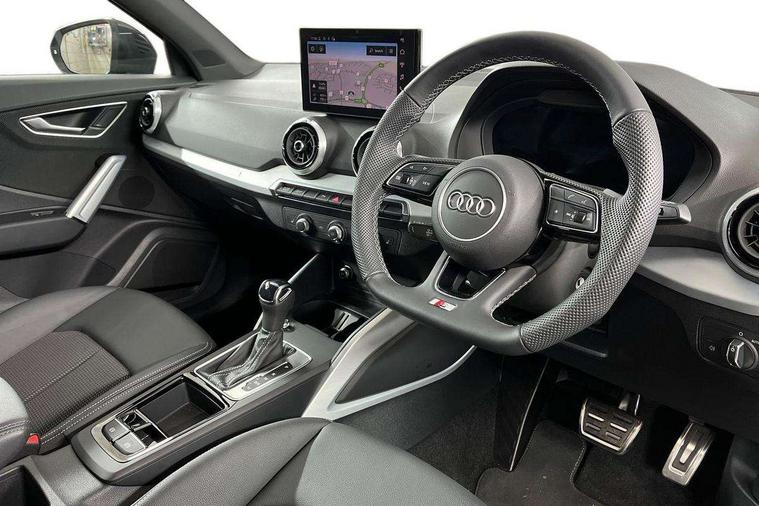 3D map display, Audi connect navigation and infotainment includes innovative services, Audi connect remote and control connects your vehicle to your smartphone, Audi drive select: S tronic - power steering assistance + engine + gearshift (modes: comfort, auto, dynamic, efficiency, individual), Audi smartphone interface - Apple carplay/Android Auto, USB connect, 2xSDXC card readers, voice control for navi, telephone, music and 3rd party apps, Audi virtual cockpit, Automatic start/stop system with recuperation, Bluetooth interface includes bluetooth audio streaming, Camera based traffic sign recognition, Cruise control, Distraction and Fatigue warning, E-call, Jukebox hard drive memory for music (10GB), Lane departure warning, MMI navigation plus with 8.8" touchscreen, Natural voice recognition, Power operated tailgate, Progressive steering, Rear parking sensors, Sport suspension, 6 passive loudspeakers, DAB Digital radio, USB type C port, Audi beam, Auto dimming rear view mirror, Black window trims, Bumper in full body colour paint finish, Electrically adjustable, folding, auto dimming and heated door mirrors with integrated LED side indicators, Front windscreen with grey tinted sunband, LED daytime running lights, LED headlights with dipped beam, high beam, position lights, indicators, LED rear lights, LED third brake light, Privacy glass - dark tinted rear and rear side windows from B-pillar backwards, Rear side wing doors, Rear wiper, Variable front intermittent wipers, Wheel arch trims in manhattan grey, 12V socket in front, 3 seat bench in 2nd row, 3 spoke flat bottomed multi-function leather sport steering wheel with gear shift paddles, 4-way electric lumbar support for front seats including manual seat height adjustment for both front seats, 60/40 split folding rear seat bench, Black carpets, Black cloth headlining, Front and rear head restraints, Front centre armrest, Front sport seats, Front/rear floor mats, Height/reach adjust steering wheel, Illuminated door sill trims with S logo, ISOFIX child seat mounting in front passenger and rear outer seats, Manual air conditioning, Single front passenger seat, Stainless steel pedals, Black styling pack - Q2, 3x3 point rear seatbelts, 6 airbags - Front, curtain and front side airbags, Electromechanical parking brake, Electronic stabilisation control including ABS, ASR and EDL, Front passenger airbag deactivation, Hill hold assist, Pre-sense front with pedestrian recognition, Seatbelt monitoring, Tyre pressure warning light with visual and acoustic warning, Warning triangle and first aid kit, Anti theft wheel bolts, Electronically operated child locks, Remote central door locking, Thatcham category 1 alarm, Aluminium interior element, Black dashboard, Gloss black centre console, Matt brushed aluminium trim inlays, Tool kit,