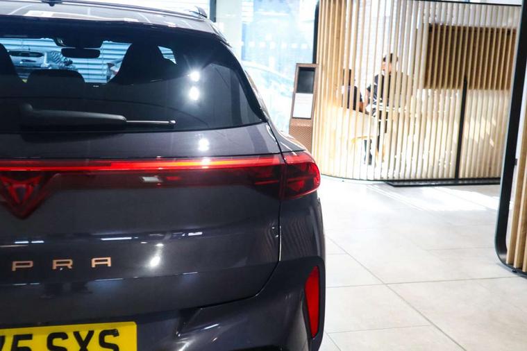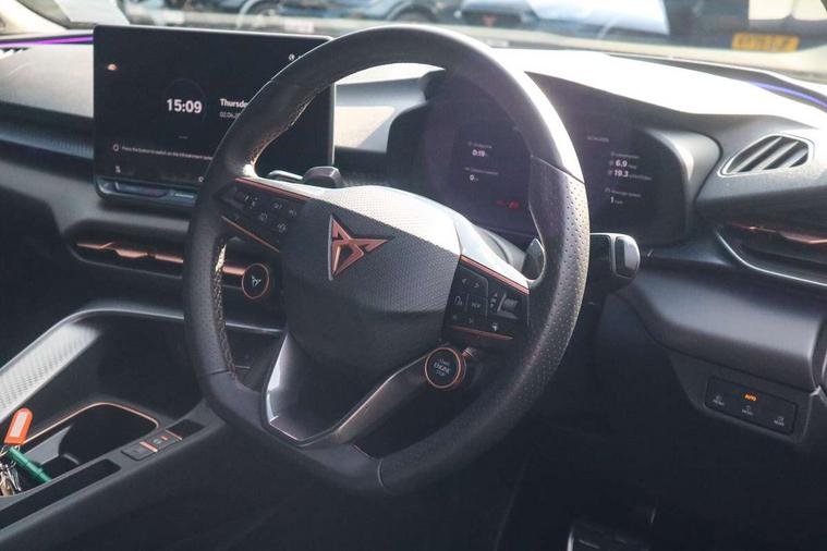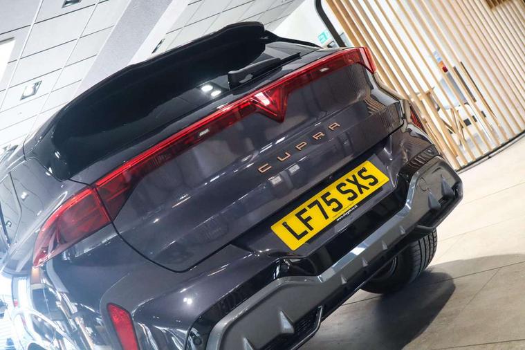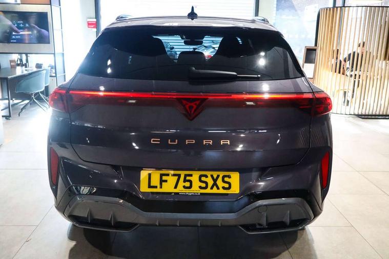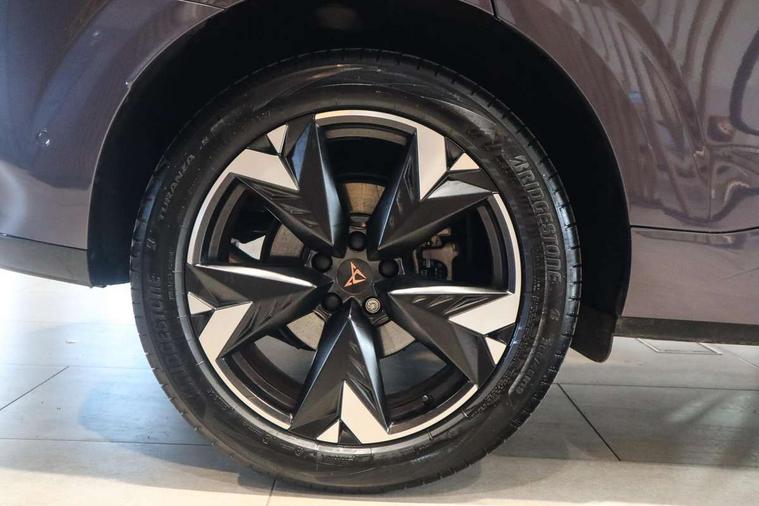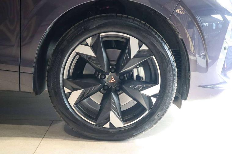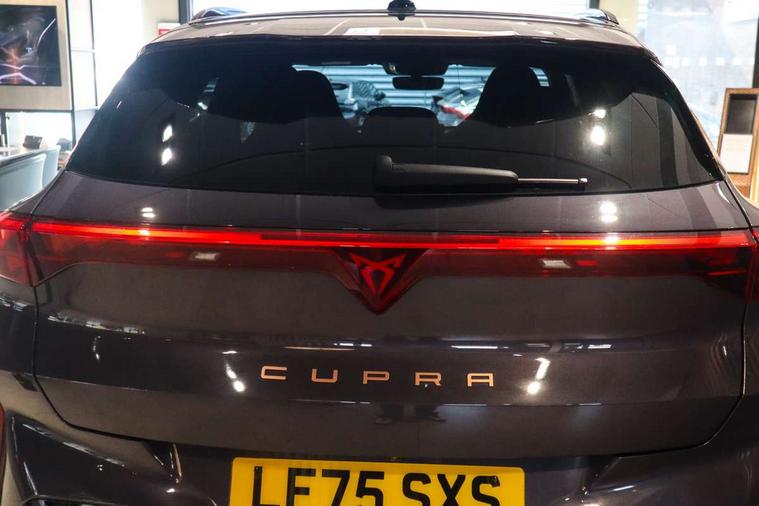 10.25" digital cockpit and configurable dashboard, Adaptive cruise control with follow-to-stop and speed limiter, Advanced driver alert system, Advanced lane assist with semi-automatic vehicle control in a medical emergency and traffic jam assist, Driving profile selection and conventional shock absorber, Dynamic road sign display, E-call, Electric tailgate with virtual pedal, Emergency steering support with turn assist, Front and rear parking sensors, Front assist (Forward collision warning with automatic braking) with multifunction camera and front cross traffic assist, Head up Display, Intelligent park assist, Media system with Nav - 12.9" touch display, voice control, full link phone (wired/wireless), DAB and Steering wheel mounted controls, Rear traffic assist, Side and exit assist, Speed sensitive power steering, Start/stop system with regenerative braking, Top view camera (front camera, rear camera, 2 side cameras), Wireless phone charger, 10 amp mode 2 charging cable, 16 amp mode 3 charging cable, Auto dimming rear view mirror, Black roof rails, CUPRA 3D rear lights with ceremony & swiping indicator and illuminated logo, Dark tinted rear windows, Daytime running lights with automatic headlight control and Coming and Leaving home function, Door mirrors with memory function and lowing function on passenger mirror, Dynamic headlight range control, Electric front/rear windows, Electrically adjustable, heated and folding door mirrors, Front fog lamps with cornering function, Heat reflecting windscreen, High beam assist, LED headlamps with signature "CUPRA LED", Rain sensing wipers, Rear fog light on one side, back up light on both sides, Rear side wing doors, Rear wash/wipe, Third brake light, Welcome lights (within exterior mirror housing), 3 seat bench in 2nd row, Black roof lining, Cupra sports pedals, Dinamica cloth upholstery, Driver seat memory function, Electrically adjustable front seats including lumbar support, Four x USB Type C ports (2 in front and 2 in rear), Front and rear head restraints, Front and rear reading lights X 4, Front centre armrest, Heated front seats, Heated leather wrapped multi function sports steering wheel with tiptronic, Illuminated interior front door sills, Isofix, Operating voltage 12V, Single front passenger seat, Smart wraparound interior lighting, Sunvisors with illuminated mirror, Three zone climate control with control panel in rear, Unsplit rear seat bench, split folding backrest, with centre armrest, Variable luggage/load compartment floor, 3 point seatbelts in front with pretensioner and electric height adjustment, 3 point seatbelts on all rear seats, Brake control system - ESC and brake booster, Child proof door locks, Driver and front passenger airbags, Electronic parking brake, Front and rear disc brakes, Front interaction airbag, Front passenger airbag deactivation switch, Front side airbags with curtain airbags, Pre-crash front and rear seat belt tensioner, window closure and hazard lights, Tyre pressure monitoring system, Visual and acoustic seat belt reminder, electric contact in front and rear, Anti theft alarm, Keyless locking and starting system with keyless access, Locking wheel bolts, Black decorative trims, Chrome interior detailing, 19" Spectrum exclusive machine alloy wheels, Breakdown kit, Tool kit,