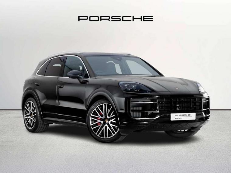 Active parking assist and 360 camera, Active speed limit assist, Android Auto, Apple car play, Brake pad wear indicator, Central analogue rev counter with black dial face, Driver personalisation for climate, audio and communication, assistance systems and other customisable car systems, Driving modes, Emergency call service, High resolution 12.3-inch touchscreen display in full HD resolution, Individual mode for individual selection of vehicle drive settings, Instrument cluster with 12.6" curved display, Instrument cluster with two high-resolution displays, Mobile phone preparation with Bluetooth interface for telephone and music, Mode switch, Porsche Communication Management (PCM) including online navigation module, mobile phone preparation, audio interfaces and voice control system, Power steering plus, Power tailgate with gesture control, Reversible occupant protection measures, Smartphone integration, Speed limit indicator, Vehicle electrical system recuperation, Warn and brake assist including pedestrian protection, 8 speed automatic gearbox, 90 litre fuel tank, Aluminium cylinder heads and engine block, Direct fuel injection (DFI) with central injector position, Front and rear aluminium multi link axles, Gasoline particulate filter, Sport mode, Twin turbocharger, VarioCam Plus, Water cooled with thermal management, AM radio, Digital radio, Fast charging two USB-C PD connectivity and charging port in front storage compartment, Smartphone compartment with wireless charging, Two USB-C PD charging ports in the rear, Active air intake flaps, Aluminium roof, Auto dimming interior + exterior mirrors, Automatic headlight activation including welcome home functionality, Bumper system with high strength cross members and two deformation elements + Two receptacles with screw threads towing lug + onboard tool kit, Deletion of GTS logo on sideskirt inlays, Door handles painted in exterior colour, Electric windows + anti trap protection + one touch open/close drivers side, Electrically adjustable, folding and heated exterior mirrors, aspherical on drivers side including courtesy lights, Extensive aerodynamic underbody protection, Exterior mirror lower trims including mirror base in black, Four point signature LED daytime running lights, Front end with integrated air intakes and airblades for the side air intakes, Front light modules including position lights and direction indicators in LED light guide technology, Front windscreen wipers with two speeds, intermittent wipe and rain sensor, Fully galvanised steel / aluminium hybrid lightweight bodyshell and Aluminium bonnet, tailgate, doors, side panels, roof and front wings, Heated rear window with automatic switch off, LED High level third brake light integrated into roof spoiler, Lower valance, PORSCHE' lettering integrated in tailgate strip, Rear diffusor in louvered design, Rear side wing doors, Rear window wiper with intermittent function and washer jet, Right fuel filler cover, 3 seat bench in 2nd row, 4-way headrests front/2-way headrests rear, Ambient lighting, B-pillar clothes hooks on driver and passenger's side, Charge air cooling, Deletion of turbo S logo embossed on headrests, Door interior with decorative surfaces and accent trims, Double sun visors for driver and front passenger, Elevated centre console with handles, Five seats rear seat system with two comfort outer seats and a central seat, Front and rear bottle holders in door panels, Front centre armrest, Heated front seats, Illuminated make-up mirror in sun visors, Isofix fastening system for child seats on outer rear seats, Leather door panel and central armrests, Leather gear selector, LED interior light with switchoff delay function, footwell + glove compartment light, ashtray + ignition lock illumination, front + rear reading light, Manual height adjust for driver and front passenger seat belt, Manual steering column with angle and reach adjustment, Particle/pollen filter with active carbon filter, PM 2.5 fine dust filtering, Rear seat split folding design 40:20:40, Fold out centre armrest with integrated cup holder, manual fore/after adjust and backrest angle adjust, Retractable roller luggage compartment cover in detachable cassette, Single front passenger seat, Soft close doors, SPORT button, Stainless steel pedals, Storage compartments - Cooled glove compartment, front centre console, door and map pockets on front seat backrests + side luggage compartment, Three 12V power sockets - front below the glove compartment, centre console and at side of luggage compartment, Two integrated cup holders in front and rear with variable diameter, Driver memory pack - Cayenne, 3-point automatic seatbelts with front and outer rear seats pretensioners and front force limiter with 3-point automatic seatbelt for rear centre seat, 4 piston aluminium monobloc fixed brake calipers at rear, 6 piston aluminium monobloc fixed caliper brakes at front, Active bonnet, Auto hold function, Brake discs with diameter 410 mm at front, 358 mm at rear, Curtain airbags along roof frame and side glazing from the A-pillar to the C-pillar, Distance warning, Electronic parking brake, Front passenger airbag deactivation function for front seat mounting of child seat, Front side airbags integrated into seat, Full size driver and front passenger airbags, Knee driver and passenger airbags, Mounting points on passenger seat for ISOFIX child seat mounting system, Multi-Collision braking, Porsche hill control (PHC), PTM Porsche Traction Management active all-wheel drive with an electronically variable, map-controlled multi-plate clutch, ABD and anti-slip regulation, Rear door child safety locks, Rear side airbags, Rollover detection for activation of curtain airbags and seat belt pretensioners, Seat belt warning system for driver and front passenger and rear seat system, Side impact protection in doors, Tyre pressure monitoring system, Vehicle stability system, Porsche stability management (PSM) including ABS, ASR,