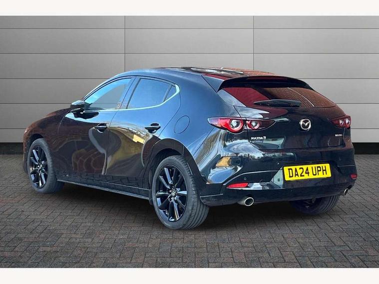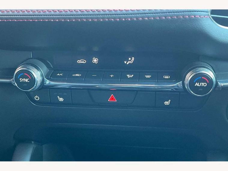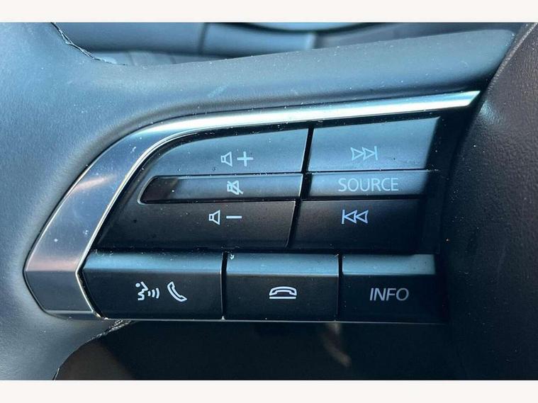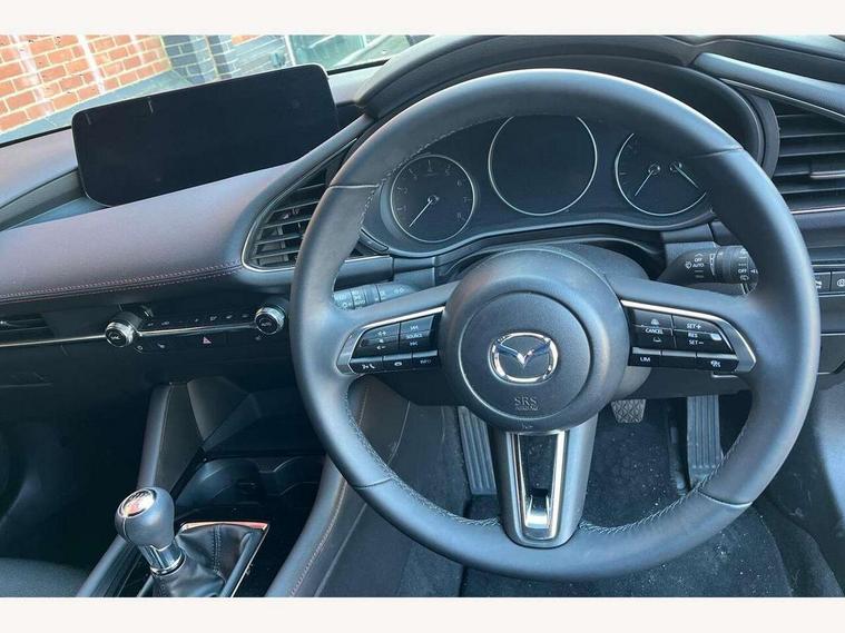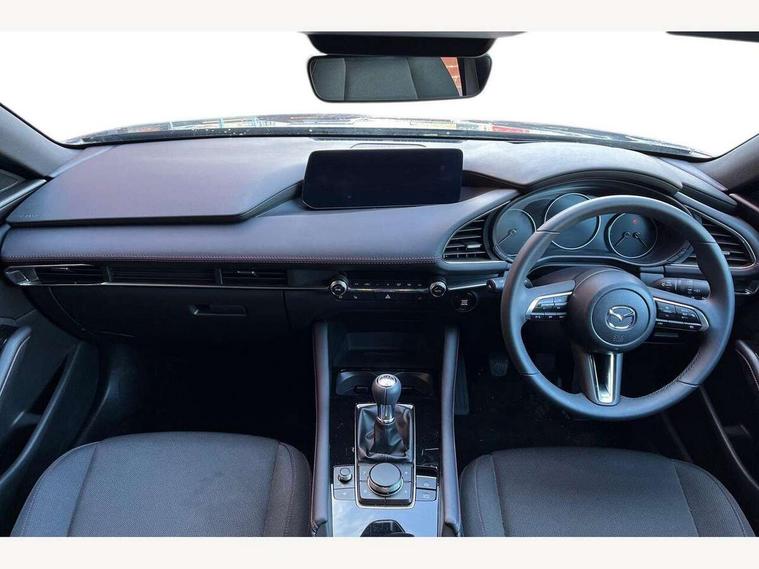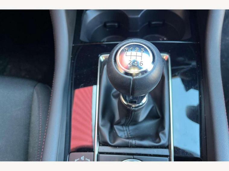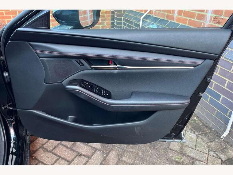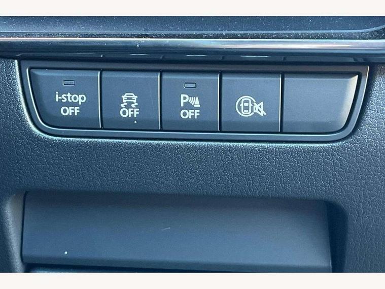 10.25" display with Mazda Connect infotainment, 7" colour TFT display, Audio transfer from bluetooth devices, Blind spot monitoring with rear cross traffic alert, Colour active driving display inc Windscreen projected, Traffic Sign Recognition, turn-by- turn navigation and Mazda Radar Cruise Control information, Digital instrument cluster, Driver attention alert system, E-call with GPS, Emergency stop signalling system, Engine start/stop button, Front and rear parking sensor with audible and visual warning, Head up Display, Integrated bluetooth with steering wheel mounted controls, Intelligent speed assist, Lane keep assist system (LAS) with Lane departure warning system (LDWS), Mazda connected services, Mazda Navigation System with european mapping, Mazda Radar Cruise Control, Mobile App interface, Multimedia Commander, PAS, Reversing camera, Service indicator, Tailgate, Traffic sign recognition (TSR), Trip computer, Wireless Apple CarPlay/Android Auto, Wireless charging, Cylinder Deactivation, i-stop, 2 USB-C ports in the front, Mazda Multimedia System with AM / FM / DAB radio with 8 speakers, Auto dimming rear view mirror, B-pillar garnish in piano black, Black door mirrors, Coming/leaving home lighting function, Dark metallic finish signature wing, Daytime running lights, Dual chrome tailpipes tip, Dusk sensing headlights, Electric front/rear windows with one touch/auto up/down, Electrically adjustable, heated auto power folding door mirrors, Front body coloured bumper with black lower bezel, Front kodo turn signal, Gloss black finish front grille, Gloss black rear roof spoiler, High beam control, LED front fog lights, LED headlamps with auto levelling, LED indicator lights, LED rear combination lights, LED third brake light, Privacy glass with dark tinting on rear side windows and rear window, Rain sensing front wipers with adjustable sensitivity and speed, Rear colour coded bumper with gloss black lower moulding, Rear fog lights, Rear side wing doors, Speed adjustable rear wash wiper with intermittent wipe, 12v electrical power outlet, 3 seat bench in 2nd row, 60/40 split fold down rear seats, Black with red stiching steering wheel, gearshift gaitor, dashboard panel, armrest, Cloth upholstery, Dark cloth door panel inserts, Dark roof headlining, ceiling and pillars, Driver seat manual slide, recline, height and seat tilt adjust, Driver, front passenger and two rear door pockets, Driver, Front passenger and two rear grab handles with coathooks, Driver/passenger sunvisors + vanity mirrors (drivers side with ticket holder), Dual zone climate control air conditioning, Folding rear centre armrest with two cup holders, Front and rear courtesy lamps, Front armrest, Front centre storage with two cupholders, Front head restraints, Front passenger seatback pocket, Front passengers seat manual slide, recline and height adjustment, Gear shift indicator, Heated front seats with 3 stage setting, Illuminated glovebox, Interior colouration dashboard and doorcards in black with dark stitching, ISOFIX child seat anchorage points attached on outer rear seats, Leather wrapped gear shift knob, Leather wrapped steering wheel, LED interior light, LED light in luggage compartment, Power outlet in luggage compartment, Roof mounted sunglasses holder, Single front passenger seat, Three height adjustable rear head restraints, Tilt/height adjustable steering wheel, 3 point ELR front seatbelts with pretensioners, 3 rear 3 point seatbelts with ELR, Anti-lock braking system (ABS), Drivers knee airbag, DSC - Dynamic Stability Control, Dual stage driver and single stage passenger airbags, EBD - Electronic brakeforce distribution, Electronic parking brake with auto disengage function and auto hold function, Front and rear curtain airbags, Front passenger airbag cut-off switch, Front side airbags, Front smart city brake support, G-Vectoring control plus, Hill launch assist, Intelligent Traction Control system, Manual child lock in rear doors, Mild Hybrid system with regenerative braking, Seatbelt reminder for driver/front passenger and rear seats, Tyre pressure monitoring system (TPMS), Auto door lock when driving, Remote central locking + deadlocks, Smart keyless entry, Thatcham accredited alarm and immobiliser, 18" Black alloy wheels, Emergency tyre repair kit,