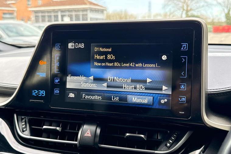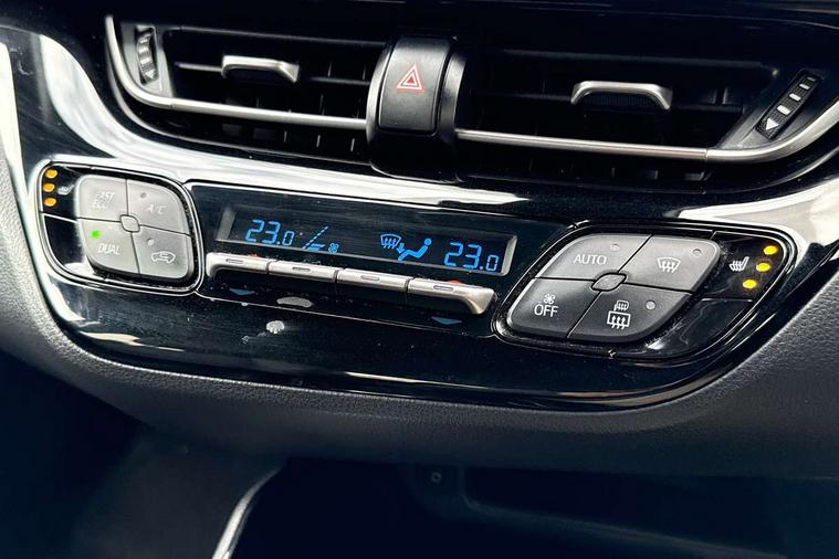 7" Coloured TFT multi informational display, 8" touch screen, Adaptive cruise control, Adjustable speed limiter, Bluetooth connectivity, Electric power steering, Intelligent parking assist with front & rear parking sensors, Lane departure alert with steering control, Lights on warning, Push button starter, Reversing camera, Reversing camera display in audio screen, Road sign assist - RSA, Touch 2 Go navigation system, Trip computer, Voice recognition, Vehicle Stability Control (VSC), 6 speakers, DAB Radio (Digital Audio Broadcasting), Steering wheel mounted controls, USB and Aux in connectors + 12V front outlet, Wi-fi connectivity, Auto high beam, Automatic headlight levelling, Automatic headlights, Automatic retractable door mirrors, Body colour door handles, Body colour door mirrors, Body coloured bumpers, Boot door release with push button, Electric folding/heated door mirrors with integrated indicators, Electrochromatic rear view mirror, Follow me home headlights, Front and rear electric windows, Front fog lights, Heated rear windscreen, Intermittent wipe, LED daytime running lights, LED High mounted stop lamp, LED rear brake lights, Projector and reflector halogen headlights, Rain sensitive windscreen wipers, Rear combination lamp, Rear privacy glass, Rear spoiler, Rear wiper, Shark fin antenna, Trailer sway control, 12V Accessory socket, 3 spoke leather steering wheel with multimedia switches, Ambient lighting, Chrome interior door handles, Clean air filter, Cloth upholstery, Driver + front passenger electric lumbar support, Driver and front passenger personal light, Driver and front passenger Whiplash Injury Lessening seats, Driver/passenger sunvisors and illuminated vanity mirrors, Dual zone automatic air conditioning, Folding rear seats, Front and rear door pockets, Front console box and front cupholders, Front cupholders x 2, Front head restraints, Gear shift indicator, Glovebox with internal light, Hard tonneau cover, Heated driver and front passenger seats, Illuminated entry system, Isofix seat fixing, Leather effect padded armrest on front console box, Leather gearshift, Light blue ambient lighting on front doors, Pollen filter, Rear headrests, Tilt/telescopic steering column, 3x3 point rear seatbelts, ABS+EBD+Brake assist, Electronic parking brake, ESP + traction control, Front and rear seatbelt reminder, Front passenger airbag on/off switch, Hill start assist control (HAC), Pre collision system with pedestrian detection, Rear child proof door locks, Road sign information display, Supplemental restraint system (SRS) airbags - 7 airbags including driver, front passenger, curtain, side and knee airbags, Toyota safety sense, Tyre pressure monitoring system, Immobiliser, Intrusion alarm, Motion sensor alarm, Remote central locking, Smart entry + Smart start, 18" 5 double spoke black machined face alloy wheels, Tyre repair kit,