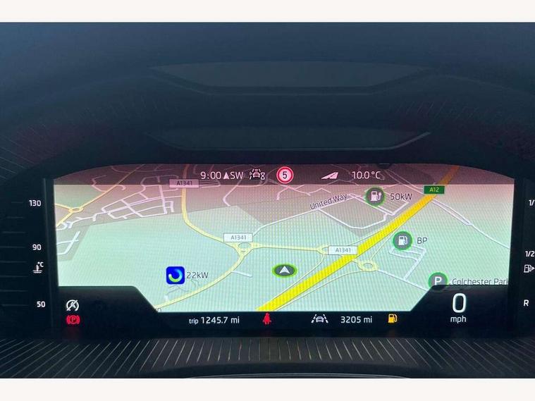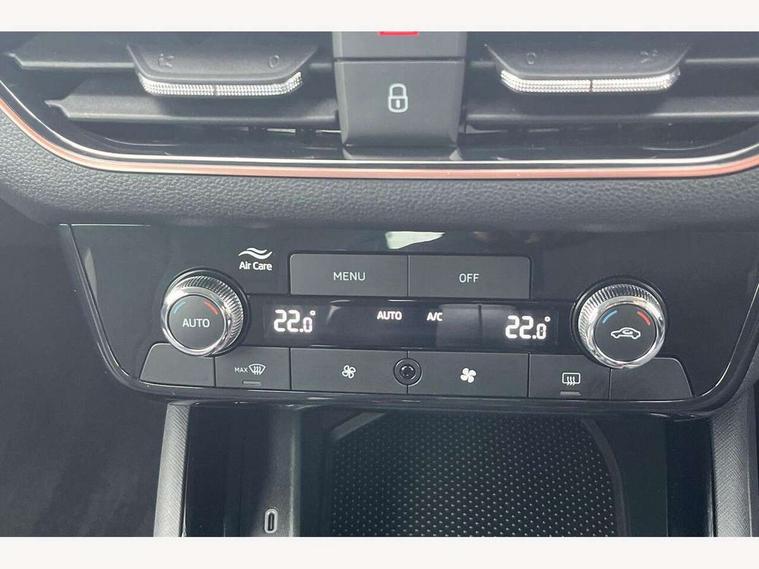Advanced driver attention and drowsiness monitor, Bluetooth, e-Call (emergency call), Front assist system, PAS, Rear parking sensors, Speed limiter, Tailgate, Traffic sign recognition, Virtual Cockpit - 10.25" digital display, Voice control system, Wireless smartlink, 4 USB C ports, 8 Speakers, 9.2" Skoda navigation display, DAB radio, Auto dimming rear view mirror, Automatic headlamp activation with Coming home and Leaving home feature, Automatic high/low beam, Automatic intermittent wipers, Body colour bumpers, Body colour door mirrors and handles, Chrome moulding around grille, Chrome window frames, Front and rear electric windows, Heated rear window, LED 3rd brake light, LED brake lights, LED daytime running lights, LED front turning lights, LED high beam, LED low beam, Light sensors, Privacy glass, Rear LED fog light, Rear side wing doors, Rear wiper, Tinted windows, 12V socket in luggage compartment, 3 seat bench in 2nd row, Ambient lighting in white/red, Black / Copper armrest stitching, Cargo elements, Chrome inner door handles, Copper hotstamping, Door inserts in accent black, Driver and passenger sun visors with vanity mirror, Dual zone climate control, Front and rear roof lights, Front centre armrest, Front head restraints, Glasses storage in roof liner, Height adjustable driver seat, Height adjustable passenger seat, Ice scraper, Illuminated glove compartment, Inner circulation control with pollen filter, ISOFIX for front passenger seat, Isofix preparation for back seats, Leather gearknob and handbrake lever, Lodge cloth upholstery, Luggage net under rear parcel shelf, Manual lumbar support for front seats, Net package and top tether hooks in boot space, Pearl grey ceiling, Pocket on the back of both front seats, incl. mobile phone pockets, Rear centre armrest, Single front passenger seat, Textile floor mats, Third rear headrest, Ticket holder, Top tether for front passenger seat, Umbrella in driver's door, 3x3 point rear seatbelts, ABS, Child locks, Curtain airbags and front side airbags, Disc brakes, Driver and front passenger airbags, ESP, Hill hold control, Manual leather parking brake, One tone horn, Passenger airbag switch off function, Seatbelt reminder for driver and front passenger, Tyre pressure monitoring system, Anti theft alarm system with interior monitoring, backup horn and towing protection, Anti-theft wheel bolts, Remote central locking with 2 remote folding keys, SAFE function for remote central locking, Decorative inserts,