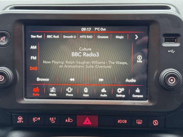 Dual drive PAS, Emergency services call system, Outside temperature display, Stop/start system, Trip computer, Bluetooth radio with Smartphone cradle, USB and DAB, Steering wheel audio controls, Black bodyside mouldings, Black door handles, Black door mirrors, Black front lower bumper, Black roof rails, Black side skirts, Body colour bumpers, Electric front windows, Front fog lights, Rear side wing doors, Rear wiper, Third brake light, 12V power sockets, Adjustable steering wheel, Bi-colour cloth upholstery, Driver's sun visor with vanity mirror, Five seat with 40/60 split folding rear seat with three rear seatbelts and head restraints, Height adjustable driver's seat, Isofix attachments on rear seats, Leather steering wheel and gear knob, Luggage compartment lighting, Passenger sunvisor with vanity mirror, Single front passenger seat, ABS/EBD, Anti-whiplash front headrests, Brake assist function, Child locks on rear doors, Driver and passenger airbags, ESP + ASR + hill holder, Tyre pressure monitoring system, Window airbags, Immobiliser, Remote control central door locking, Grained anthracite dashboard,