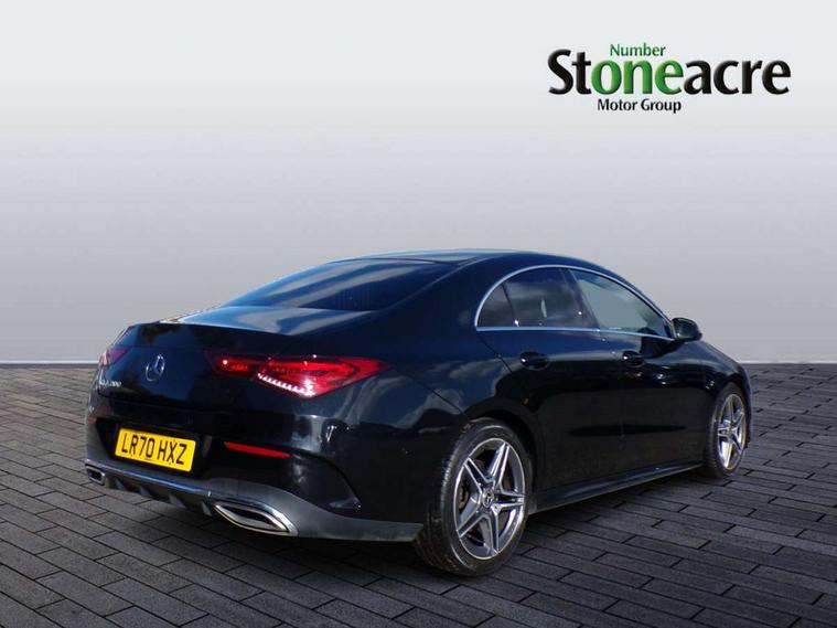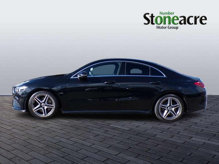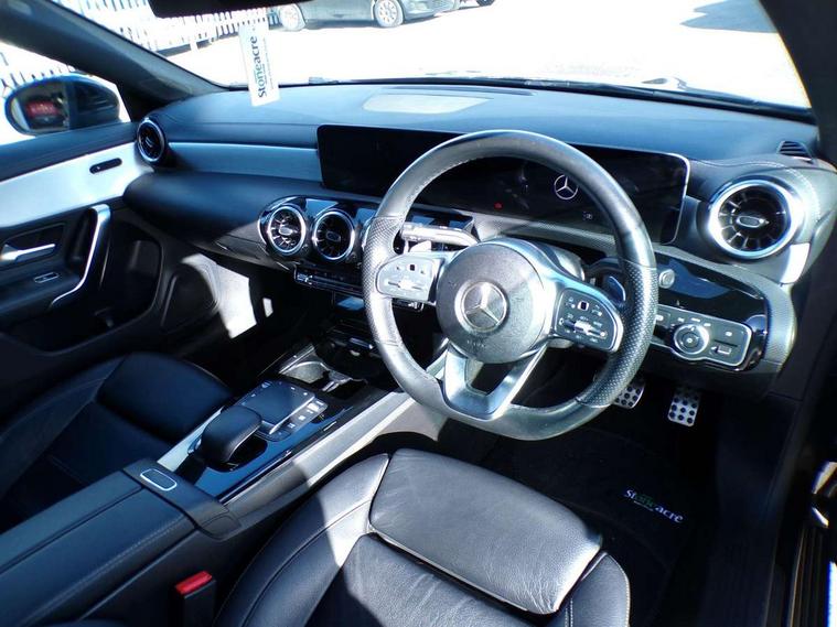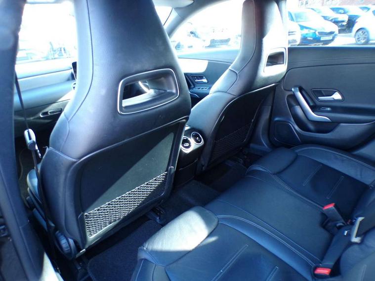 10.25 inch touchscreen central media display, 7 inch Instrument display with digital cockpit, Active lane keeping assist, Attention assist - Monitors steering behaviour and long journey fatigue, Bluetooth connection, Car wash mode, Cruise control with limiter, Direct steer system with speed sensitive power steering, DYNAMIC SELECT with a choice of driving modes (ECO, Comfort, Sport and Individual), ECO start/stop function, Fluid level warning indicator for fuel, oil, coolant and washer fluid, Hard-disk navigation, Hey Mercedes Voice activation, Lamp failure indicator, Mercedes me connect including emergency call system, accident recovery, breakdown management and maintenance, Outside temperature gauge, Owners manual and service booklet in English, Pre-installation for Vehicle Monitoring, Pre-installation for Vehicle Setup, Pre-installation of private car share, Preinstallation for Mercedes Benz link, Radio aerial integrated into front and rear windshields, Service indicator (ASSYST), Smartphone integration with Apple CarPlay and Android auto, Speed limit assist, Trip computer in multifunction display with current consumption indicator, Wireless charging, 7G-DCT 7 speed automatic transmission, Lowered comfort suspension, Rear axle multi-link, DAB digital radio tuner, MBUX multimedia system with DAB digital radio and touchpad including satellite navigation, Mercedes Benz sound system (100 W) with 6 speakers, USB (type C) ports (2) in stowage compartment and 1 in front of centre console, Adaptive brake lights, AMG body styling with AMG front apron and rear apron and visible exhaust tailpipe in chrome trim elements, AMG bodystyling side skirts, Body colour bumpers, Body colour door handles, Chrome beltline strips, Chrome weather strip, Diamond radiator grille pins in chrome with silver painted louvres and chrome insert, Electric windows, Electrically adjustable and heated door mirrors with integrated LED indicators, Exhaust system with 2 Visible tailpipe trim elements and rear apron with trim in chrome, Headlamp assist automatic headlamp activation, Heated glass rear windscreen + timer control, High level LED third brake light, Interior mirror with black reading lamps and frameless, LED high performance headlamps with integrated LED daytime running lights, LED tail lamp, Privacy glass with dark tinting on rear side windows and rear window, Rain sensing windscreen wipers with two sensitivity settings, Rear fog lamp, Window line trim strip in chrome, 3 spoke flattened bottom nappa leather multifunction steering wheel with perforated leather in grip area, 40:20:40 split folding rear seats with backrest, Air conditioning - Two zone thermotronic luxury automatic climate control with display, Air vents with surround in silver chrome, Automatic child seat recognition sensor, Black roof lining, Brushed stainless steel sports pedals with rubber studs, Floor mats with stitched AMG lettering, Front centre armrest with stowage, Front door sills with Mercedes Benz lettering, Galvanished gear shift paddles on steering wheel, Heated front seats, Illuminated glove compartment stowage, Luggage net on driver/front passenger seat backrest, Manually adjustable front seats, Manually height and reach adjustable steering column, Rear head restraints, Sport seats with fixed head restraints, Stowage compartment in centre console with retractable cover, Sunvisors with illuminated vanity mirrors, Touchpad on center console, Twin front cupholders, Two outer rear seat isofix and top tether child seat fixing points, Light and sight pack - CLA, Mirror pack - CLA, Parking package - CLA, Seat comfort pack - CLA, Active bonnet pedestrain safety measure which detects an impact and raises bonnet by 65mm, Active brake assist includes forward collision warning system with autonomous braking, Adaptive brake assist with hold function and hill start assist, Anti-lock braking system (ABS), Black seat belts, Bonnet with power domes, Brake pad wear warning indicator, Childproof locks manually operated for rear doors and electrically operated for rear power windows, Crash responsive emergency lighting, Driver and front passenger head and sidebags, Driver and front passenger windowbags, Drivers knee airbag, Dual stage driver and front passenger airbags, Electric parking brake, Electronic stability programme with acceleration skid control, ESP curve dynamic assist, Front and rear seatbelt reminder, Front passenger seat occupancy sensor, Three point rear seat belts, Tyre pressure monitoring system, Warning triangle and first aid kit, Keyless Go starting function, Remote central locking and crash sensor with emergency opening function, Urban guard vehicle protection system with immobiliser and interior protection, Light aluminium with longitudinal grain interior trim, 18" 5 twin spoke design alloy wheels painted in titanium grey with high sheen finish, Summer tyres, Tirefit tyre sealant kit,