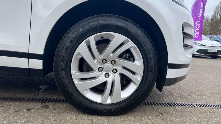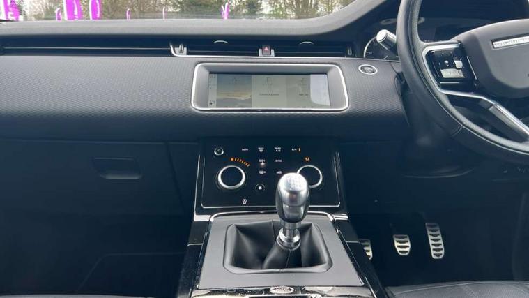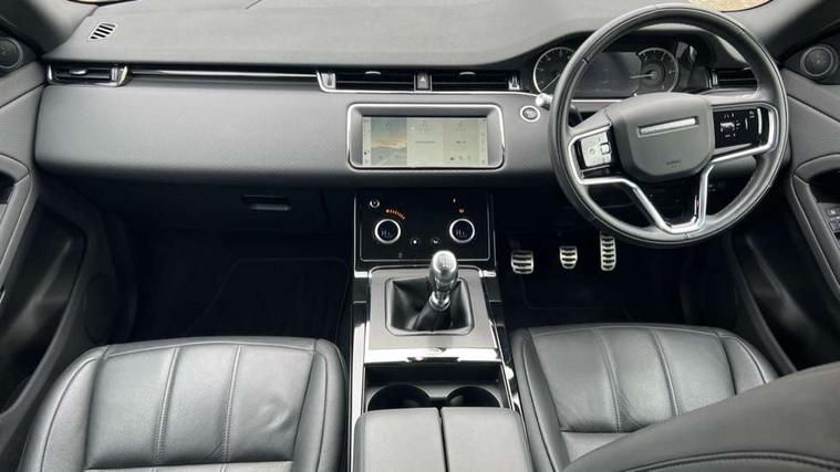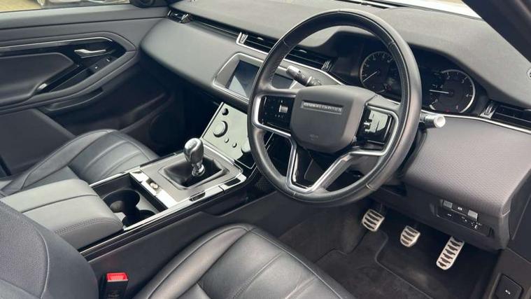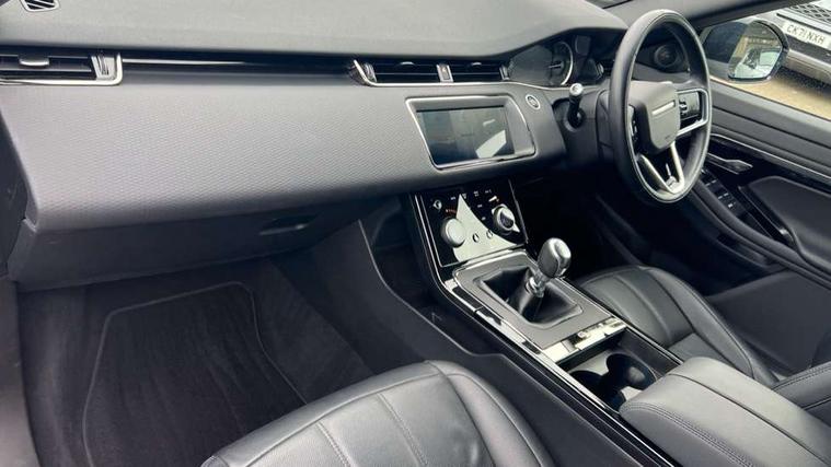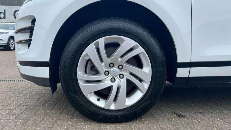 10" touch screen, Android Auto, Apple car play, Bluetooth connectivity, Brake pad wear indicator warning light, Cruise control + speed limiter, Driver condition monitor, eCall emergency system, Electronic power assisted steering (EPAS), Front and rear parking aid, InControl remote, Land Rover InControl apps, Lane keep assist, Pivi pro connected includes upgraded infotainment, connected navigation pro, Nuance speech licence, Push button starter, Traffic sign recognition with adaptive speed limiter, Voice control system, Passive suspension, Digital Audio Broadcast radio-DAB, Steering wheel mounted controls, Auto headlights, Daytime running lights, Electric windows with one touch open/close and anti trap, Evoque and R-Dynamic badge, Flush deployable exterior door handles, Heated rear window with timer, Heated washer jets, Heated windscreen, Power fold, auto-dimming, heated door mirrors with approach lights and auto dimming driver side, Rain sensing windscreen wipers, Rear fog lights, Rear side wing doors, Rear wiper, Tailgate spoiler, Third brake light, 40:20:40 split folding rear seats with centre headrest and armrest, Ambient interior lighting, Bright metal pedals, Isofix system on outer rear seats, Overhead lighting console, Overhead stowage for sunglasses, Passive front head restraints, Rear air vents, Rear centre headrest, Rear head restraints, Single passenger seat, Sunvisors with illuminated vanity mirrors, Twin sliding front centre armrest, 3 rear 3 point seatbelts, Anti-lock braking system (ABS), Customer configurable autolock, DSC - Dynamic Stability Control, Electronic brake force distribution, Electronic parking brake, Electronic traction control, Emergency braking, Front and rear seatbelt reminder, Hill launch assist, Power operated child locks, Roll stability control, Six airbags - Driver and passenger airbags/driver knee airbag/front side airbag and curtain airbags, Tyre pressure monitoring system, Alarm, Immobiliser, Intrusion sensor, Locking wheel nuts,