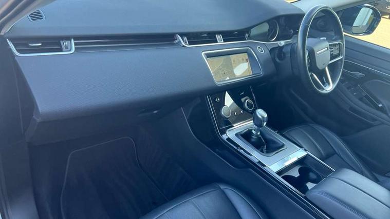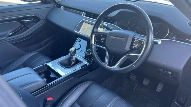 10" touch screen, Android Auto, Apple car play, Bluetooth connectivity, Brake pad wear indicator warning light, Cruise control + speed limiter, Driver condition monitor, eCall emergency system, Electronic power assisted steering (EPAS), Front and rear parking aid, InControl remote, Land Rover InControl apps, Lane keep assist, Pivi pro connected includes upgraded infotainment, connected navigation pro, Nuance speech licence, Push button starter, Traffic sign recognition with adaptive speed limiter, Voice control system, Passive suspension, Digital Audio Broadcast radio-DAB, Steering wheel mounted controls, Auto headlights, Daytime running lights, Electric windows with one touch open/close and anti trap, Evoque badge, Flush deployable exterior door handles, Heated rear window with timer, Heated washer jets, Heated windscreen, Power fold, auto-dimming, heated door mirrors with approach lights and auto dimming driver side, Rain sensing windscreen wipers, Rear fog lights, Rear side wing doors, Rear wiper, Tailgate spoiler, Third brake light, 40:20:40 split folding rear seats with centre headrest and armrest, Ambient interior lighting, Isofix system on outer rear seats, Overhead lighting console, Overhead stowage for sunglasses, Passive front head restraints, Rear air vents, Rear centre headrest, Rear head restraints, Single passenger seat, Sunvisors with illuminated vanity mirrors, Twin sliding front centre armrest, 3 rear 3 point seatbelts, Anti-lock braking system (ABS), Customer configurable autolock, DSC - Dynamic Stability Control, Electronic brake force distribution, Electronic parking brake, Electronic traction control, Emergency braking, Front and rear seatbelt reminder, Hill launch assist, Power operated child locks, Roll stability control, Six airbags - Driver and passenger airbags/driver knee airbag/front side airbag and curtain airbags, Tyre pressure monitoring system, Alarm, Immobiliser, Intrusion sensor, Locking wheel nuts,