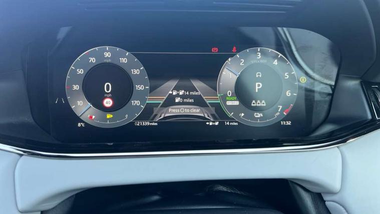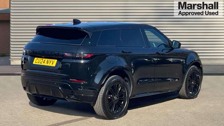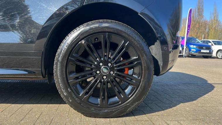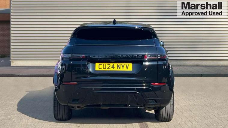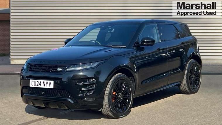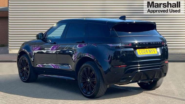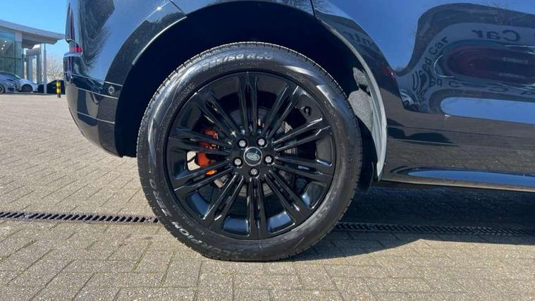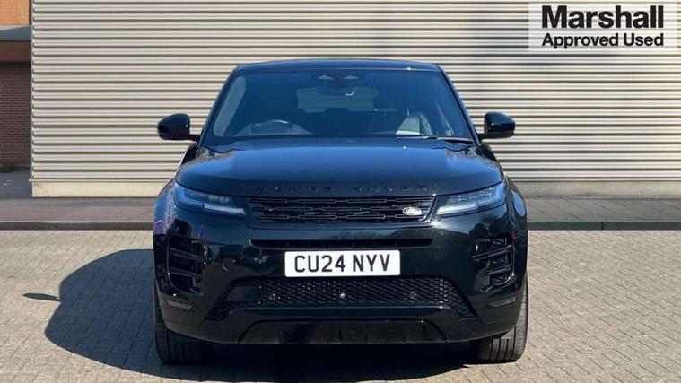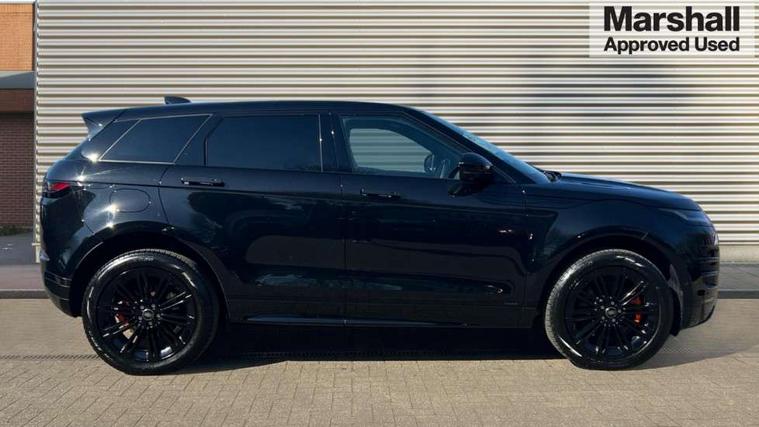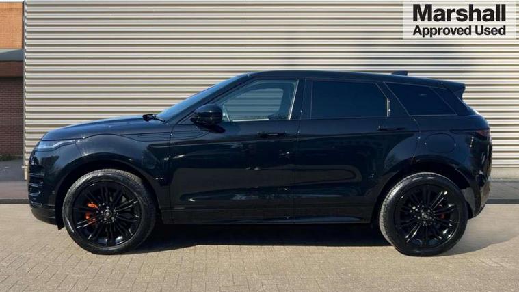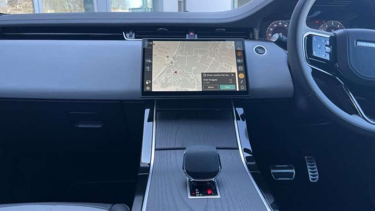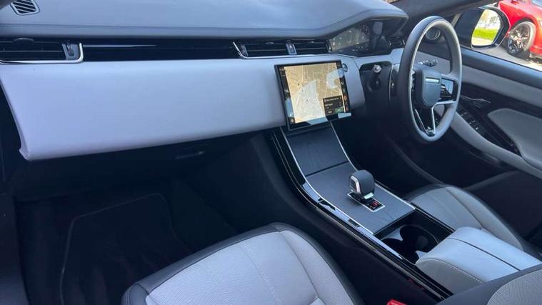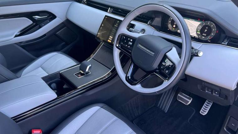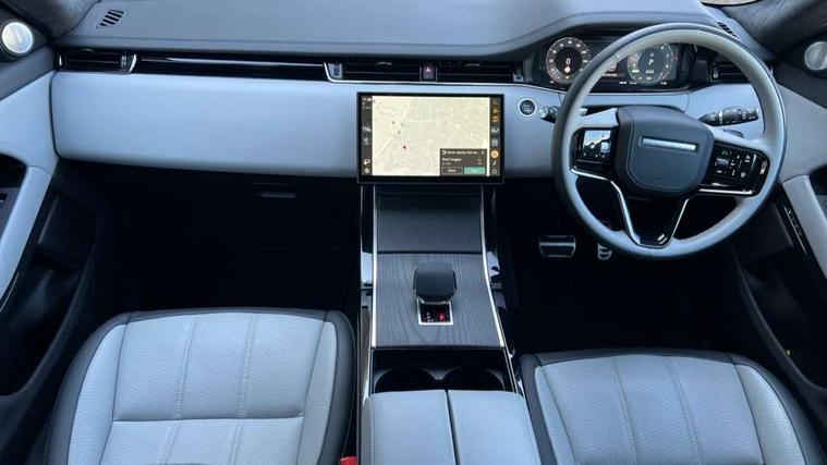 11.4" touch screen, 3D 360 degree surround camera with wade sensing, Adaptive cruise control, Android Auto, Apple car play, Blind spot assist, Bluetooth connectivity, Brake pad wear indicator warning light, Driver condition monitor, eCall emergency system, Eco mode, Electronic power assisted steering (EPAS), Front and rear parking aid, Head up Display, InControl remote, Interactive driver display, Land Rover InControl apps, Lane keep assist, Pivi pro connected includes diamond pivi variant, smart settings, connected navigation pro, nuance speech licence, Powered tailgate/boot lid, Rear collision monitor, Rear traffic monitor, Traffic sign recognition with adaptive speed limiter, Voice control system, Wireless device charging, All terrain progress control, Configurable dynamics, Electric rear axle drive, Home charging cable, Large fuel tank, Passive suspension, Public charging cable, Terrain Response 2, Digital Audio Broadcast radio-DAB, Steering wheel mounted controls, Acoustic laminated windscreen, Auto headlights, Automatic headlight levelling, ClearSight interior rear view mirror, Electric windows with one touch open/close and anti trap, Flush deployable exterior door handles, Front and rear recovery eyes, Front fog lights, Heated rear window with timer, Heated washer jets, Heated windscreen, Pixel LED headlights with signature DRL and LED tail Lights, Power fold, auto-dimming, heated door mirrors with approach lights and auto dimming driver side, Rain sensing windscreen wipers, Range rover branding illuminated metal tread plates in loadspace and row 1 with brand name script and metal in row 2, Rear animated directional indicators, Rear fog lights, Rear side wing doors, Rear wiper, Side repeater indicators in mirror, Sliding panoramic roof with powered sunblind, Tailgate spoiler, Third brake light, Winter wiper park position, 14 way driver memory electric front seats with 2 way manual headrests + 4 way lumbar support, bolsters, 40:20:40 split folding rear seats with centre headrest and armrest, Ambient interior lighting, Bright metal pedals, Cabin Air Purification plus, Configurable cabin lighting, Customer configurable single point entry, Electrically adjustable steering column with memory function and easy entry/exit, Front and rear cupholders, Heated and cooled front seats, Heated rear seats, Heated steering wheel, Isofix system on outer rear seats, Overhead lighting console, Overhead stowage for sunglasses, Passive front head restraints, Premium carpet mats, Rear air vents, Rear head restraints, Satin chrome gearshift paddles, Single passenger seat, Sunvisors with illuminated vanity mirrors, Twin sliding front centre armrest, Online pack with data plan - Evoque, Power socket pack 2 - Evoque, 3 rear 3 point seatbelts, Anti-lock braking system (ABS), Brake hold function, Customer configurable autolock, DSC - Dynamic Stability Control, Electronic brake force distribution, Electronic parking brake, Electronic traction control, Emergency braking, Front and rear seatbelt reminder, Hill descent control, Hill launch assist, Low traction launch, Occupant protection assist, Passenger seat occupant detector, Power operated child locks, Roll stability control, Six airbags - Driver and passenger airbags/driver knee airbag/front side airbag and curtain airbags, Torque vectoring brake, Tyre pressure monitoring system, Alarm, Immobiliser, Intrusion sensor, Keyless entry, Locking wheel nuts, All season tyres,