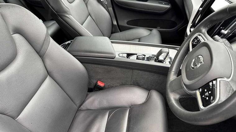 12.3" Progressive Driver Display, 360 degree surround view parking camera with side proximity sensors, 9" centre console touch screen, Adjustable steering wheel force, Bluetooth handsfree system, Driver alert control with lane keeping aid, Driver assistance (pilot assist and adaptive cruise control), Driver awareness - Blind spot information system with steer assist, cross traffic alert with autobrake and rear collision warning and mitigation, Emergency services call system, Front and rear park assist, Google Automotive Services, Oncoming Lane Mitigation, PAS, Service interval indicator, Speed limiter, Speed sensitive steering, Trip computer, Volvo on call with App, Wireless/Inductive Mobile Phone Charging, 8 speed automatic transmission with start/stop + manual change functions, Diesel particulate filter, Dynamic chassis, DAB Digital radio, Premium Sound by Harman Kardon, dirac unison, dolby pro logic II surround sound, 13 speakers/600W output and fresh air subwoofer, Steering wheel remote infotainment controls, Adaptive brake lights with high level LED brake lights, Auto dimming interior + exterior mirrors, Automatic headlight levelling system, Automatic LED Headlights + Active high beam incorporating daytime running lights, Electric adjustable/heated/auto power folding door mirrors, Electric front+rear windows, Front aluminium tread plates, Heated front windscreen, High gloss black door mirrors and window surround, High gloss black front and rear bumper decoratives, High gloss black mesh front grille with high gloss black surround, Home safe and approach lighting, Integrated roof rails in high gloss black, LED front fog lights, Puddle lights, Rain sensor with automatic windscreen wiper activation, Rear side wing doors, Rear wiper, Roof antenna, Roof spoiler, Tinted windscreen, Visible VIN plate, 12V socket in front tunnel console and luggage compartment, 3 seat bench in 2nd row, 4 Zone electronic climate control, A-pillar parking ticket holder, Air purifier particulate matter (PM) 2.5 filter, B Pillar ventilation, Bright metal luggage threshold, Centre console cupholders and storage, Charcoal floor mats, Front and rear courtesy lights, Front and rear door pocket illumination, Front cupholder illumination, Front footwell illumination, Front reading lights, Front seat cushion extensions, Glovebox compartment with illumination, Head restraints for all seats, Heated front seats, Heated steering wheel, Height/reach adjustable steering column, Illuminated luggage compartment, Illuminated vanity mirrors + ticket holder, ISOFIX attachment on outer rear seats, Load cover, Load protection net, Multi directional lumbar support, Power driver seat with memory + exterior mirrors memory, Power height adjustable passenger seat, Rear armrest with cupholder, Rear footwell and front and rear side step illumination, Rear seat concealed storage, Single front passenger seat, Tailgate illumination and ambient door lighting, Underfloor stowage compartment, Versatile split folding rear seat - 60/40, 5 three point seatbelts, City safety with steering support with Pedestrian + cyclist + large animal detection + front collision warning with full auto brake, Drivers knee airbag, Dual stage driver/passenger airbags, Electronic parking brake with auto hold, First aid kit, Front seats SIPS airbags, Hill descent control - Off-road drive mode, Hill start assist, IC (Inflatable Curtains) - Full Length, Passenger airbag cut-off device, Power child locks on rear doors, Road sign information display, Run off Road Mitigation, Run off Road Protection, Seatbelt reminder and pretensioners, SIPS (Side Impact Protection System), Slippery road and hazard light alert, Stability and Traction Control with Spin control, Engine Drag Control and Corner Traction Control, Tyre pressure monitoring system, Vehicle deceleration control with Anti-lock Brake System, Electronic Brake Distribution and Emergency Brake Assist, Warning triangle, WHIPS whiplash protection system - front, Anti-theft alarm including immobiliser/volume sensor + level sensor, Care key with user defined top speed, Key integrated remote control central locking + fuel flap with deadlocking system and auto open/close power windows, Keyless Drive (includes Keyless Entry and Keyless Start) with Handsfree Tailgate Opening/Closing, Locking wheel nuts, Private locking for tailgate,