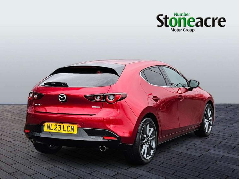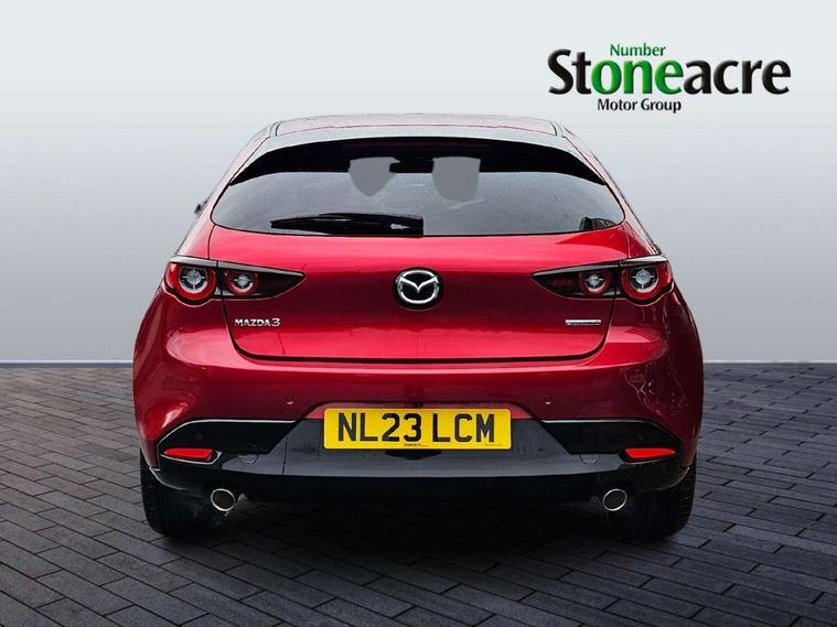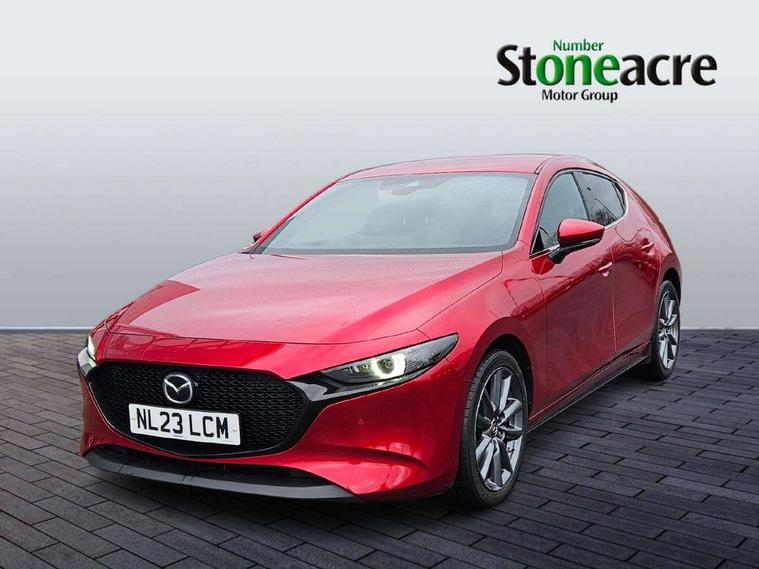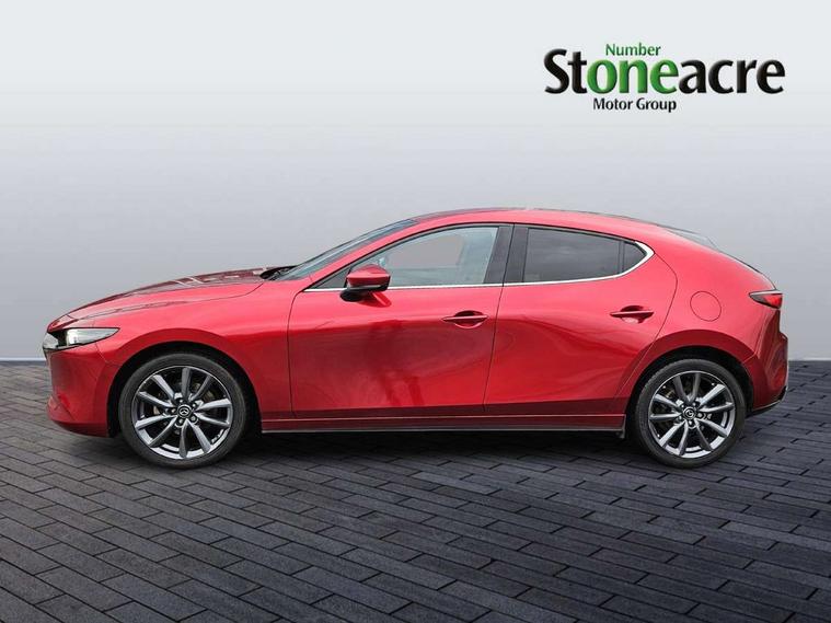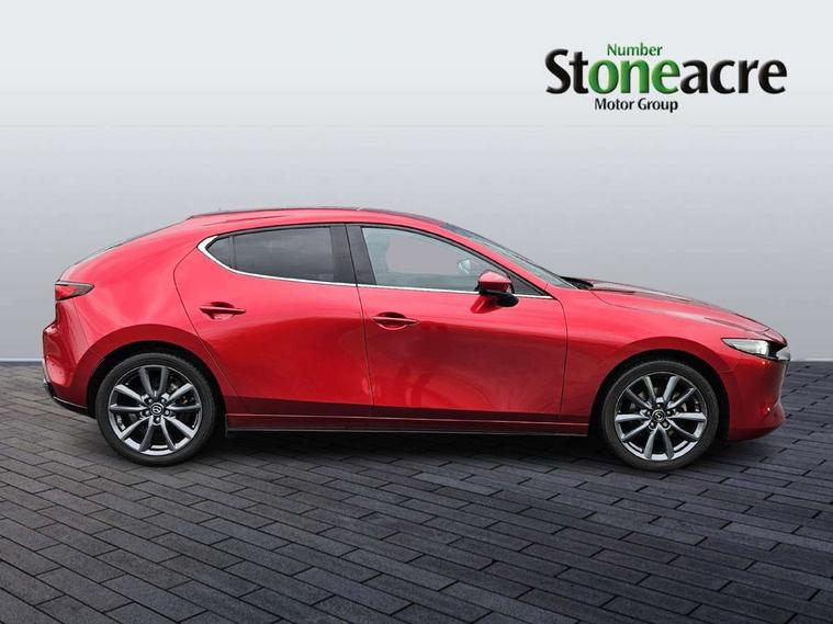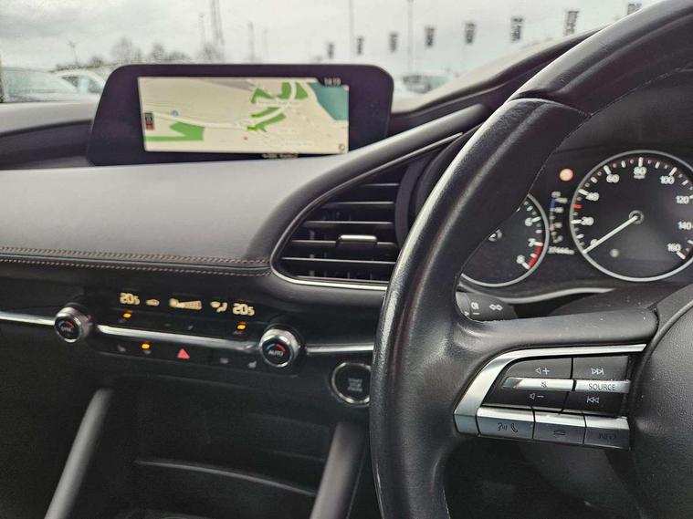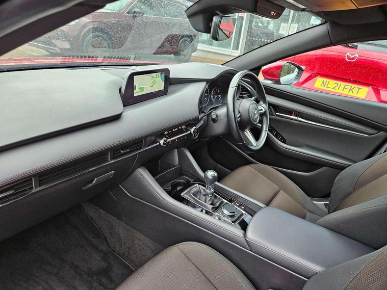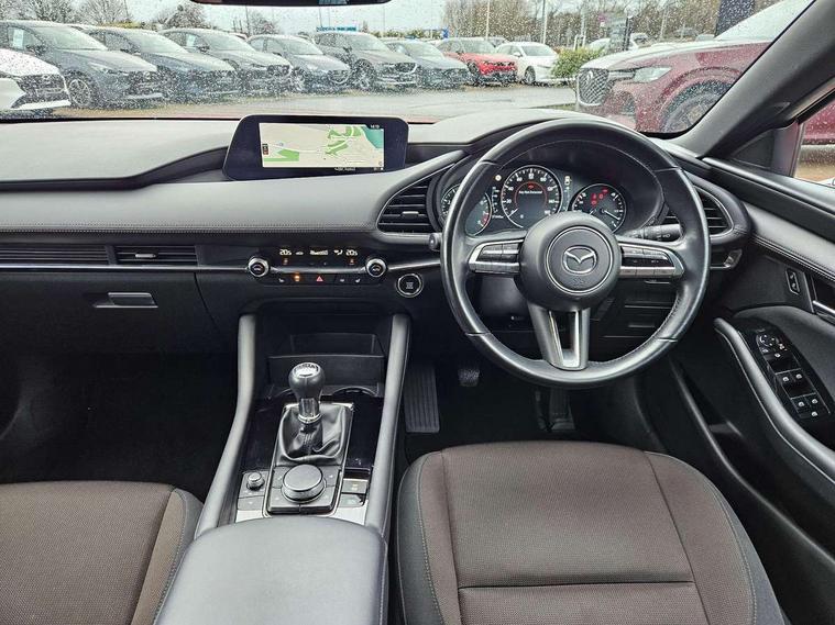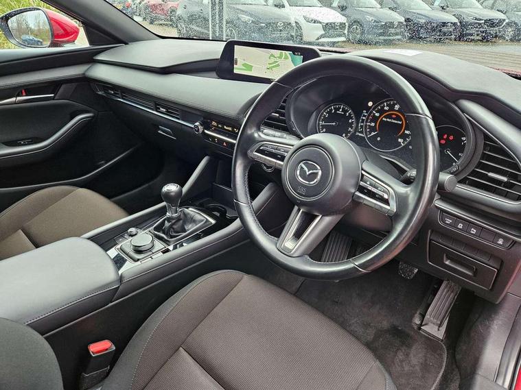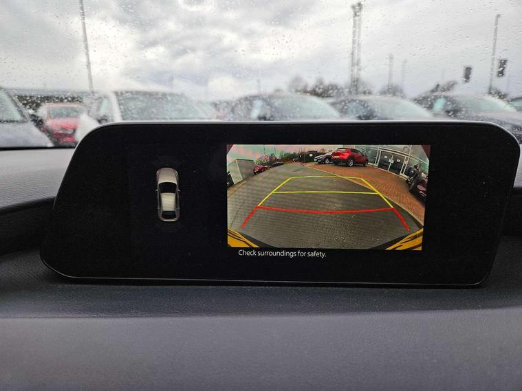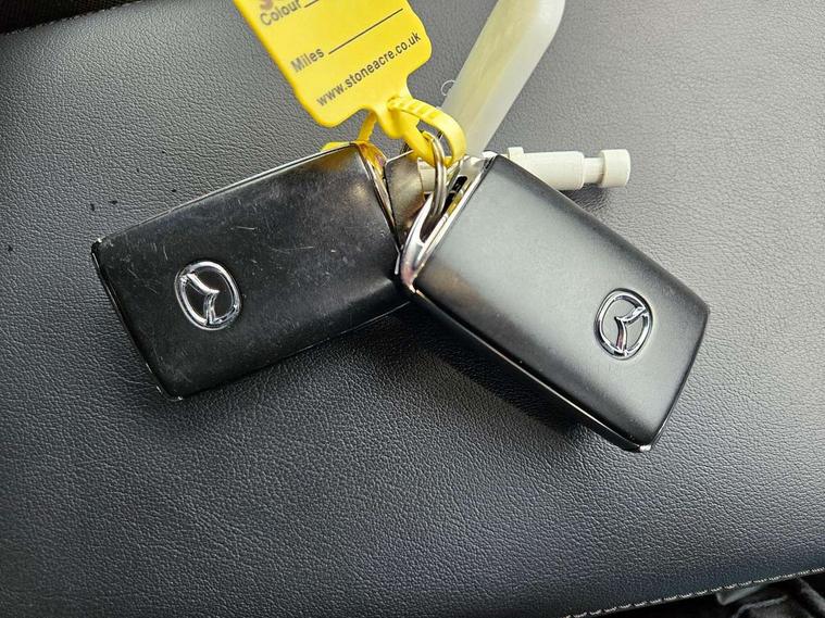 7" colour TFT display, 8.8" Colour centre touch screen display with Mazda Connect infotainment, Apple car play/Android Auto, Audio transfer from bluetooth devices, Blind spot monitoring with rear cross traffic alert, Colour active driving display inc Windscreen projected, Traffic Sign Recognition, turn-by- turn navigation and Mazda Radar Cruise Control information, Digital instrument cluster, Driver attention alert system, E-call with GPS, Emergency stop signalling system, Engine start/stop button, Front and rear parking sensor with audible and visual warning, Head up Display, Integrated bluetooth with steering wheel mounted controls, Intelligent speed assist, Lane keep assist system (LAS) with Lane departure warning system (LDWS), Mazda connected services, Mazda Navigation System with european mapping, Mazda Radar Cruise Control, Mobile App interface, Multimedia Commander, PAS, Reversing camera, Service indicator, Tailgate, Traffic sign recognition (TSR), Trip computer, Cylinder Deactivation, i-stop, Mazda Multimedia System with AM / FM / DAB radio with 8 speakers, Adaptive LED Headlights, Auto dimming driver's door mirrors, B-pillar garnish in piano black, Body coloured, electrically adjustable, heated auto power folding door mirrors with integrated indicators, Coming/leaving home lighting function, Dark metallic finish signature wing, Dual chrome tailpipes tip, Dusk sensing headlights, Electric front/rear windows with one touch/auto up/down, Frameless auto dimming interior rear view mirror, Front body coloured bumper with black lower bezel, Front kodo turn signal, Gloss black finish front grille, Gloss black rear roof spoiler, LED indicator lights, LED third brake light, Privacy glass with dark tinting on rear side windows and rear window, Rain sensing front wipers with adjustable sensitivity and speed, Rear colour coded bumper with gloss black lower moulding, Rear fog lights, Rear side wing doors, Signature LED daytime running lights, Signature LED rear combination lights, Speed adjustable rear wash wiper with intermittent wipe, 12v electrical power outlet, 3 seat bench in 2nd row, 60/40 split fold down rear seats, Black cloth door panel inserts, Chrome interior trim accents with steering wheel centre bezel, surround of engine start / stop button and glove box handle, Cloth upholstery, Dark roof headlining, ceiling and pillars, Driver, front passenger and two rear door pockets, Driver, Front passenger and two rear grab handles with coathooks, Driver/passenger sunvisors + vanity mirrors (drivers side with ticket holder), Drivers seat manual slide recline and height adjustment, Dual zone climate control air conditioning, Folding rear centre armrest with two cup holders, Front and rear courtesy lamps, Front armrest, Front centre storage with two cupholders, Front head restraints, Front passenger seatback pocket, Front passengers seat manual slide, recline and height adjustment, Gear shift indicator, Heated front seats with 3 stage setting, Illuminated glovebox, Interior colouration dashboard and doorcards in black with dark stitching, ISOFIX child seat anchorage points attached on outer rear seats, Leather wrapped gear shift knob, Leather wrapped steering wheel, LED interior light, Luggage compartment light, Power outlet in luggage compartment, Roof mounted sunglasses holder, Single front passenger seat, Three height adjustable rear head restraints, Tilt/height adjustable steering wheel, USB input, 3 point ELR front seatbelts with pretensioners, 3 rear 3 point seatbelts with ELR, Anti-lock braking system (ABS), Drivers knee airbag, DSC - Dynamic Stability Control, Dual stage driver and single stage passenger airbags, EBD - Electronic brakeforce distribution, Electronic parking brake with auto disengage function and auto hold function, Front and rear curtain airbags, Front passenger airbag cut-off switch, Front side airbags, Front smart city brake support, G-Vectoring control plus, Hill launch assist, Intelligent Traction Control system, Manual child lock in rear doors, Mild Hybrid system with regenerative braking, Seatbelt reminder for driver/front passenger and rear seats, Tyre pressure monitoring system (TPMS), Auto door lock when driving, Remote central locking + deadlocks, Smart keyless entry, Thatcham accredited alarm and immobiliser, 18" Grey alloy wheels, Emergency tyre repair kit,