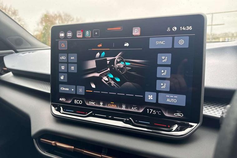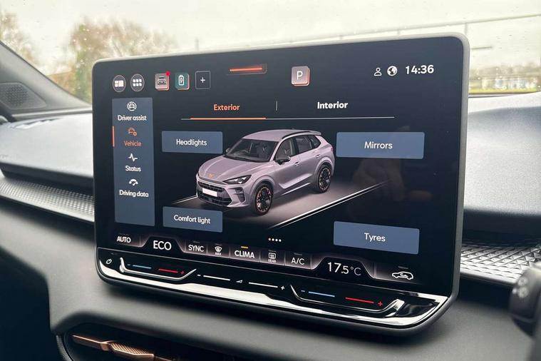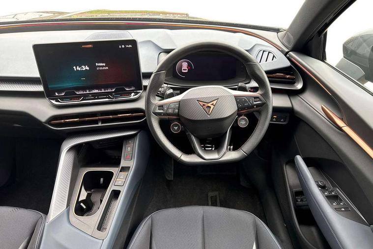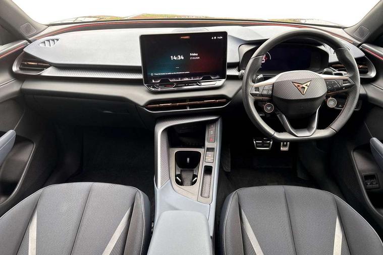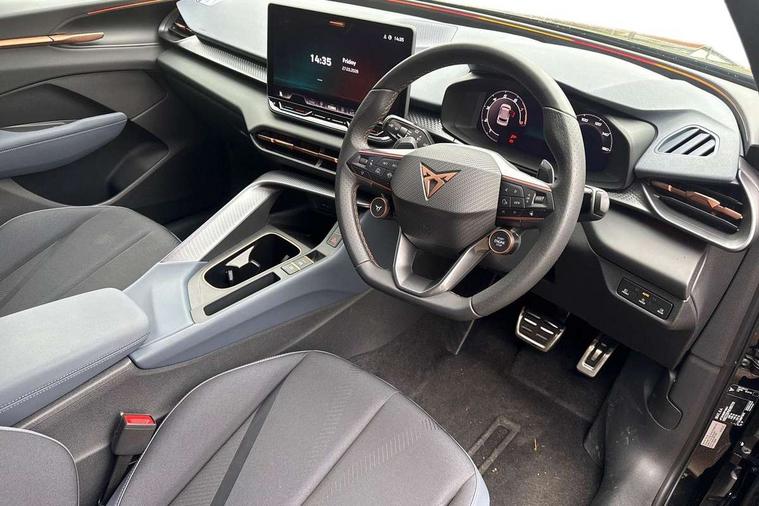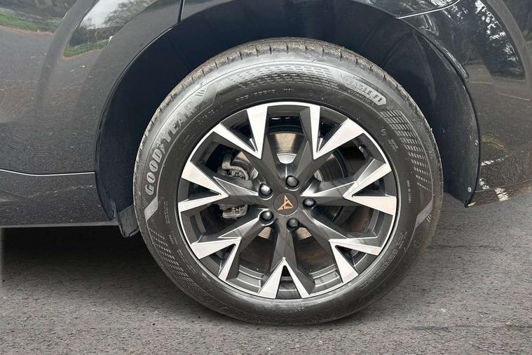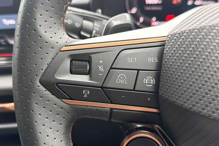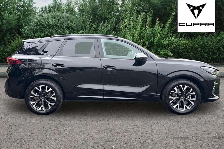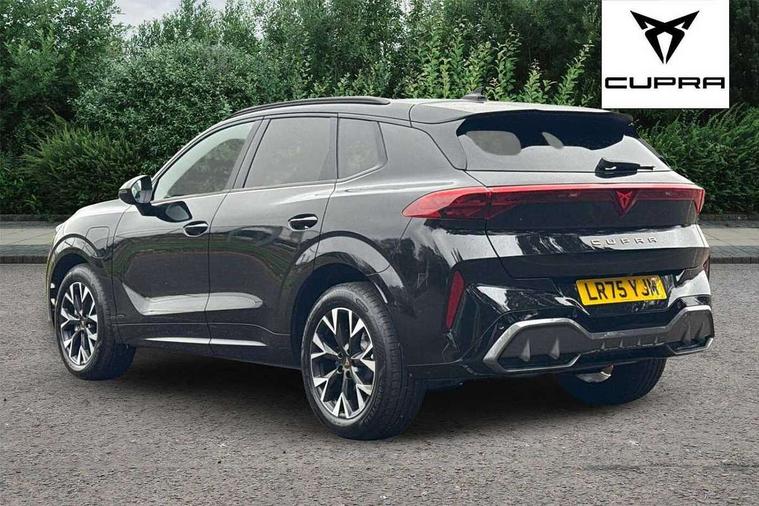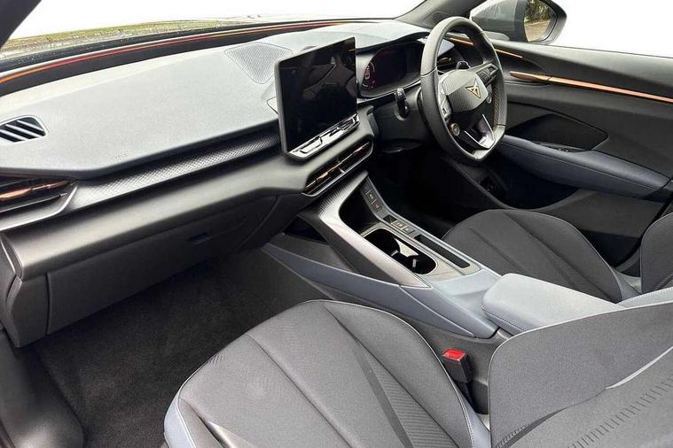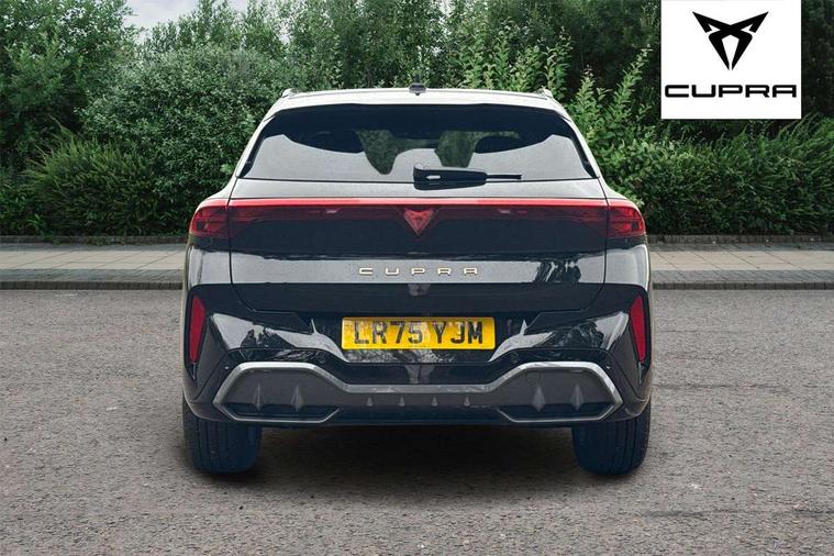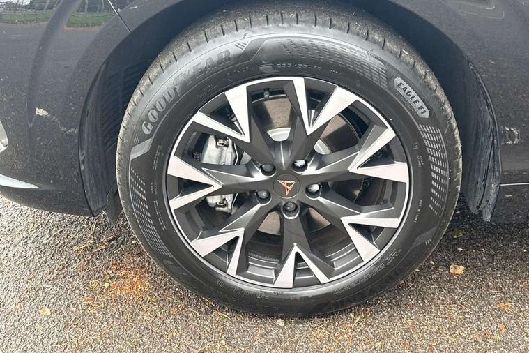 10.25" digital cockpit, Adaptive cruise control with follow-to-stop and speed limiter, Advanced driver alert system, Driving profile selection and conventional shock absorber, Dynamic road sign display, E-call, Electric tailgate with virtual pedal, Emergency steering support with turn assist, Front and rear parking sensors, Front assist (Forward collision warning with automatic braking) with multifunction camera and front cross traffic assist, Lane assist, Media system with Nav - 12.9" touch display, voice control, full link phone (wired/wireless), DAB and Steering wheel mounted controls, Rear view camera, Speed sensitive power steering, Start/stop system with regenerative braking, Wireless phone charger, 10 amp mode 2 charging cable, 16 amp mode 3 charging cable, 8+1 Speakers, Auto dimming rear view mirror, Black roof rails, CUPRA 3D rear lights with ceremony & swiping indicator and illuminated logo, Dark tinted rear windows, Daytime running lights with automatic headlight control and Coming and Leaving home function, Dynamic headlight range control, Electric front/rear windows, Electrically adjustable, heated and folding door mirrors, Front fog lamps with cornering function, Heat reflecting windscreen, LED headlamps with signature "CUPRA LED", Rain sensing wipers, Rear fog light on one side, back up light on both sides, Rear side wing doors, Rear wash/wipe, Third brake light, Welcome lights (within exterior mirror housing), 3 seat bench in 2nd row, Black roof lining, Cloth upholstery, Cupra sports pedals, Driver and passenger seat with manual height and lumbar adjustment, Four x USB Type C ports (2 in front and 2 in rear), Front and rear head restraints, Front and rear reading lights X 4, Front centre armrest, Heated leather wrapped multi function sports steering wheel with tiptronic, Illuminated interior front door sills, Interior ambient lighting, Isofix, Operating voltage 12V, Single front passenger seat, Sunvisors with illuminated mirror, Three zone climate control with control panel in rear, Unsplit rear seat bench, split folding backrest, with centre armrest, Variable luggage/load compartment floor, 3 point seatbelts on all rear seats, Brake control system - ESC and brake booster, Child proof door locks, Driver and front passenger airbags, Electronic parking brake, Front and rear disc brakes, Front interaction airbag, Front passenger airbag deactivation switch, Front side airbags with curtain airbags, Tyre pressure monitoring system, Visual and acoustic seat belt reminder, electric contact in front and rear, Anti theft alarm, Keyless locking and starting system with keyless access, Locking wheel bolts, Black decorative trims, Chrome interior detailing, 18" Atomic alloy wheels, Breakdown kit, Tool kit,