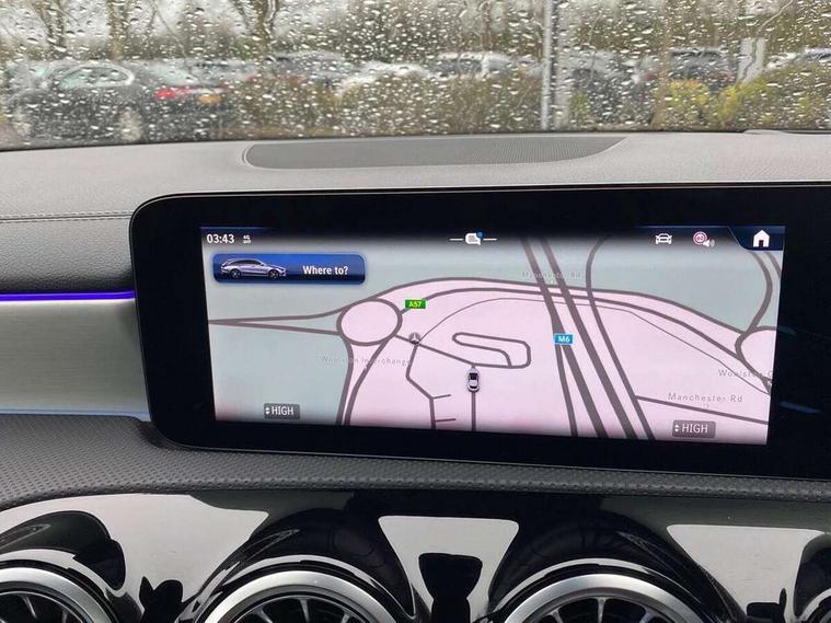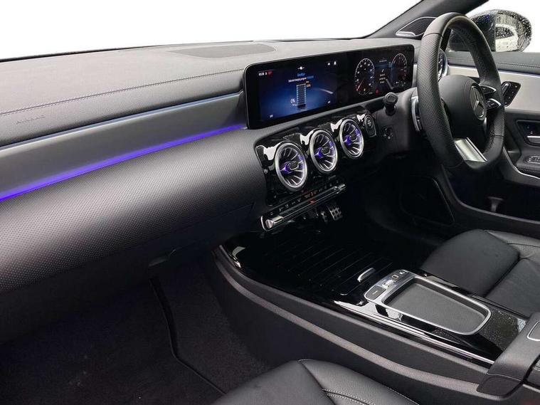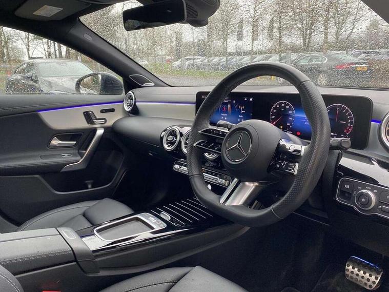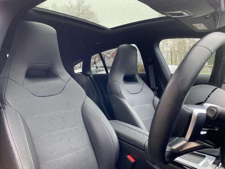 10.25 inch Instrument display with digital cockpit, 10.25 inch touchscreen central media display, Acoustic ambient protection, Active lane keeping assist, Attention assist - Monitors steering behaviour and long journey fatigue, Bluetooth connection, Car wash mode, Cruise control with limiter, Direct steer system, DYNAMIC SELECT with a choice of driving modes (ECO, Comfort, Sport and Individual), ECO start/stop function, Fingerprint sensor, Fluid level warning indicator for fuel, oil, coolant and washer fluid, Hard-disk navigation, Head up Display, Hey Mercedes Voice activation, Lamp failure indicator, MBUX augmented reality for navigation, Mercedes me connect including emergency call system, accident recovery, breakdown and maintenance management, Mercedes me remote and charging services plus, Outside temperature gauge, Owners manual in English, Pre-installation of private car share, Radio aerial integrated into front and rear windshields, Service indicator (ASSYST), Smartphone integration with Apple CarPlay and Android auto, Tailgate, Traffic sign assist, Trip computer in multifunction display with current consumption indicator, Wireless charging in the front centre console, Charging system - AC charging system rated at 11kW, Charging system - DC charging system rated at 22kW, Comfort suspension, Mode 3 charging cable for wallbox and public charging stations with 5m upto 11kW, Rear axle torsion beam, Burmester lettering on the speakers, Burmester surround sound system (710W) with dolby atmos, speakers - 1 central, 1 woofer, 1 tweeter, 1 subwoofer with 60W, 2 in C pillar, DAB digital radio tuner, MBUX multimedia system, Pre installation for Mercedes Benz Link, Adaptive brake lights, AMG body styling with AMG front apron and rear apron and visible exhaust tailpipe in chrome trim elements, Body colour door handles, Electric panoramic sunroof with automatic tilt and convenience closing fuinctions, rain sensor auto closing and electronic roller sunblind, Electric windows, Electrically adjustable and heated door mirrors with integrated LED indicators, Exhaust system with 2 Visible tailpipe trim elements and rear apron with trim in chrome, Hand free access, Headlamp assist automatic headlamp activation, Heated glass rear windscreen + timer control, High level LED third brake light, Integrated LED daytime running lights, Interior mirror with black reading lamps and frameless, LED tail lamp, Multibeam LED headlamps with adaptive highbeam assist plus, Privacy glass with dark tinting on rear side windows and rear window, Radiator grille with Mercedes-Benz pattern in chrome and central Mercedes star, single louvre in high-gloss black with chrome inserts, Rain sensing windscreen wipers with two sensitivity settings, Rear fog lamp, Rear side wing doors, Rear wiper, Variable front intermittent wipers, 3 seat bench in 2nd row, 3 twin spoke flattened multifunction steering wheel in nappa leather - horizontal twin spoke in high gloss black, vertical twin spoke in silver chrome, 40:20:40 split folding rear seat backrests, Air conditioning - Two zone thermotronic luxury automatic climate control with display, Air vents with surround in silver chrome, Automatic child seat recognition sensor, Black roof lining, Brushed stainless steel sports pedals with rubber studs, Charging socket, Electrically adjustable front memory seats including 4 way lumbar support, Floor mats with stitched AMG lettering, Fluorescent jacket, Front centre armrest with stowage, Galvanished gear shift paddles in silver chrome, Illuminated front door sills with Mercedes Benz lettering and changeable cover, Interior lighting - 64 colour Ambient lighting, Luggage net on driver/front passenger seat backrest, Manually height and reach adjustable steering column, Pre-entry climate control, Rear armrest with two integral cup holders for drinks, Rear head restraints, Single front passenger seat, Sport seats with fixed head restraints, Stowage compartment in centre console with retractable cover, Sunvisors with illuminated vanity mirrors, Twin front cupholders, Two outer rear seat isofix and top tether child seat fixing points, Drive parking assist pack with 360 degree camera - CLA, Keyless go comfort pack - CLA with easy pack tailgate, Light and sight pack - CLA, Mirror pack - CLA, Night package - CLA, Seat comfort pack - CLA, USB package plus - CLA, Winter pack - CLA, Active bonnet pedestrain safety measure which detects an impact and raises bonnet by 65mm, Adaptive brake assist with hold function and hill start assist, Anti lock braking system (ABS) with brake assist, Black seat belts, Bonnet with power domes, Brake calipers with Mercedes-Benz lettering, Brake pad wear warning indicator, Childproof locks manually operated for rear doors and electrically operated for rear power windows, Crash responsive emergency lighting, Driver and front passenger head and sidebags, Driver and front passenger windowbags, Drivers knee airbag, Dual stage driver and front passenger airbags, Electric parking brake, Electronic stability programme with acceleration skid control, ESP curve dynamic assist, Exit warning, Front and rear seatbelt reminder, Front passenger seat occupancy sensor, Perforated front brake discs, Radar-based recuperation, Sports braking system, Three point rear seat belts, Tyre pressure monitoring system, Warning triangle and first aid kit, Alarm system with immobiliser and interior protection -Thatcham category 1, Guard 360 deg vehicle protection - tow away protection with visual, acoustic warning, interior monitoring, preinstallation for parking damage, Remote central locking and crash sensor with emergency opening function, Light aluminium with longitudinal grain interior trim, 19" AMG multi-spoke black painted light alloy wheels with high sheen rim finish, Summer tyres, Tirefit tyre sealant kit,