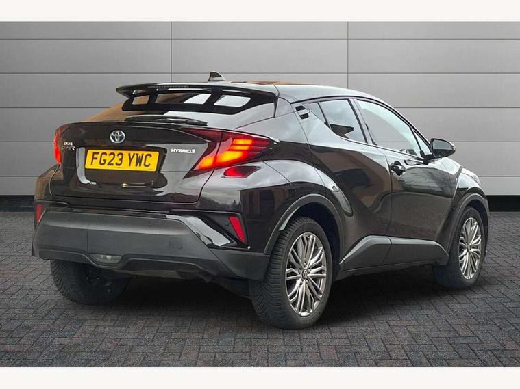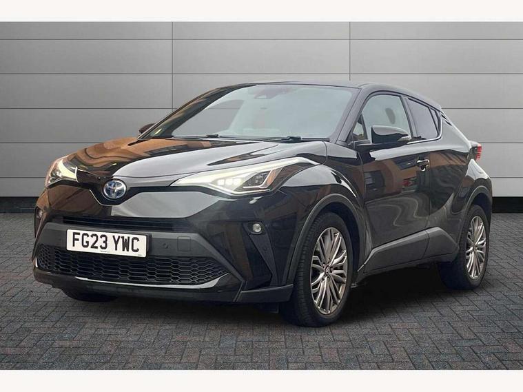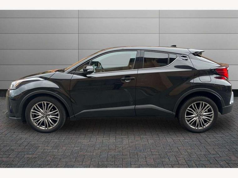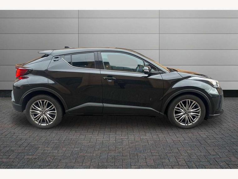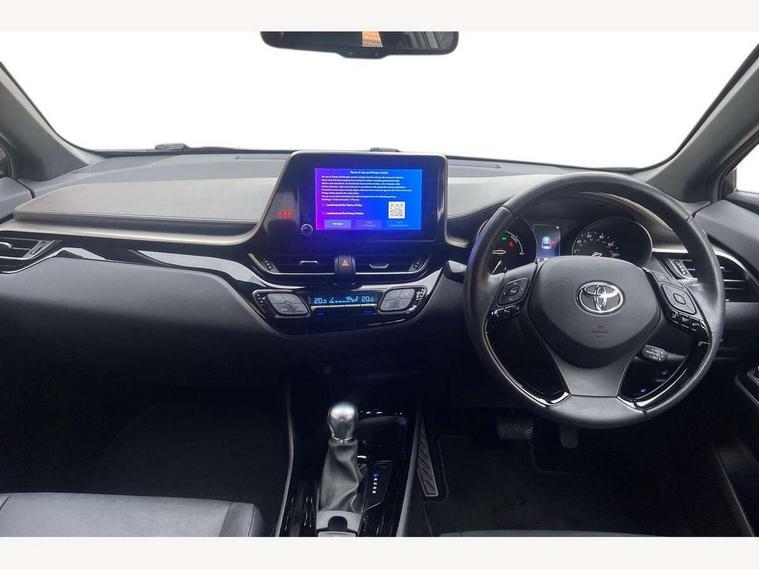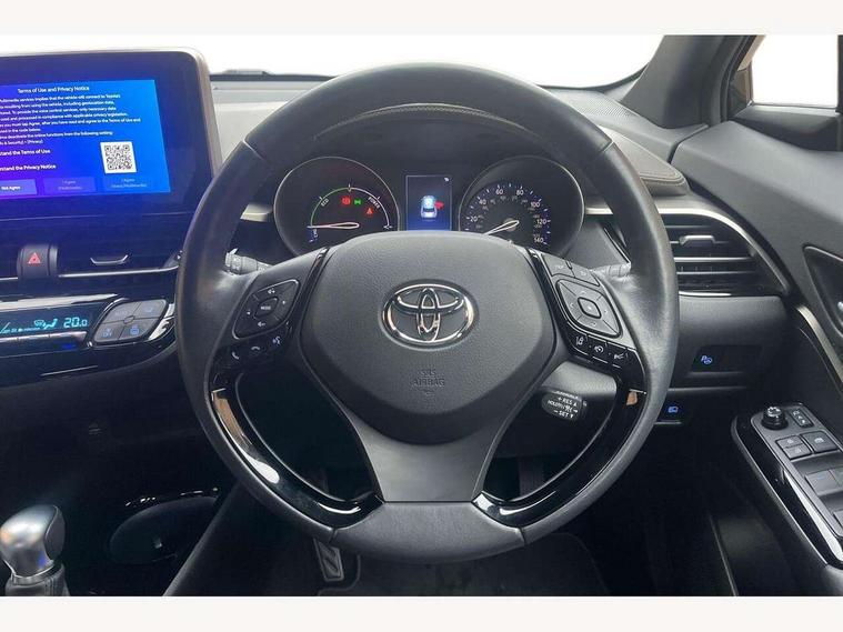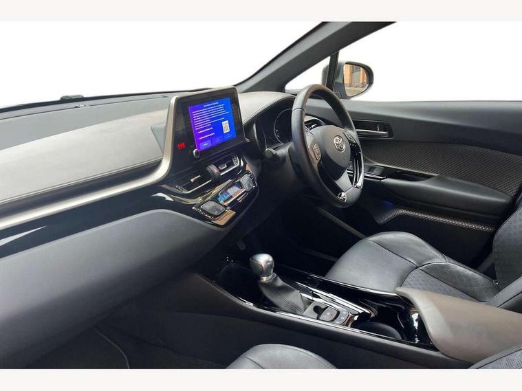 4.2" coloured TFT screen for multi-information display, Adaptive cruise control, Apple car play and Android auto, Bluetooth connectivity, E-call, Electric power steering, Hybrid system indicator, Lane departure alert with steering control, Lane trace assist, Push button tailgate release, Remote boot door release in cabin, Remote boot door release in key, Reversing camera, Road sign assist - RSA, Simple Intelligent parking assist, Smart voice assist, Touch 2 Go navigation system, Trip computer, Voice recognition, Wireless smartphone integration, Vehicle Stability Control (VSC), 6 speakers, AM/FM radio, DAB Radio (Digital Audio Broadcasting), Toyota touch 2 multimedia system with 8" display, USB connector, Wi-fi connectivity, Adaptive front light system, Adaptive LED Headlights, Anti-jam protection on power windows, Auto high beam, Auto up and down function on all power windows, Automatic headlight levelling, Automatic headlights, Automatic headlights cut-off, Black and body coloured rear bumper, Black lower front grille, Black upper front grille, Body colour door handles, Body colour door mirrors, Body colour front spoiler lip, Body coloured front bumper, Boot door release with push button, Electric heated door mirrors, Follow me home headlights, Front and rear power windows, Headlight cut off reminder, Honeycomb lower front grille, LED daytime running lights, LED fog lights, LED front light guide, LED High mounted stop light, LED rear brake lights, LED rear combination lights, Noise reduction layer on front windows and windscreen, Power adjustable door mirrors, Privacy glass, Rain sensor, Rear sequential indicators, Rear side wing doors, Rear spoiler, Rear tailgate, Rear window defogger, Rear window wiper, Shark fin antenna, UV-filter on driver and passenger windows, UV-filter on rear windows, Variable front intermittent wipers, 12v power outlet - front, 3 rear headrests, 3 seat bench in 2nd row, 3 spoke leather steering wheel, 60/40 split folding 2nd row rear seats, Adjustable rear headrests, Adjustable speed limiter switch on steering wheel, Assist grips front and centre pillar, Audio and telephone switches on steering wheel, Black front door assist grips, Blue ambient lighting on front cup holders, Blue ambient lighting on front doors, Boot light, Chrome interior door handles, Driver and front passenger personal light, Driver and front passenger Whiplash Injury Lessening seats, Driver and passenger seatback pockets, Dual zone automatic air conditioning, Floor mats, Front cupholders, Front head restraints, Front sports seats, Glovebox with internal light, Hard tonneau cover, Heated driver and front passenger seats, Heated steering wheel, Hooks for luggage holding net, Humidifying Nanoe air purifier, Illuminated entry system, Isofix attachments on outer rear seats, Leather gearshift, Light on driver sun visor, Light on passenger sun visor, Manual telescopic steering wheel, Manual tilt steering wheel, Microphone on front personal light, Mirror on driver sun visor, Mirror on passenger sun visor, Multimedia switches on steering wheel, Pollen filter, Power adjustable lumbar support on driver seat, Power tilting cushion on driver seat, Shopping bag hooks, Single front passenger seat, Slow opening on lower glovebox, Voice recognition switch on steering wheel, Leather pack - C-HR, Tech with parking sensor pack - C-HR, 16 Disk front wheel brake, 3x3 point rear seatbelts, ABS+EBD+Brake assist, Electronic parking brake, Front and rear seatbelt reminder, Front passenger airbag on/off switch, Hill start assist control (HAC), Pre collision system with pedestrian detection, Pre-tensioners and force limiters, Rear door child safety locks, SRS Airbags - Driver + Front passenger, front side, front and rear curtain and driver's knee airbags, Toyota safety sense, Tyre pressure monitoring system, Tyre pressure warning system, Acoustic vehicle alert system (AVAS), Glass-breaking alarm sensors, Immobiliser, Intrusion alarm, Intrusion sensor, Motion sensor alarm, Power door locks, Power passenger window lock, Remote central locking, Black lower dashboard, Dark brown upper dashboard, Piano black console, Silver deco line on upper dashboard, Tyre repair kit,