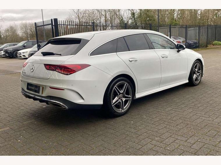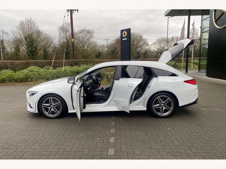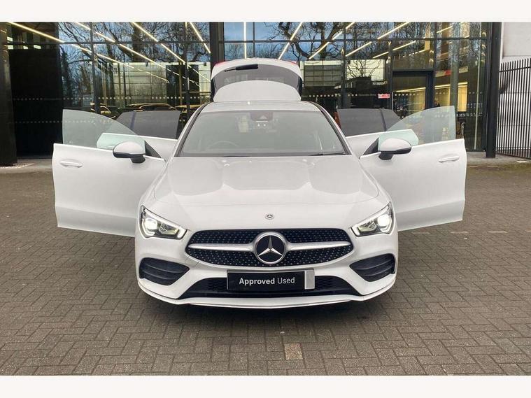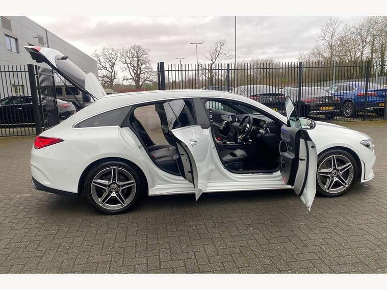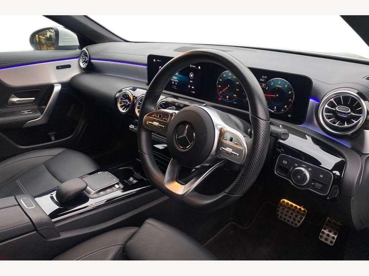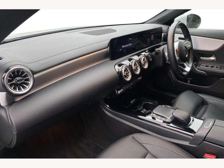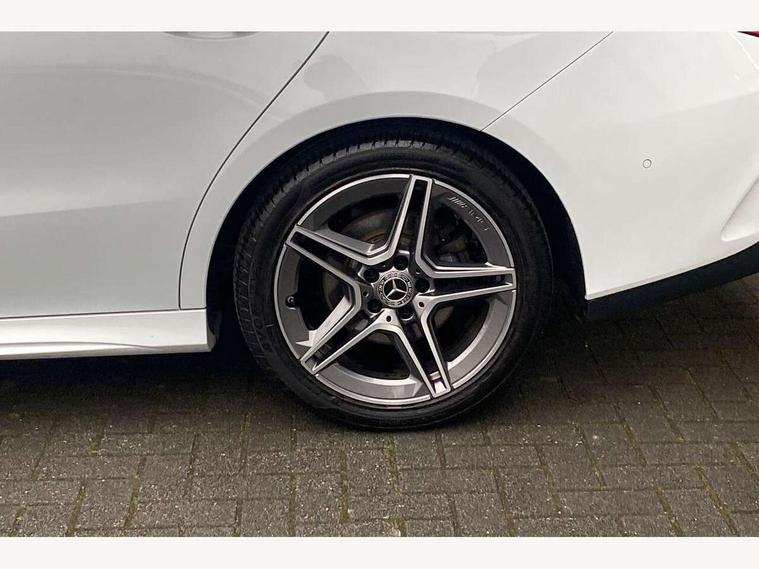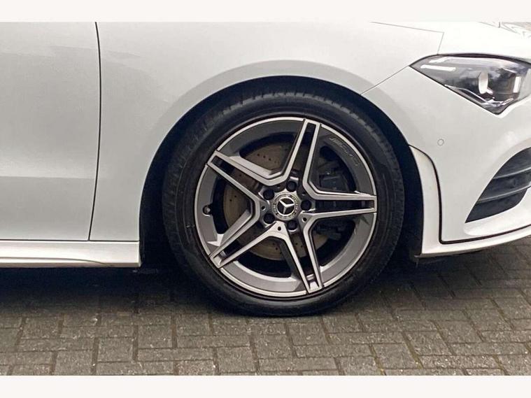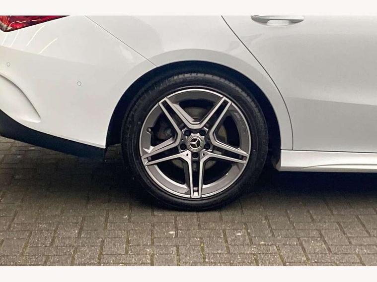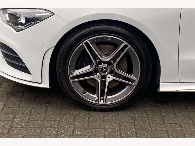 10.25 inch Instrument display with digital cockpit, 10.25 inch touchscreen central media display, Active lane keeping assist, Attention assist - Monitors steering behaviour and long journey fatigue, Bluetooth connection, Car wash mode, Cruise control with limiter, Direct steer system with speed sensitive power steering, DYNAMIC SELECT with a choice of driving modes (ECO, Comfort, Sport and Individual), ECO start/stop function, Fluid level warning indicator for fuel, oil, coolant and washer fluid, Hard-disk navigation, Hey Mercedes Voice activation, Lamp failure indicator, Mercedes me connect including emergency call system, accident recovery, breakdown and maintenance management, Mercedes me remote services, Outside temperature gauge, Owners manual and service booklet in English, Pre-installation of private car share, Preinstallation for Mercedes Benz link, Radio aerial integrated into front and rear windshields, Service indicator (ASSYST), Smartphone integration with Apple CarPlay and Android auto, Speed limit assist, Trip computer in multifunction display with current consumption indicator, 7G-DCT 7 speed automatic transmission, Lowered comfort suspension, Rear axle multi-link, DAB digital radio tuner, MBUX multimedia system with DAB digital radio and touchpad including satellite navigation, Mid-range sound system, USB (type C) ports (2) in stowage compartment and 1 in front of centre console, Adaptive brake lights, AMG body styling with AMG front apron and rear apron and visible exhaust tailpipe in chrome trim elements, AMG bodystyling side skirts, Body colour bumpers, Body colour door handles, Chrome beltline strips, Chrome weather strip, Diamond radiator grille pins in chrome with silver painted louvres and chrome insert, Electric windows, Electrically adjustable and heated door mirrors with integrated LED indicators, Exhaust system with 2 Visible tailpipe trim elements and rear apron with trim in chrome, Headlamp assist automatic headlamp activation, Heated glass rear windscreen + timer control, High level LED third brake light, Interior mirror with black reading lamps and frameless, LED high performance headlamps with integrated LED daytime running lights, LED tail lamp, Privacy glass with dark tinting on rear side windows and rear window, Rain sensing windscreen wipers with two sensitivity settings, Rear fog lamp, Rear side wing doors, Rear wiper, Window line trim strip in chrome, 3 seat bench in 2nd row, 3 spoke flattened bottom nappa leather multifunction steering wheel with perforated leather in grip area, 40:20:40 split folding rear seat backrests, Air conditioning - Two zone thermotronic luxury automatic climate control with display, Air vents with surround in silver chrome, Automatic child seat recognition sensor, Black roof lining, Brushed stainless steel sports pedals with rubber studs, Floor mats with stitched AMG lettering, Front centre armrest with stowage, Galvanished gear shift paddles on steering wheel, Heated front seats, Illuminated front door sills with changeable cover, Illuminated glove compartment stowage, Interior lighting - 64 colour Ambient lighting, Luggage net on driver/front passenger seat backrest, Manually adjustable front seats, Manually height and reach adjustable steering column, Rear armrest with two integral cup holders for drinks, Rear head restraints, Single front passenger seat, Sport seats with fixed head restraints, Stowage compartment in centre console with retractable cover, Sunvisors with illuminated vanity mirrors, Touchpad on center console, Twin front cupholders, Two outer rear seat isofix and top tether child seat fixing points, Keyless go pack - CLA, Light and sight pack - CLA, Mirror pack - CLA, Parking package - CLA, Seat comfort pack - CLA, Active bonnet pedestrain safety measure which detects an impact and raises bonnet by 65mm, Active brake assist includes forward collision warning system with autonomous braking, Adaptive brake assist with hold function and hill start assist, Anti-lock braking system (ABS), Black seat belts, Bonnet with power domes, Brake pad wear warning indicator, Childproof locks manually operated for rear doors and electrically operated for rear power windows, Crash responsive emergency lighting, Driver and front passenger head and sidebags, Driver and front passenger windowbags, Drivers knee airbag, Dual stage driver and front passenger airbags, Electric parking brake, Electronic stability programme with acceleration skid control, ESP curve dynamic assist, Front and rear seatbelt reminder, Front passenger seat occupancy sensor, Three point rear seat belts, Tyre pressure monitoring system, Warning triangle and first aid kit, Remote central locking and crash sensor with emergency opening function, Urban guard vehicle protection system with immobiliser and interior protection, Light aluminium with longitudinal grain interior trim, 18" 5 twin spoke design alloy wheels painted in titanium grey with high sheen finish, Summer tyres, Tirefit tyre sealant kit,