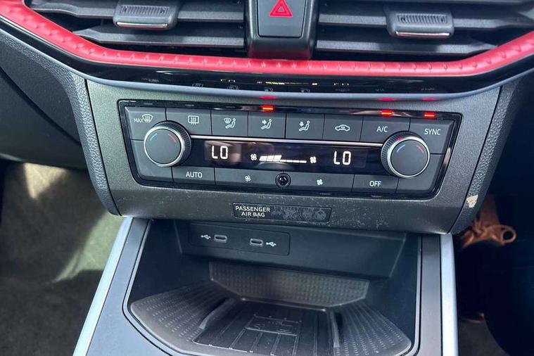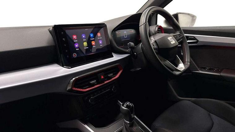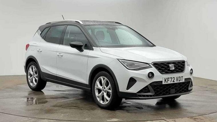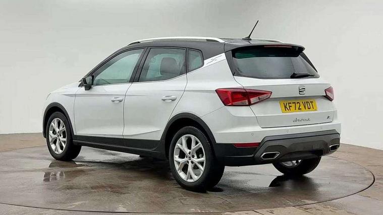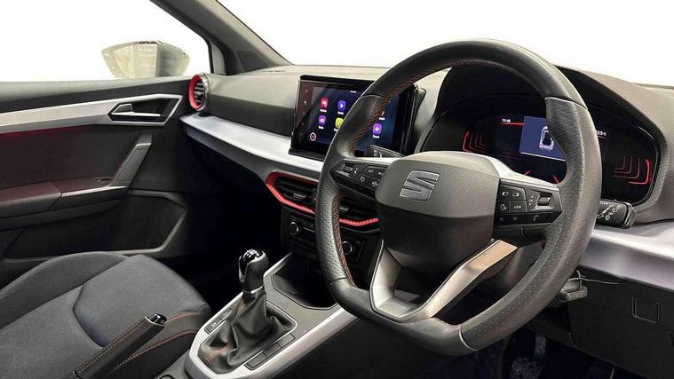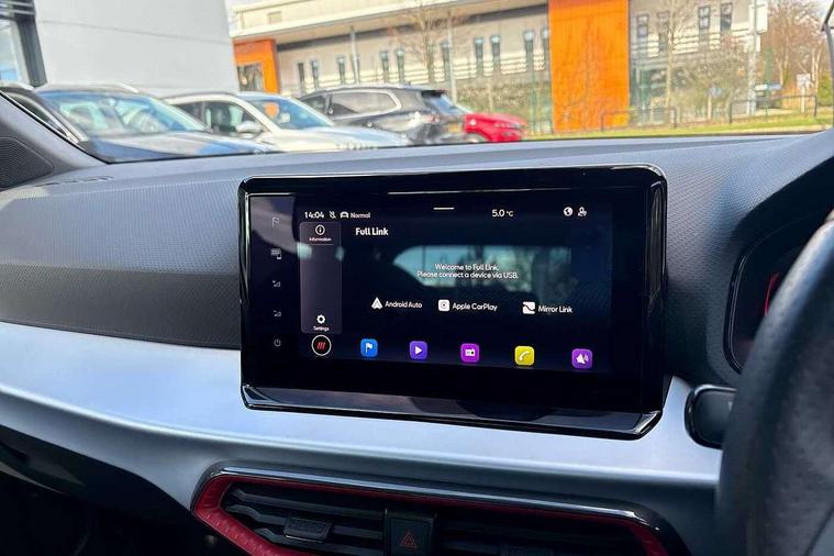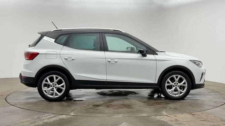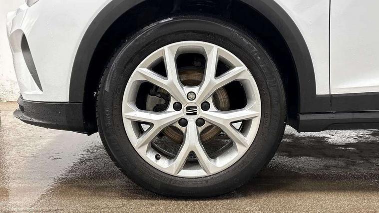 'Lights On' Reminder warning buzzer, 8" Digital cockpit, Digital clock, E-call, Electric speed sensitive power steering, Full Link Smartphone Integration with Mirror Link, Apple Car Play, Google Android Auto with USB Type C cable for Apple and Android compatibility, Lane keeping system, Low fuel warning light, Outside temperature display, Rear parking sensor, RPM counter, Seat connect with safety, service, remote and online, SEAT Drive profile - Four different models normal-sport-eco-individual, steering response, throttle response, Trip computer, Wireless phone charger, 9.2" colour touchscreen with navigation system, voice control and USB port (type c), Bluetooth interface for hands free and audio streaming, DAB digital radio and AM/FM radio, Steering wheel mounted audio controls, Anti theft roof antenna, Auto dimming interior rear view mirror, Automatic activation of hazard warning lights, Body coloured bumpers, Body coloured door handle inserts, Chrome roof rails and window surrounds, Dark tinted rear windows, Electric front/rear windows, Electrically adjustable, heated and folding door mirrors, Front fog lights with cornering function and rear fog light, FULL LED automatic headlights with dynamic headlight range control, coming and leaving home, LED daytime running lights, LED rear tail lights and licence plate lights, Protective side mouldings, Rain sensing wipers, Rear side wing doors, Rear spoiler, Rear window wash/wipe, Roof colour door mirrors, Third brake light, Twin exhaust pipe styling hidden exhaust pipe, Visible VIN plate, Windshield wiper with intermittent control and potentiometer, 2 cupholders, 3 seat bench in 2nd row, 60/40 split folding rear seat, Aircare filter, Black interior roof, Cloth upholstery, Double boot floor, Driver sunvisor with covered mirror + card holder, Dual zone climate control, Front courtesy light with 2x front and 2x rear reading lights, Front sport seats, Gear shift indicator, Height adjustable front seats, Height/reach adjustable steering column, Illuminated boot, Instrument lighting with brightness control, Interior ambient lighting, Interior light in footwell, central console and door panel, ISOFIX points in outer rear seats with top tether anchorage points, Passenger sunvisor with vanity mirror, Perforated flat bottomed leather steering wheel/gear knob/handbrake with red stitching and FR logo, Single front passenger seat, Two front and three rear height adjustable headrests, Interior chrome pack - Arona, 3 point seatbelts on all rear seats, ABS, Active front headrests, Child locks on rear doors, Driver and front passenger airbags with front passenger airbag de activation, front side and curtain airbags, Electronic stability control, Emergency Brake Assist (EBA) and front assist, Front and rear seatbelt reminder, Hill hold control, Multi-Collision braking, Tiredness recognition system, Traction control, Tyre pressure monitoring system, Alarm with back-up horn, Electronic engine immobiliser, Locking wheel bolts, Remote central locking + deadlocks, Tow away protection, Titan black dashboard, 17" Dynamic alloy wheels,