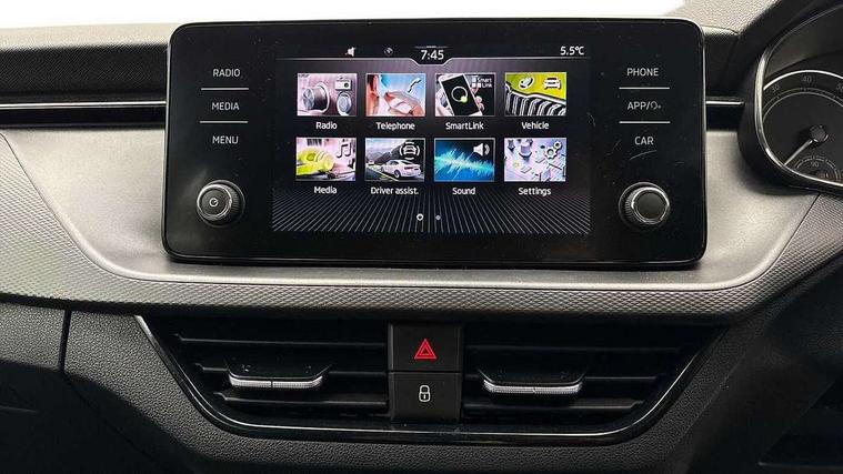 Bluetooth system, E-call, Front assist system, PAS, Service indicator, Speed limiter, Wireless Smartlink for Apple CarPlay (wired for Android Auto), 8 Speakers, Auxiliary input socket, DAB Digital radio, Body colour bumpers, Body colour door mirrors and handles, Chrome grille surround, Dimming rear view mirror with black surround, Electrically adjustable and heated door mirrors, Front and rear electric windows, Headlight range control, Heated rear window, LED rear lights - low functionality, LED third brake light, Light sensors, Rain sensor, Rear fog lights, Rear side wing doors, Rear wiper, 12V Accessory socket in centre console, 3 seat bench in 2nd row, Chrome inner door handles, Cloth upholstery, Front head restraints, Glove compartment with illumination, Ice scraper, Isofix child seat fittings on outer rear seats, ISOFIX on front passenger seat, Manual lumbar support for front seats, Rake/reach adjustable steering wheel, Reading lights, Single front passenger seat, Sun visors with illumination on front passenger, Textile floor mats, Third rear headrest, Top tether for front passenger seat, Umbrella in driver's door, 3x3 point rear seatbelts, Airbags - driver and front passenger, ESP, Front passenger airbag deactivation switch, Front side airbags with curtain airbags, Hill hold control, Manual parking brake, Manual rear child locks, One tone horn, Rear disc brakes, Seatbelt reminder for driver an co-driver, Traction control, Tyre pressure monitor, Anti-theft alarm system with interior monitoring, backup horn, towing protection and remote central locking with SAFE system, Anti-theft wheel bolts, Electronic engine immobilizer,