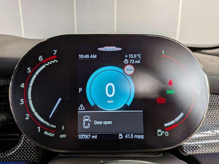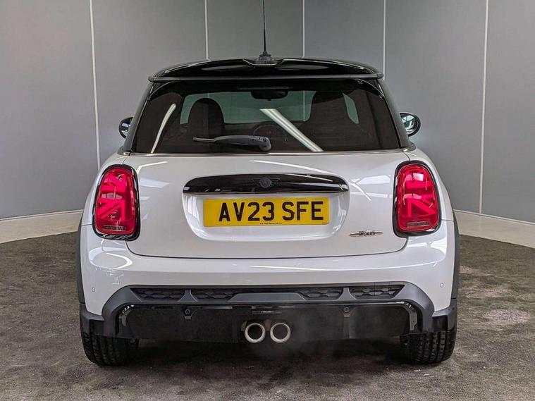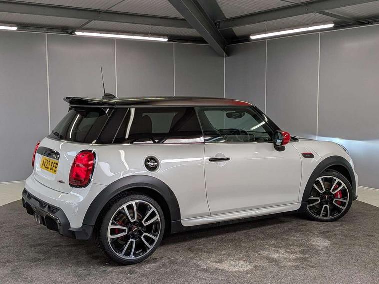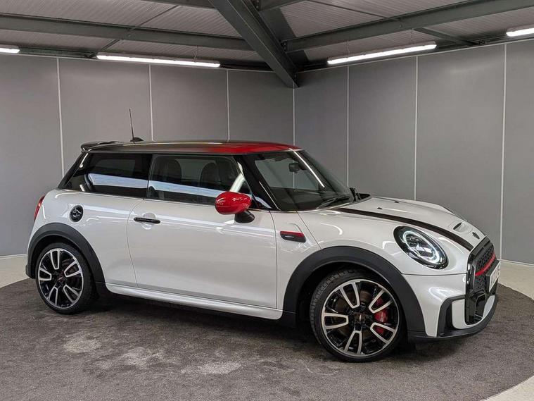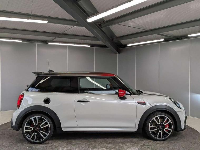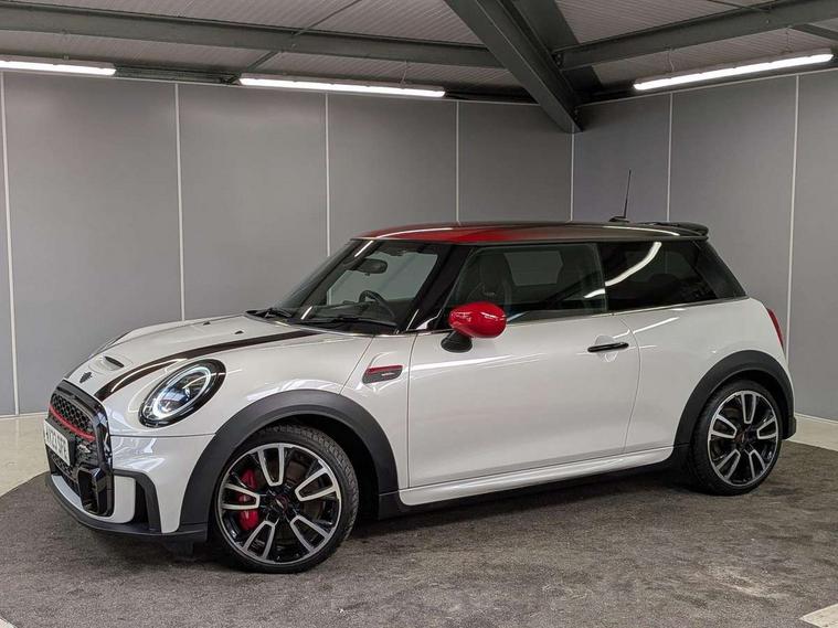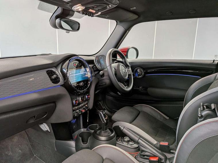 Apple CarPlay, Automatic start/stop function with brake energy recuperation, Compatible mobile phone bluetooth with audio streaming, Digital dashboard display, Electro-mechanical speed dependant steering assistance, Flexible car sharing preparation, Instrument cluster, Mini E-call, MINI TeleServices, On board computer, Service interval indicator, Double Vanos system, Fully variable valve control, High precision injection, Performance Control, Steptronic sport transmission, 4 speakers in front door trims and underneath front seats, 8.8" touchscreen with LED ring, FM tuner and DAB digital radio, 3rd brake light, Automatic headlight activation switch, Bonnet scoop, Dynamic brake lights, Electric front windows, Heated rear window, Heated windscreen washer jets, JCW Aerodynamic kit - Front and rear bumpers with sporty JCW styling and part-painted side sills with MINI John Cooper Works door sill finishers, John Cooper Works logo above an individual grille strut in Chilli Red, John Cooper Works rear spoiler, LED headlight with closed ring and daytime driving lights, Rain sensor window wipers, Rear fog lights, Rear LED lights with union jack design, Rear window wiper, Side scuttle panel with integrated indicator, Side scuttle with MINI John Cooper Works logo in black high-gloss with red border, Sun/heat protection glass, White indicator lenses, 12V Accessory socket in centre console, 2 seat bench in 2nd row, 4 lashing eyes in luggage compartment, 60/40 split folding rear seat, Anthracite headliner including grab handles and clothes hooks, Chrome interior highlights, Cupholders, Front and rear isofix with front passenger airbag deactivation, Front floor mats in velour, Glove compartment, Height and length steering column adjustment, Integrated headrests, adjustable thigh support for seats, Interior lighting with 12 different colours across the dashboard, underneath door bezel with illuminated laser-engraved design on central display, Leatherette gearshift lever and handbrake gaiters, LED reading lights, vanity mirror lights, front foot well light and spotlight on front seats, Mechanical seat adjustment - forward/back & backrest for front seats and driver seat height adjust, Multifunction steering wheel, Passenger seat height adjuster, Rubberised stainless steel pedals, Single front passenger seat, Storage compartments in doors, Storage pocket on back of front seats, Sunvisors with vanity mirrors, Walknappa leather steering wheel with grey seam and John Cooper Works badge on Piano Black lower steering wheel spoke, Driving assistant pack - Mini Hatchback, Piano black exterior pack - JCW, Premium pack - Hatchback JCW, 17" sport brake 4-piston fixed-calliper brakes front, 3 point seatbelts on all four seats, 6 Airbags - front, side, head and seat belt tensioners, Anti-lock braking system (ABS), DSC - Dynamic Stability Control, Front and rear disc brakes, Red brake callipers with John Cooper Works logo, Single tone fanfare horn, Tyre pressure monitoring system, Alarm system with tilt sensor, monitoring doors, bonnet interior and tailgate, Electronic vehicle immobiliser, Start/stop toggle with keyless go, Tool kit,