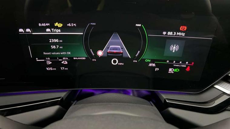 All wheel steering, Audi application store, Audi assistant, Audi connect emergency call and service, Audi connect with Amazon Alexa Integration, Audi digital key, Audi drive select, Audi phone box with wireless charging, Audi virtual cockpit, Automatic start/stop system with coasting functionality, Bluetooth interface, Luggage compartment lid with Electric opening / closing, MMI navigation plus with high resolution 14.5" OLED touchscreen colour display, Power assisted steering, Smartphone interface includes wireless Apple carplay/Android Auto, Voice control system, 3 pin 10 amp domestic charging cable, Compact e-tron charging system, Fuel tank 46L, Hybrid propulsion system, Industrial connector CEE 32A, 230V, long and straight for the e-tron charging system, Mode 3 charging cable for public charging (AC), Quattro with ultra technology, Standard suspension, Type 2 socket for AC charging, Audi sound system impressive sound with 10 loudspeakers including centre speaker and subwoofer, 6-channel amplifier with a total output of 180 watts, DAB Digital radio, USB ports with charging function, Audi Matrix LED technology, Auto dimming rear view mirror, Automatic-dynamic headlight range control, Body colour door mirrors, Body coloured door handles, Dipped beam, main beam, position light, dynamic indicator and cornering light, Door mirrors - electrically adjustable, heated, folding and auto dimming on both sides, Dynamic light scenarios of the coming home/leaving home function when stationary, Electric front/rear windows, Frameless auto dimming interior rear view mirror, Front illuminated door sill trims with aluminium inlay, Headlight cleaning system, LED headlights Plus incl. digital daytime running lights, turning light, all-weather light, motorway light, manouevring light and intersection light, LED rear lights pro incl. brake lights, tail lights, rear number plate lights, reversing lights, continuous light strip, LED third brake light, Rain and light sensors, Rear and side windows with heat insulating glass, Rear boot, Rear side wing doors, Sport exterior inc Radiator grille, air inlets and diffuser in scandium grey as well as inlay in diffuser in selenite silver, Towbar preparation, White rhombus logo projection light in exterior mirrors, Window trim strips in aluminium look, Windscreen with heat insulating and acoustic glazing, 3 seat bench in 2nd row, 4 way electric lumbar support for driver and front passenger, 4 zone deluxe automatic climate control, 40:20:40 split folding rear seat bench with centre armrest and cup holders, Black front and rear floor mats, Centre armrest, front- adjustable angle with four settings, Convenience auxiliary air conditioning, Electrically adjustable front seats, Front head restraints, Heated front seats, i-Size child seat mounting on the front passenger side and outer rear seats, i-Size and top tether on the outer rear seats, Manual steering wheel adjustment, Net partition, Rear headrests, Single front passenger seat, Standard Seats front, Twin leather/artificial leather upholstery, Twin-spoke leather steering wheel with multifunction and shift paddles, Ambient lighting package plus - A6, Drive and Park assistance package - A6, Protective warning assistance package - A6, 3x3 point rear seat belts, Acoustic vehicle alerting system, Black seat belts, Convenience key with safelock, Driver and front passenger airbags, EBD - Electronic brakeforce distribution, Electric rear child safety lock, Electromechanical parking brake, Electronic Stability Control (ESC) including ABS, ASR and EDL, First aid kit with warning triangle and vests, Front passenger airbag deactivation, Seatbelt monitoring, Side airbags front with head airbag system and interaction airbag, Standard 18"steel disc brakes front and rear, Tyre pressure monitoring system, Anti theft alarm, Anti-theft wheel bolts, Immobiliser, Keyless Go, Remote central locking, Accents in the interior in aluminium look, Decorative inlays with aluminium tangent and brass-anthracite, Upper and lower interior elements in leatherette with contrasting stiching, Wraparound interior elements in artificial leather, Tyre repair kit,