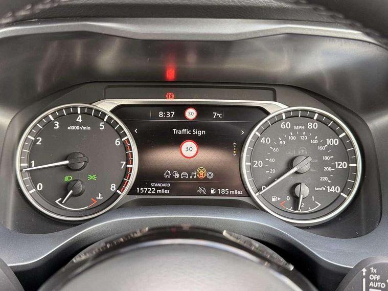 7" High definition full colour TFT screen combimeter, Blind spot intervention, Blind spot warning, Drive assist custom mode, Drive modes (sport, normal, eco), Driver drowsiness and attention warning, Electric speed sensitive power steering, Emergency and breakdown call, Emergency lane keep assist, Emergency Stop Signal (ESS), Engine start/stop button, Event data recorder, Idle stop/start system, Intelligent Cruise control (ICC), Intelligent forward collision warning, Intelligent speed assist, Lane departure warning system, Nissan connect 12.3 inch touchscreen infotainment system, Outside temperature sensor, Rear cross traffic alert, Rear parking sensors, Rear view camera, Reversing detection, Wireless Apple CarPlay and wired Android Auto, Limited slip differential, 2 front USB-C ports, 6 speakers, AM/FM audio system with DAB, Bluetooth audio streaming, Auto rear wiper when reversing, Body colour mirror caps, Body coloured door handles, Bodyside mouldings, Chrome side window finisher, Electric auto folding door mirrors, Electrically adjustable and heated door mirrors with LED turn indicator, Follow me home headlights, High beam assist, Intelligent auto headlights, LED 3rd brake light, LED daytime running lights, LED Headlights, LED rear lights, One touch front and rear electric windows with remote opening and closing, One touch passenger window, Partially body coloured bumpers, Rear roof spoiler, Rear side wing doors, Shark fin antenna, Splash free rain sensing wipers, Three blink turn signal, 3 bench rear seats in 2nd row, 3 rear headrests, 60/40 split folding rear seat bench, Chrome interior door handles, Cloth upholstery, Dark headlining, Dual zone automatic climate control with pollen filter, Front door with bottle holders, Height adjustable front headrests, Leather shift knob, Luggage space lighting, Multifunction steering wheel, Passenger seat back pocket, Rear door bottle holders, Single front passenger seat, TEP steering wheel, Tilt/telescopic adjustable steering wheel, Two rear isofix child seat anchorage points with top tether, White ambient light (Partial area coverage), 3x3 point rear seatbelt pretensioners + load limiters, Autonomous emergency braking, Child locks on rear doors, Curtain and front side, far side airbags, Driver and passenger airbags, Driver, passenger and 2nd row rear seat belt reminder, Electric handbrake with auto hold function, Front seatbelt pretensioners + load limiters, Height adjustable front seatbelts, Hill start assist, intelligent front emergency braking, Rear automatic braking, Tyre pressure monitoring system, Vehicle dynamic control, Engine immobiliser, Intelligent key with walk away lock and approach unlock functions, Remote central door locking with deadlocking, Thatcham alarm, 17" Alloy wheels, Tyre puncture repair kit,