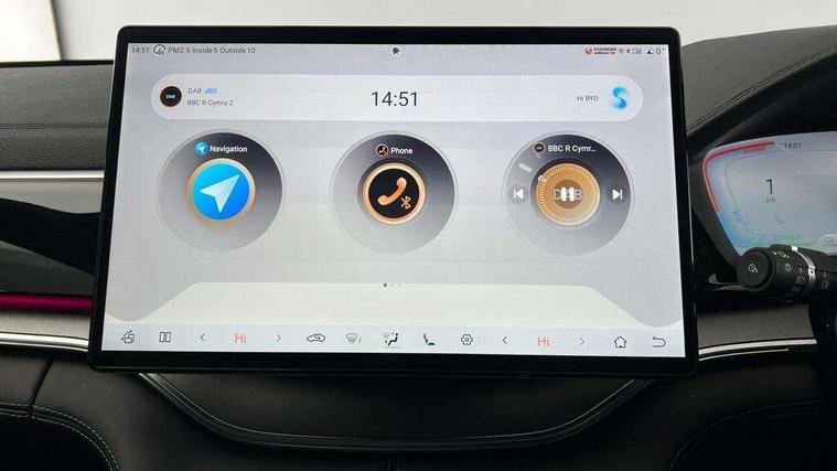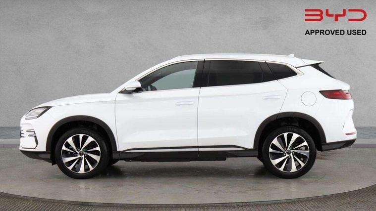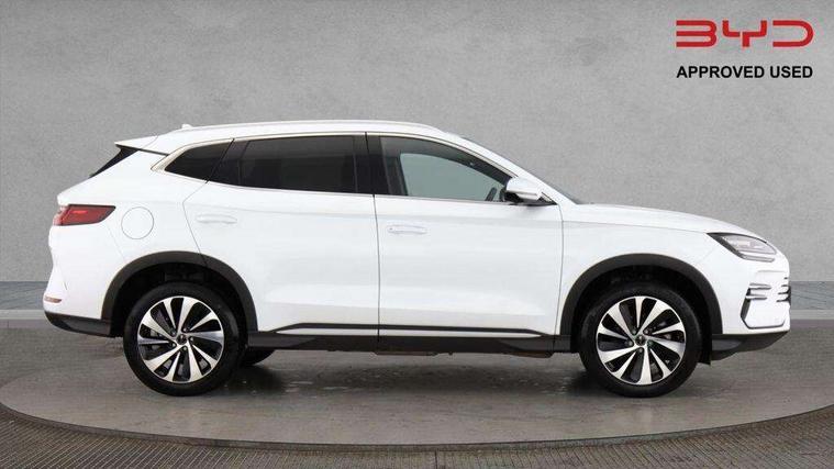 12.3" TFT full LCD instrument panel, 360 camera, Adaptive Cruise Control (ACC) and Intelligent Cruise Control (ICC), Automatic vehicle hold, Blind spot detection, BYD voice control assistant "Hi, BYD", Controller Deceleration Parking (CDP), Drive mode select (Eco, normal, sport, snow), e-Call (emergency call), Electric tailgate release, Emergency Lane Keeping Assist (ELKA), Forward collision warning, Front and rear parking sensors, Front cross traffic alert and front cross traffic brake, Head up Display, Indirect driver fatigue management, Intelligent Speed Limit Control (ISLC), Keyless system entry and start, Lane change assist, Lane Departure Assistant (LDA) and Lane Departure Warning (LDW), Lane departure prevention, PAS, Predictive collision warning, Rear collision warning, Rear cross traffic alert and rear cross traffic brake, Rollover Control System (RMI), Smartphone wireless charging, 2 x 15W, Traffic sign recognition (TSR), Vehicle-to-Load (V2L) function, 11kW on board charger, Mode 3 Type 2 charging cable (3 phase), V2L (Vehicle to load) power strip - Type F, 15.6" Electrically rotatable touchscreen, FM/DAB+ radio, Front USB ports, 1 x 18W Type C, 1 x 60W Type C, Infinity sound system with 10 speakers, Rear USB ports, 2 x 18W Type C, Aluminium roof rails, Auto dimming interior rear view mirror, Auto headlamps (on/off), Dynamic welcome lights, Electric folding and heated door mirrors, Emergency tow hook, Exterior mirror footlights, Follow me home headlights (The headlights turned on in advance and delayed off function), Front windscreen, UV protection, thermal insulation and sound proofing, High beam assist, LED 3rd brake light, LED daytime running lights, LED Headlights, LED taillights, One touch electric front/rear windows with pinch protection, Panoramic sunroof with anti-pinch sensor and electrically adjustable sunshade, Rain sensor windscreen wipers, Rear fog lights, Rear side wing doors, Rear window and rear windscreen with tinted glass, Rear wiper, 12V power outlet, 3 seat bench in 2nd row, 8 way electrically adjustable drivers seat, Adjustable rear headrests, Boot parcel shelf, Driver and passenger sunvisors with illuminated vanity mirrors, Driver seat memory function, Front centre armrest with 2 cupholders, Front LED reading lights, Front passenger seat with 4-way electric adjustment, Front seat footlights, Heat pump, Heated front seats, Heated steering wheel, Integrated headrest in front seats, ISOFIX and i-Size for front passenger and outer rear seats, LED front door lights, Nylon floor mats, PM2.5 air filter, PM2.5 air purification system, Rear air vents, Rear armrest with 2 cupholders, Rear side LED reading lights, Rhythm-reactive multi-colour ambient lighting, Single front passenger seat, Split folding rear seats - 40/60, Vegan leather multifunction steering wheel, Vegan leather upholstery, Ventilated front seats, 3x3 point rear seatbelts, ABS/EBD, Automatic emergency braking system, Brake override system (BOS), Child presence detection, Comfort stop, Door open warning, Driver airbag, Electric parking brake, Force limiting pre-tensioned front seat belts, Front centre airbag, Front passenger airbag, Front passenger airbag deactivation, Front side airbags, Hill descent control, Hill hold control, Hydraulic Brake Assist (HBA), Hydraulic brake boost, Mechanical child safety lock, Rear middle seat force limiting seat belt, Rear seat belt pretensioners, Reflective vest, Side curtain airbags, Traction control system (TCS), Tyre pressure monitoring system (TPMS), Vehicle Dynamics Control System (VDC), Warning triangle, 2 x Smart keys, Anti theft alarm system, Automatic door locking, 19" Bi-colour alloy wheels, Tyre nut covers remover, Tyre repair kit,