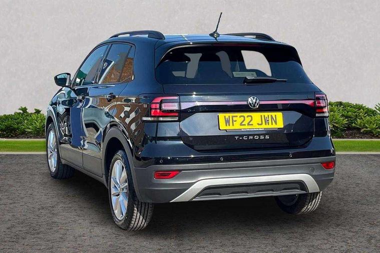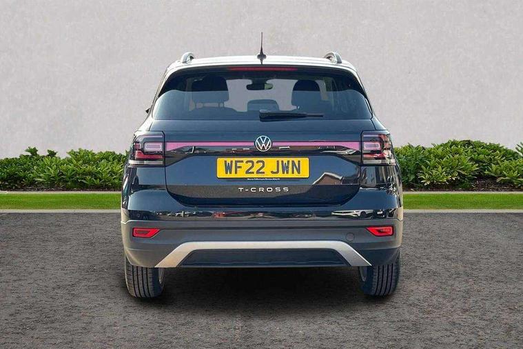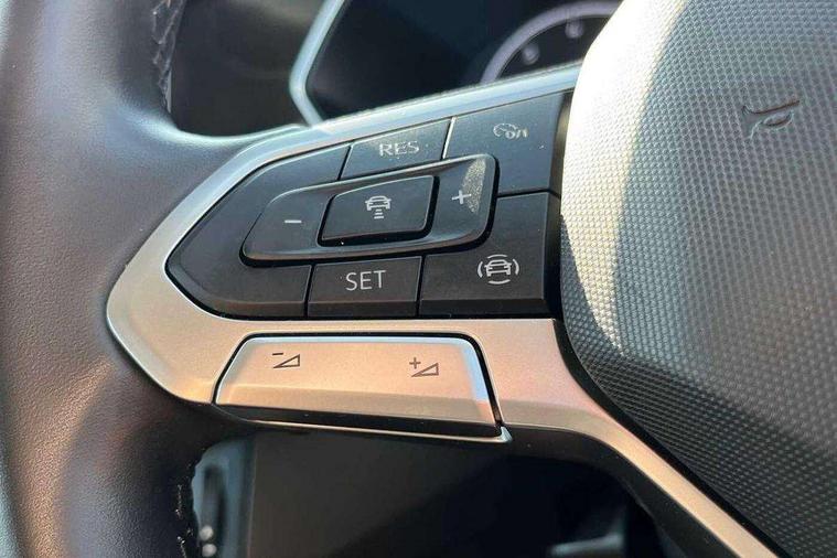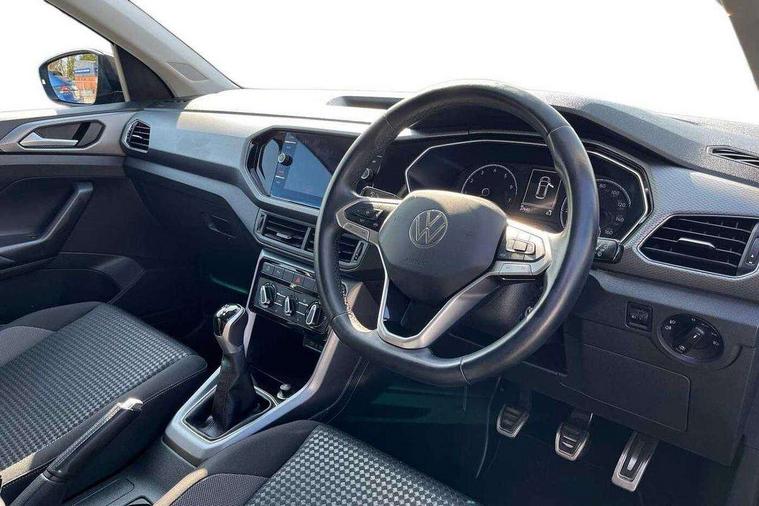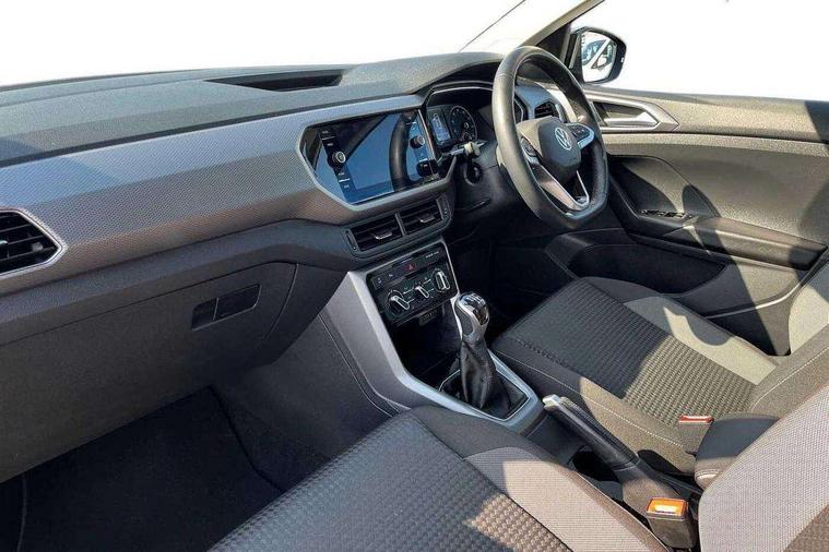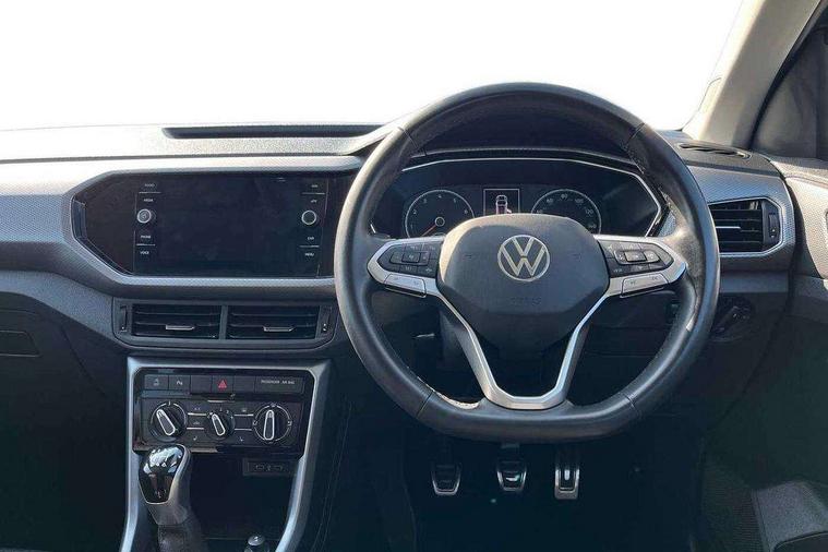 'Lights On' Reminder warning buzzer, Adaptive cruise control including front assist, forward collision warning, autonomous emergency braking, speed limiter, Blind spot monitoring, Bluetooth telephone and audio connection for compatible devices, Car information display, Driver alert system, eCall emergency call system, Lane assist, Low washer fluid warning light, Multifunction computer with visual gear change recommendation for fuel consumption, Operating permit alteration, Power assisted speed sensitive steering, Speedo, rev counter, electronic odometer, trip, service interval display, exterior temperature and fuel gauge, Stop/start system, Warning sound and light for doors and tailgate open, Warning sound and light for front seatbelts unfastened, We Connect Go Dongle, Wireless Car net app connect with Apple CarPlay, combined functionality of Apple CarPlay/Android Auto and MirrorLink, Battery regeneration during braking, Misfuel prevention device, 2x USB connection with USB charging sockets and in rear centre console, DAB Digital radio receiver, Diversity antenna for FM reception, Multi device interface (MDI) with USB connection, Music playback - MP3, WMA and AAC files, Premium USB cable for Apple or Android smartphone compatibility, Simultaneous pairing of 2 compatible mobile devices, Title and cover art display, 3D active badge on B-pillar, Active door sills, Active sill panel trims, Automatic hazard lights activation under emergency braking, Black roof rails, Body colour door handles, Body coloured bumpers, Dusk sensor + automatic driving lights, Electrically foldable, adjustable and heated door mirrors with reverse activated kerb view adjustment on passenger's side, Front and rear electric windows, Front fog lights with static cornering function, Galvanised body, Heated rear window, High level 3rd brake light, Lower door sills and door pillars in black, Radiator grille with high gloss surface and chrome strip, Rear fog light on one side, reversing light on both sides, Rear lights incorporating LED technology, Rear side wing doors, Rear tinted glass 65% approx light absorbing from B pillar backwards, Rear window aerial, Rear windscreen washer and wiper with interval delay, Reflectors in all doors, Tailgate with integrated roof spoiler, Windscreen wipers/ intermittent wipe + 4 position delay, 12V Accessory socket in centre console, 3 rear head restraints and 3 rear three point seat belts with ECE label, 3 seat bench in 2nd row, 60/40 split folding rear seat backrest, Ambient lighting and sourround lighting, Brushed stainless steel pedals, Drawer under drivers seat, Driver and front passenger sunvisor with vanity mirror, Driver's sunvisor with ticket holder, Dust and pollen filter, Front + rear carpet mats, Front and rear reading lights X 2, Front centre armrest with storage compartment, Front seat back storage pockets, Front seats with adj lumbar support, Glovebox, Heating and fresh air system with 4 stage blower, Height/reach adjust steering wheel, Instrument lighting white adjustable panel illumination, Interior light with delay, Isofix child seat preparation for 2 rear child seats, Luggage compartment cover, Luggage compartment lighting, Moveable and foldable Rear bench seat, Single front passenger seat, Storage compartment in drivers and front passengers door, Three spoke multi-function leather trimmed steering wheel and gearknob, Trapeze cloth upholstery, Variable boot floor, Winter pack - T-cross, Anti-lock Braking System (ABS) with Hydraulic Brake Assist (HBA), Automatic post collision braking system, Driver and front passenger safety-optimised head restraints, Drivers and Front Passengers airbags with front passengers airbag deactivation switch, ESC with EDL, ASR, EDTC and trailer stabilisation function, Extended and proactive pedestrian protection, Front and rear curtain airbags, Front seat side impact airbags, Height adjustable 3 point automatic front seatbelts with pretensioners, Hill start assist, Pre crash preventive occupant protection, Rear door child safety locks, Rigid safety cell with front and rear crumple zones, Single torn horn, Tyre pressure loss indicator, Volkswagen roadside assistance, Alarm with interior protection and deactivation via infotainment system, Child security locks in rear doors, Electronic engine immobiliser, Remote tailgate unlocking using key fob, Decorative strips in doors in matt silver/ center console, 17" Clayton alloy wheels + anti theft wheel bolts, Breakdown kit,