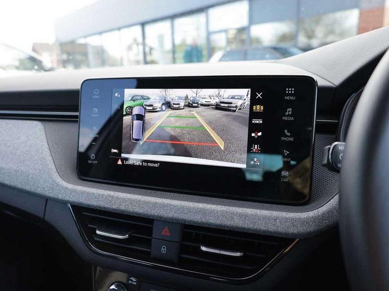 Advanced driver attention and drowsiness monitor, Bluetooth system, E-call, Front assist system, PAS, Rear parking sensors, Rear view camera, Service indicator, Speed limiter, Traffic sign recognition, Virtual cockpit with 10.25" display, Voice control system, Wireless smartlink, 4 USB C ports, 8 Speakers, 9.2" Skoda navigation display, DAB Digital radio, Auto dimming rear view mirror, Automatic headlight control with coming home and leaving home feature, Black roof rails, Body colour bumpers, Body colour door mirrors and handles, Chrome grille surround, Front and rear electric windows, Full LED headlights, Heated rear window, LED brake lights, LED daytime running lights, LED front turning lights, LED high beam, LED low beam, LED third brake light, Rear LED fog light, Rear side wing doors, Rear wiper, Ticket holder inside windscreen, 12V socket in luggage compartment, 3 seat bench in 2nd row, Black hotstamping, Cargo elements, Chrome inner door handles, Driver and passenger sun visors with vanity mirror, Dual zone climate control, Front and rear roof lights, Front centre armrest, Front head restraints, Glove compartment with illumination, Height adjustable driver seat, Height adjustable front passenger seat, Ice scraper, Inner circulation control with pollen filter, ISOFIX on front passenger seat, Isofix preparation for back seats, Krepp recycled decor inserts, Leather gearknob and handbrake lever, Loft cloth upholstery, Manual lumbar support for front seats, Net package and top tether hooks in boot space, Net under rear shelf, Overhead glasses storage compartment, Pocket on the back of both front seats include mobile phone pockets, Rake/reach adjustable steering wheel, Reading lights, Satin black door inserts, Single front passenger seat, Textile floor mats, Third rear headrest, Top tether for front passenger seat, Umbrella in driver's door, 3x3 point rear seatbelts, Airbags - driver and front passenger, Disc brakes, ESP, Extended and predictive pedestrian/cyclist protection, Front passenger airbag deactivation switch, Front side airbags with curtain airbags, Hill hold control, Manual leather parking brake, Manual rear child locks, One tone horn, Seatbelt reminder for driver an co-driver, Traction control, Tyre pressure monitor, Anti-theft alarm system with interior monitoring, backup horn, towing protection and remote central locking with SAFE system, Anti-theft wheel bolts, Electronic engine immobilizer,