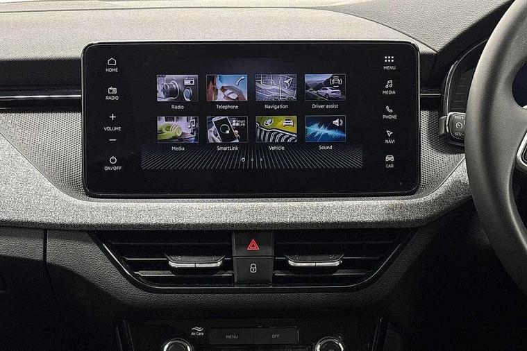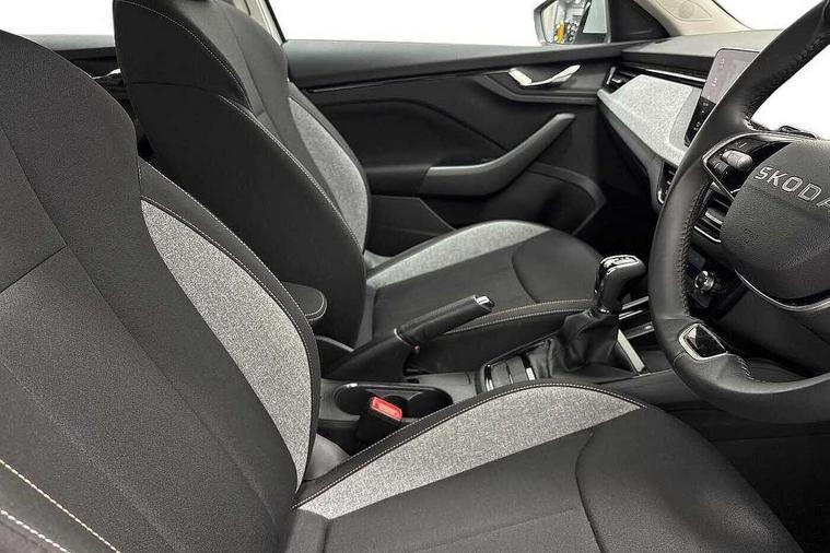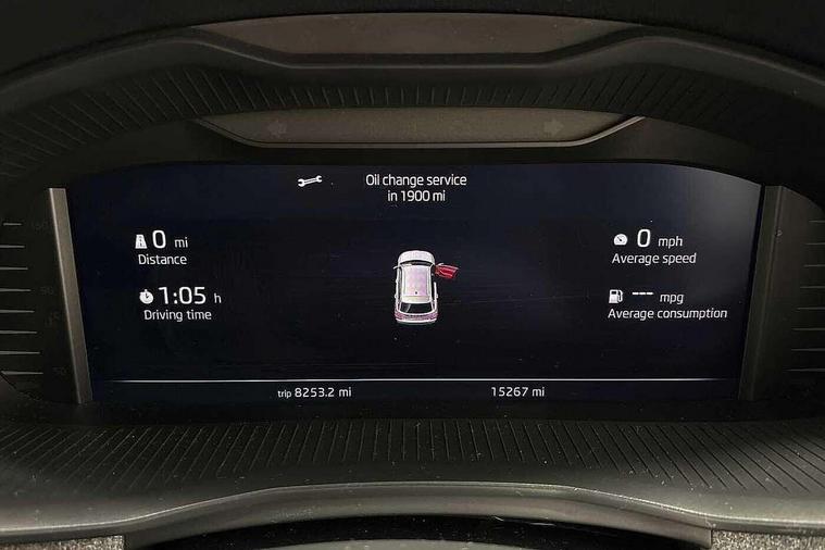 Advanced driver attention and drowsiness monitor, Bluetooth system, E-call, Front assist system, PAS, Rear parking sensors, Rear view camera, Service indicator, Speed limiter, Traffic sign recognition, Virtual cockpit with 10.25" display, Voice control system, Wireless smartlink, 4 USB C ports, 8 Speakers, 9.2" Skoda navigation display, DAB Digital radio, Auto dimming rear view mirror, Automatic headlight control with coming home and leaving home feature, Black roof rails, Body colour bumpers, Body colour door mirrors and handles, Chrome grille surround, Front and rear electric windows, Full LED headlights, Heated rear window, LED brake lights, LED daytime running lights, LED front turning lights, LED high beam, LED low beam, LED third brake light, Rear LED fog light, Rear side wing doors, Rear wiper, Ticket holder inside windscreen, 12V socket in luggage compartment, 3 seat bench in 2nd row, Black hotstamping, Cargo elements, Chrome inner door handles, Driver and passenger sun visors with vanity mirror, Dual zone climate control, Front and rear roof lights, Front centre armrest, Front head restraints, Glove compartment with illumination, Height adjustable driver seat, Height adjustable front passenger seat, Ice scraper, Inner circulation control with pollen filter, ISOFIX on front passenger seat, Isofix preparation for back seats, Krepp recycled decor inserts, Leather gearknob and handbrake lever, Loft cloth upholstery, Manual lumbar support for front seats, Net package and top tether hooks in boot space, Net under rear shelf, Overhead glasses storage compartment, Pocket on the back of both front seats include mobile phone pockets, Rake/reach adjustable steering wheel, Reading lights, Satin black door inserts, Single front passenger seat, Textile floor mats, Third rear headrest, Top tether for front passenger seat, Umbrella in driver's door, 3x3 point rear seatbelts, Airbags - driver and front passenger, Disc brakes, ESP, Extended and predictive pedestrian/cyclist protection, Front passenger airbag deactivation switch, Front side airbags with curtain airbags, Hill hold control, Manual leather parking brake, Manual rear child locks, One tone horn, Seatbelt reminder for driver an co-driver, Traction control, Tyre pressure monitor, Anti-theft alarm system with interior monitoring, backup horn, towing protection and remote central locking with SAFE system, Anti-theft wheel bolts, Electronic engine immobilizer,