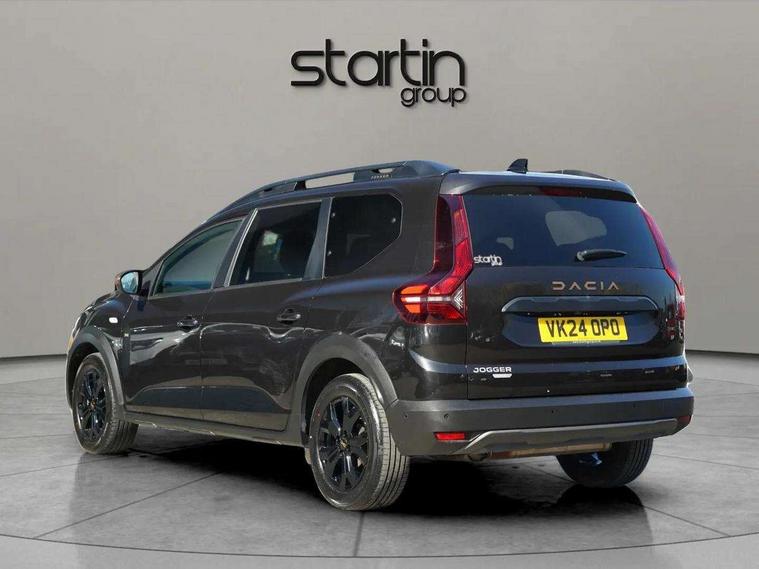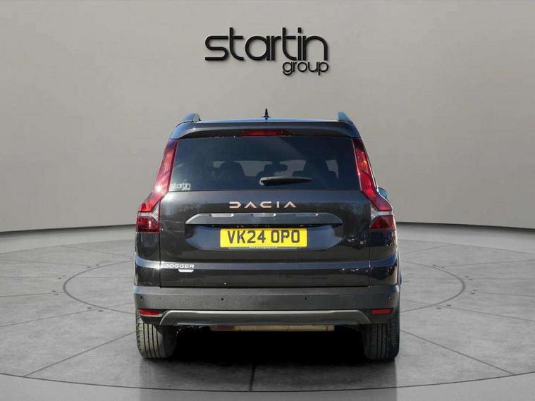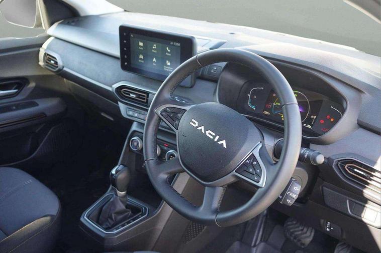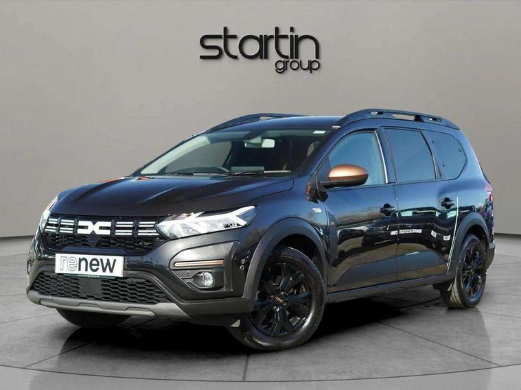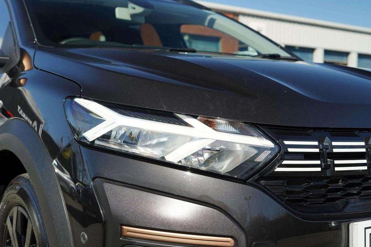 3.5" TFT instrument panel with on-board computer, 7" Color dedicated cluster, Blind spot warning, Check control system, Cruise control and speed limiter, e-Call (emergency call), Eco mode, Electric power assisted steering, Extended grip switch, Exterior temperature display, Front parking sensors, One touch indicators, Rear parking sensors, Rev counter, Reversing camera, Service interval indicator, Stop/start system, Voice control for telephone and radio, Exhaust particle filter, 8" MediaNav with DAB Radio, WIFI Smartphone replication, Bluetooth, 6 speakers with Apple Carplay/Android Auto and Extra map, USB connection for data transfer and charging, USB socket, 3 speed windscreen wipers, Auto lighting, Automatic wipers, Black longitudinal roof bars, Body coloured door handles, Body coloured front and rear bumpers, Chrome radiator grille, Copper brown "Stepway" marking on roof bar, Copper brown deco part on fog lamp area, Copper brown door mirrors, Dark glass, Door sills in topographic pattern, Drivers one touch electric windows, Electric headlight adjustment, Electrically adjustable door mirrors, Front fog lights, Front LED Indicator lights, Headlights with LED low beam illumination, Heated door mirrors, Heated rear window, High level third rear brake light, Initial anti-corrosion treatment, Lateral sticker with topographic pattern, LED automatic daytime running lights, Modular roof bars, Rear electric windows, Rear side wing doors, Rear wash/wipe, Shiny black shark antenna, Snorkel sticker with topographic pattern, Towbar preparation, Transversal emblem and white highlights on front air vent grid, Y-shaped LED lighting signature, 1/3 to 2/3 split folding 2nd row seats, 12V socket in front, 12V socket in rear of vehicle, 2 independently folding and removable 3rd row seats, 2x Rear coat hooks, 3 height adjustable rear headrests, 3 load hooks, 3 seat bench in 2nd row, 4 lashing rings, Automatic air conditioning, Boot light, Copper Brown animation on air vents, Copper brown doors deco parts, Driver and passenger vanity mirror with cover, Elastic straps, Fabric upholstery, Fixed smartphone holder on dashboard, Front and rear rubber mats with topographic pattern, Glovebox, Heated front seats, Height adjustable drivers seat with armrest, Height adjustable front headrests, Height and depth manually adjustable steering wheel, High central armrest with console storage, Isofix points for child seats in both outer rear seats, Lidded storage bin within the centre console, Micro-cloud grey fabric on dashboard, Multifunction steering wheel, Rear ceiling light, Rear door pockets, Satin chrome air vents, Satin chrome interior door handles, Single front passenger seat, Sliding tray tables, Soft feel steering wheel, Steering wheel controls, Timed interior light, Under floor storage in luggage area, 3x3 point rear seatbelts, Anti-lock braking system (ABS), Automatic Emergency Braking System (AEBS), Child locks on rear doors, Door open visual and audible warning, Driver and front passenger airbags, Driver and passenger seatbelt not fastened warning, Driver and passenger side airbags, Electronic parking brake, Electronic Stability Control (ESC), Electronic Stability Programme (ESP), Emergency Brake Assist (EBA), Front passenger airbag deactivation, Front seatbelt pretensioners, Height adjustable front seatbelts, Hill Start Assist (HSA), Side airbags (thorax and curtains - front/rear), Tyre pressure monitor, Alarm, Automatic central locking, Engine immobiliser, Keyless entry, Remote central locking, Decopart on instrument panel and door with textile, 16" Black alloy wheels with copper brown dacia logo, Tyre inflation kit,