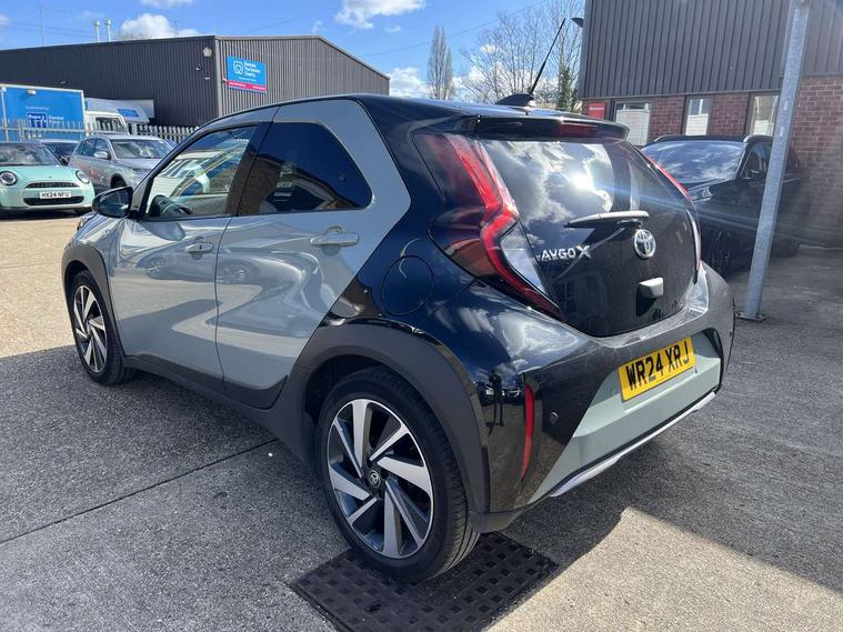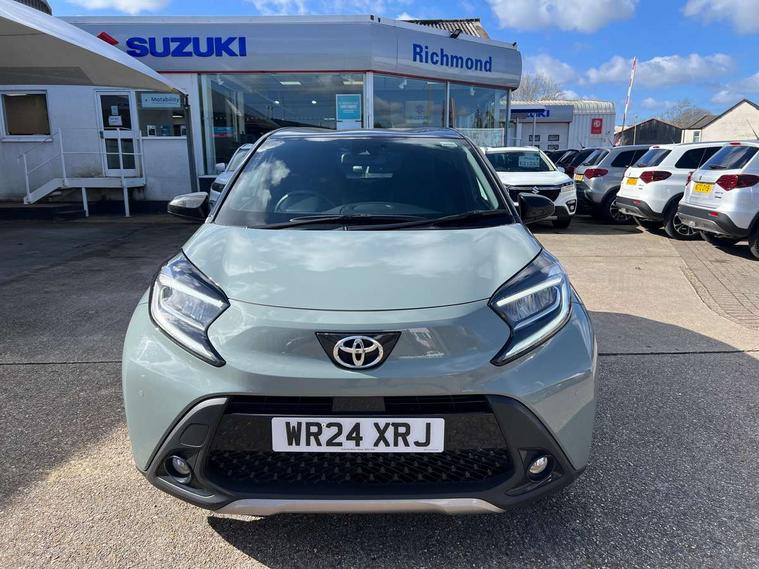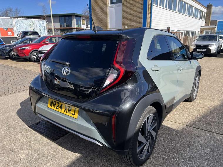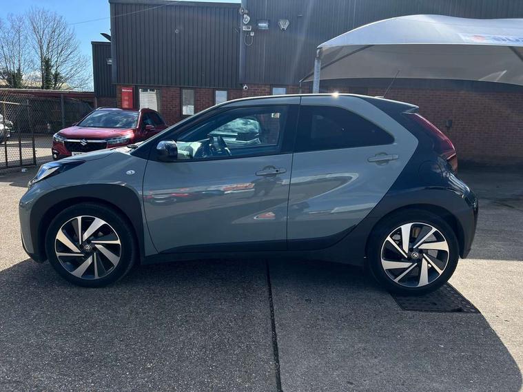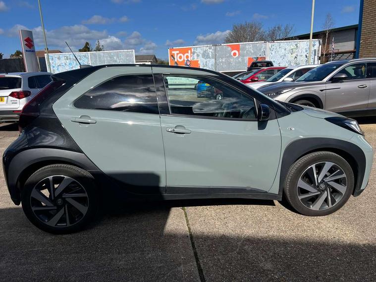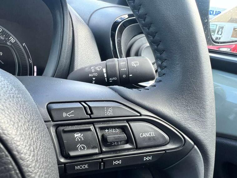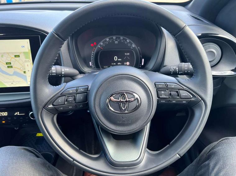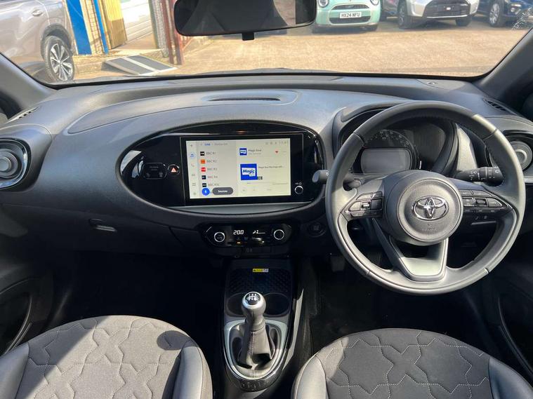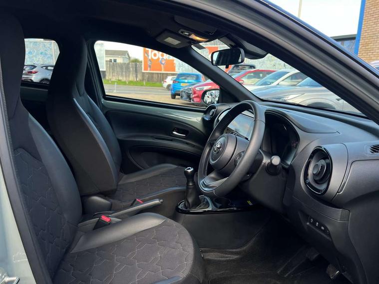 4.2" TFT colour screen, Adjustable speed limiter, Analogue speedometer, Bluetooth connectivity, Digital tachograph, Driver attention alert system, eCall emergency call system, Electric power steering, Front and rear parking sensors with auto brake, Intersection turn assist, Key reminder warning, Noise reduction kit, Pre collision system with emergency steering assist, Remote boot door release on key, Reversing camera with static guide lines, Smart entry and push button start, Smart phone integration with Apple car play/Android Auto, Speed limit display, Start and stop, Wireless charger, Vehicle Stability Control (VSC), 10.5" HD multimedia display touch screen with Toyota smart connect, 4 speakers, DAB digital audio broadcast, USB connector, Auto headlights, Auto wipers, Automatic headlights cut-off, Automatic high beam On/Off switch, Bicycle towing hook, Black contrast roof, Black fog light surrounds, Black side protection mouldings, Black wheel arch mouldings, Body colour door handles, Body coloured front bumper, Boot door scuff plate, Eclipse black rear bumper, Electric heated door mirrors, Follow me home headlights, Front and rear underruns in silver, Front fog lights, Front power windows, Gloss black door mirrors, Gloss black upper front grille, Headlight cut-off reminder, LED daytime running lights guide, LED front light guide, LED High mounted stop lamp, LED projector headlights, Manual day/night rear view mirror, Manual headlight levelling, Pagoda roof, Power adjustable door mirrors, Power back door, Privacy glass, Rain sensor, Rear combination lights LED bulb type, Rear side wing doors, Rear windscreen defogger, Rear windscreen wiper, Remote hazard lights system, Short antenna, Variable intermittent windscreen wipers, 12v power outlet - front, 2 seat bench in 2nd row, 3 spoke leather steering wheel, 50/50 split folding rear seat, Adhesive roof headlining, Adjustable speed limiter switch on steering wheel, Audio and telephone switches on steering wheel, Auto air conditioning, Black roof lining, Body colour satin anodised insert on steering wheel, Boot light, Centre room light, Chrome interior door handles, Chrome surround on air conditioning buttons, Clean air filter, Console box storage, Floor mats, Front and rear cup holders, Front head rest deco art, Front head restraints, Height adjustable driver seat, Intelligent adaptive cruise control switch on steering wheel, ISOFIX child restraint system on rear seats, Lane departure alert switch on steering wheel, Leather gearshift knob, Light blue ambient lighting in centre console, Manual tilt steering wheel, Manually reclining and sliding driver seat, Manually reclining and sliding front passenger seat, Multimedia switches on steering wheel, Partial synthetic leather upholstery, Pollen filter, Rear door pockets, Rear head restraints, Satin silver insert on gear shift knob, Single compartment glovebox with lights, Single front passenger seat, Soft tonneau cover, Sun visors with mirror on driver and passenger side, Voice recognition switch on steering wheel, Toyota safety sense pack - Aygo X, Anti lock braking system + Electronic brake force distribution, Child safety door lock, Emergency brake light signal (EBS), Hill start assist control (HAC), Passenger airbag on/off switch, Seat belt reminder for front and rear seats, Supplement restraints system (SRS) - 6 airbags, Traction control, Tyre pressure warning system, Immobiliser, Remote power door locks, Black wheel centre caps, Tyre repair kit,