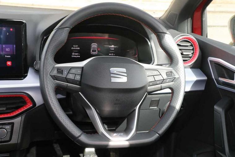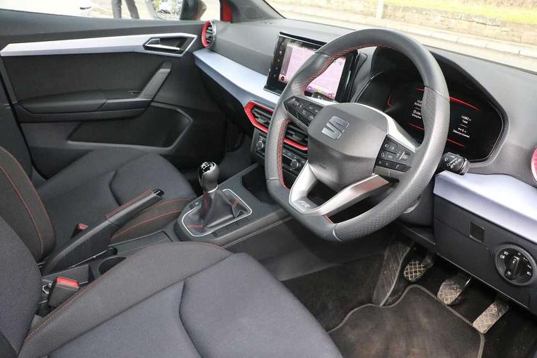 'Lights On' Reminder warning buzzer, 8" Digital cockpit, 9.2" touchscreen navigation system with type C USB socket, Voice control and DAB/AM/FM radio, Auto start and stop system, Bluetooth audio streaming with handsfree system, Digital clock, E-call, Full link smartphone integration with mirror link, wireless apple carplay, Google android auto + USB Type C cable for apple and android devices, Lane assist, Low fuel warning light, Outside temperature gauge, Power Steering, Seat connect with safety, service, remote and online, SEAT drive profiles and ECO function, SEAT logo boot release, Speed limiter, Trip computer, Sports suspension, Auxiliary input socket, Radio/MP3 player, SD card slot, Steering wheel mounted controls, Anti theft roof antenna, Auto dimming rear view mirror, Automatic rain sensing wipers, Black door mirrors, Body colour bumpers, Body colour door handles, Brilliant black window surrounds, Dark tinted rear windows, Electric adjustable/heated/folding door mirrors, Electric front windows, Electric headlight adjustment, Electric rear windows, Front/rear fog lights, FULL LED automatic headlights with dynamic headlight range control, coming and leaving home, LED daytime running lights, LED tail lights, Rear roof spoiler with FR twin exhausts, Rear side wing doors, Rear wiper, Third brake light, 3 seat bench in 2nd row, 60/40 split folding rear seat, Ambient interior lighting, Chrome detailing and black headlining, Cloth upholstery, Dual zone climate control with combination filter, Front courtesy lights, Front cupholders x 2, Front reading lights, Gear shift indicator, Glovebox, Height adjustable front and rear headrests (five), Height adjustable front seats, Height/reach adjust steering wheel, Illuminated air vent surrounds, Illuminated boot, Instrument lighting with brightness control, Isofix, Leather multifunction flat bottomed sports steering wheel, Passenger sunvisor, Single front passenger seat, Sports seats, Sunvisors with mirror and driver side card holder, 3 point seatbelts on all 3 rear seats, ABS, Active front headrests, Child locks on rear doors, Electronic stability control, Energy recovery system, Front assist forward collision warning and autonomous emergency braking, Front driver and passenger side airbags with curtain airbag and front passenger airbag deactivation, Hill hold control, Multi-Collision braking, Seat belt reminder for front and rear seats, Tiredness recognition system, Tyre pressure monitoring system, Electronic engine immobiliser, Locking wheel bolts, Perimeter alarm and interior monitoring with backup horn and tow away protection, Remote central locking + deadlocks, 17" Alloy wheels in Brilliant silver,