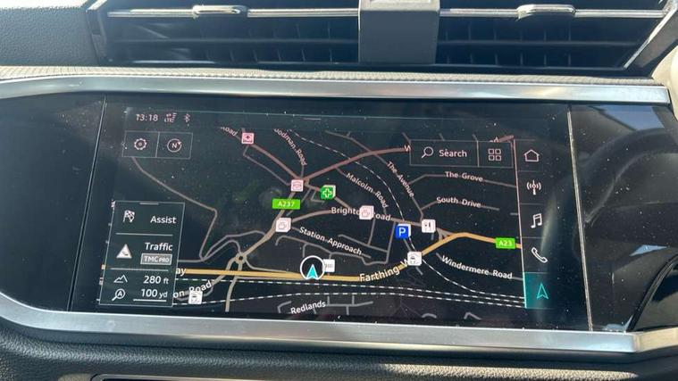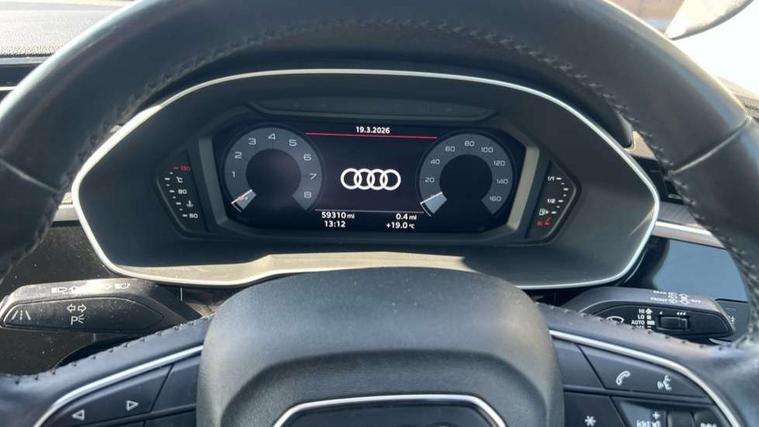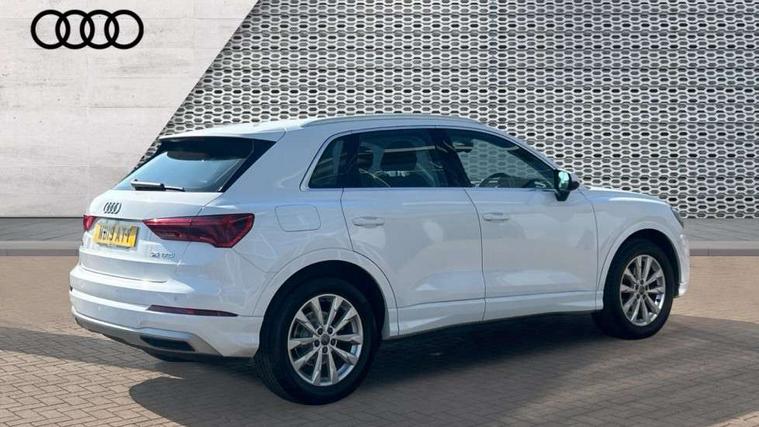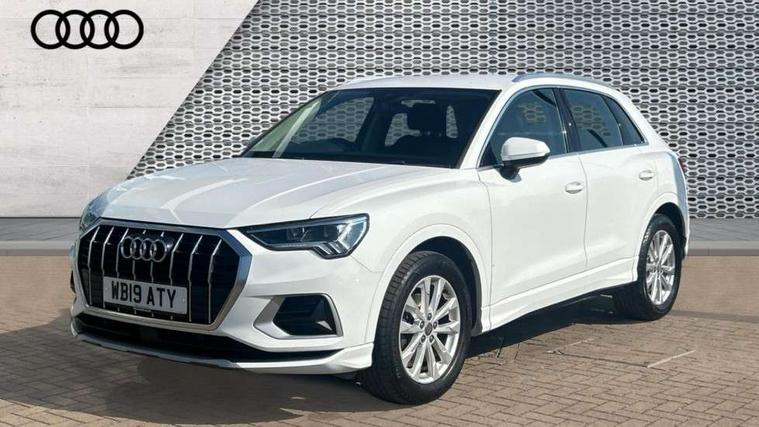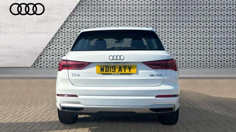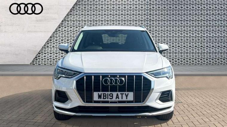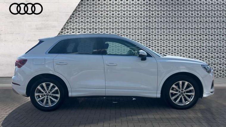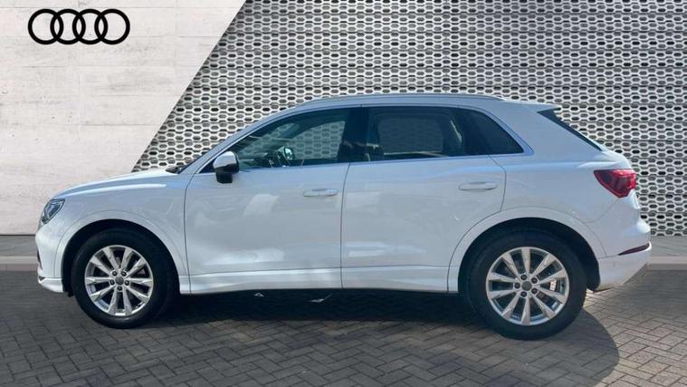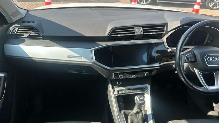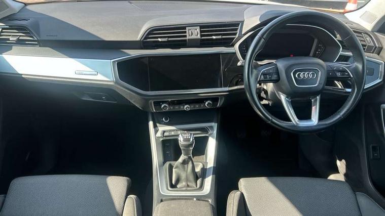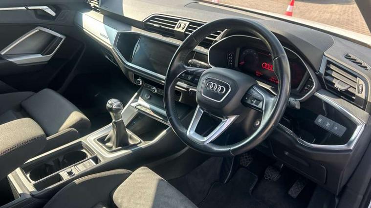 Audi connect safety and service (e-call), Audi drive select, Audi lane departure warning, Audi side assist, Audi smartphone interface, Audi Virtual Cockpit - 10.25" display, Bluetooth interface, Camera based traffic sign recognition, Cruise control + speed limiter, MMI navigation plus with MMI touch, Power opening/closing tailgate, Progressive steering, Rear parking sensors, Service interval indicator, Stop/start system, Voice control system, Standard suspension, 1 x USB type C and 1 USB type A charging points, 6 speakers, DAB digital radio module, Acoustic windscreen, Aluminium roof rails, Aluminium window trim, Auto dimming rear view mirror, Body coloured bumpers, Electrically adjustable and heated door mirrors with integrated LED side indicators, Front and rear electric windows, Front fog lights, Front side air inlets in matt selenite silver, Front spoiler in matt selenite silver, Grille vertical bars in aluminium silver/Matt, High gloss black finish B and C pillars, LED headlights with LED daytime running lights and dynamic rear indicator, LED rear lights, Rain and light sensors, Rear diffuser strip in selenite silver, Titanium black radiator grille, 12V socket in rear centre console, 40:20:40 split folding rear bench seat, Adjustable rear seat bench/backrest, Aluminium door sill trims, Dual zone climate control, Front and rear headrests, Front and rear roof module including reading lights, Front and rear velour floor mats, Front centre armrest with storage compartment and angle adjustment, Glove compartment lighting, Height and reach adjustable steering wheel, ISOFIX child seat mounting and Top Tether with front passenger airbag deactivation, Luggage compartment light, Lunar silver cloth headlining, Manual front seats with height adjustment, Stainless steel luggage compartment sill finisher, Non smoking pack - Q3, 3x3 point rear seatbelts, 6 airbags - Driver, front passenger, curtain and side windows, Electrically operated child locks on rear doors, Electromechanical parking brake, Electronic stabilisation control including ABS, ASR and EDL, Hill descent control, Hill hold assist, Pre sense basic, Seatbelt monitoring, Tyre pressure warning, Warning triangle and first aid kit, Anti theft alarm, Anti theft wheel bolts, Audi pre-sense front with pedestrain and cyclist recognition, Remote central locking, MMI touch colour display in gloss black with aluminium surround,