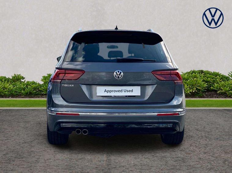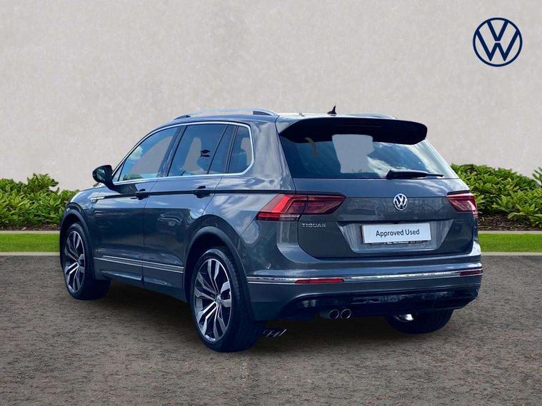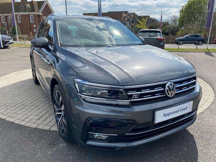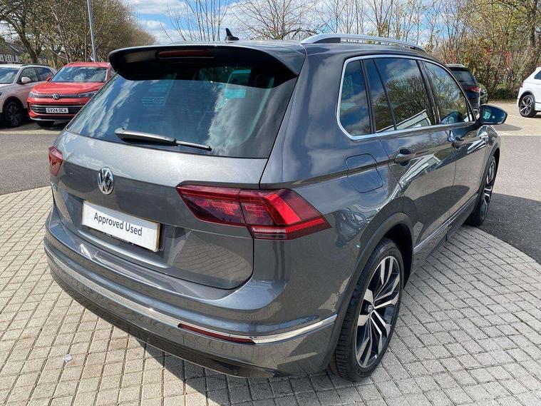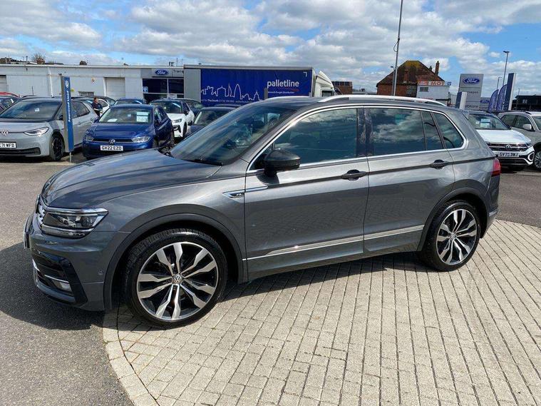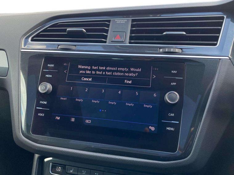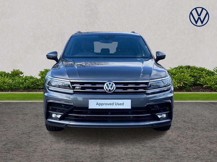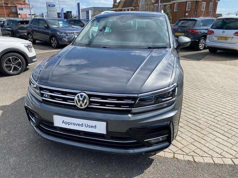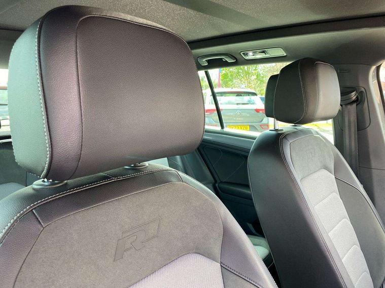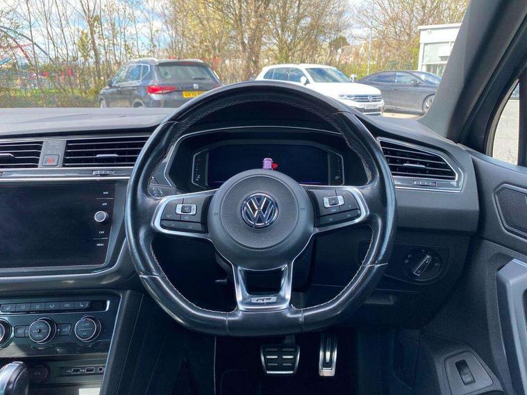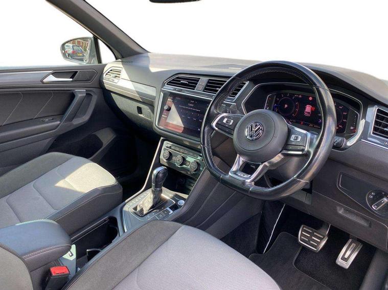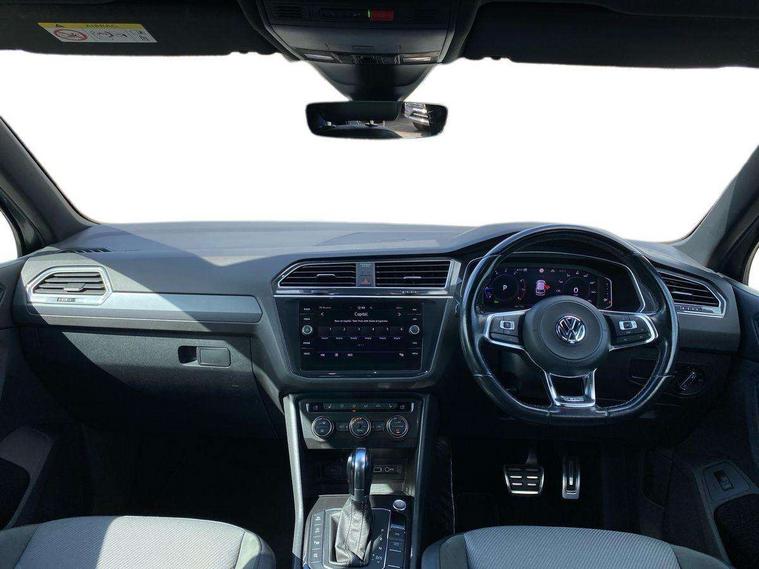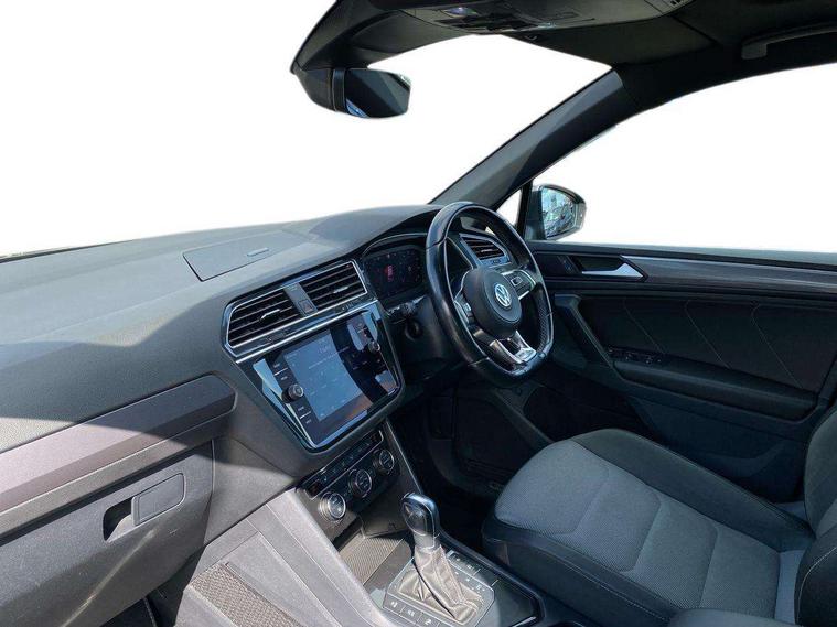 Active information display, Adaptive cruise control, App-Connect, Bluetooth phone integration system, Distance control assist, Driver profile selection, Fatigue detection system, Front assist, radar sensor controlled distance monitor, city emergency braking + predictive pedestrian protection, Instrument cluster, Lane assist, Low washer fluid warning light, Multifunction colour display, Outside temperature display, Progressive power assisted steering, Service interval indicator, Speed limiter, Warning lights, XDS electronic differential lock, 2x USB sockets in front, DAB Digital radio, MP3 compatible single CD player, SD card slot, 3D effect LED rear lights, Auto dimming interior mirror, Automatic activation of hazard warning lights, Body colour door handles, Body colour door mirrors, Body colour rear spoiler, Body colour side skirt, Body coloured bumpers, Chrome side window surrounds, Chrome trimmed radiator grille, Coming/leaving home lighting function, Dusk sensor + auto driving lights, Electric folding door mirrors, Electric heated + adjustable door mirrors, Electric panoramic sunroof with sunblind, Front and rear electric windows, Heated rear window, LED headlights with dynamic light assist daytime running lights and cornering front fog lights, LED rear lights, Piano black rear diffuser, R Line body kit, R Line side sills, Rain sensor windscreen wipers, Rear windscreen washer and wiper with interval delay, Side skirts and rear bumper with chrome insert, Silver roof rails, Silver under body guard, Tinted windows (B pillar backwards), Windscreen wipers/ intermittent wipe + 4 position delay, 12V Accessory socket in centre console, 3 rear headrests, 3 zone climate control, 4 load lashing points, 40:20:40 split folding rear seats, Bag hook in luggage compartment, Black headlining, Driver + front passenger lumbar support, Foldable passenger seatback, Front + rear carpet mats, Front centre armrest with 12v socket, Front centre armrest with storage + rear 2 air vents + cupholders, Front seatback folding tables, Height/reach adjust steering wheel, Illuminated driver/passenger vanity mirrors, Illuminated scuff plates, Instrument lighting white adjustable panel illumination, Interior light with delay, Isofix Preparation 2 Rear child seats, Leather gear knob, Leather multifunction steering wheel with tiptronic control, Load through provision with 2 cupholders when folded, Lockable cooled glovebox, Luggage compartment lighting, Luggage compartment side storage, Map pockets on front seats, Passenger seat height adjuster, Rear cupholders, Removable luggage cover, Sliding/reclining rear seats, Stainless steel pedals, Storage compartment in driver's door, Storage compartment in passenger's door, Storage compartment in rear doors, Storage tray on dashboard, Sunglasses storage, Unique R Line door sill protectors, Variable boot floor, Ambient lighting pack - Tiguan, 3 rear 3 point seatbelts, ABS+EBD+Brake assist, Active bonnet, Active pedestrian safety system, Curtain airbags, Driver/Front Passenger airbags, Driver/Passenger whiplash optimised head restraints, Drivers knee airbag, DTC - Drag torque control, Electronic parking brake with auto hold, ESP with EDL + ASR, First aid kit, Front and rear brake disc, Front assist including city emergency braking, Front side airbags, Front ventilated brake discs, Head airbag system, Height adjustable front 3 point seatbelts + pretensioners, Hill hold control, Passenger airbag deactivate switch, Passenger knee airbag, Pre crash system, Rear side airbags, Seatbelt warning lamp and buzzer, Two tone horn, Warning triangle, Alarm with interior protection, Electronic engine immobiliser, Remote central locking with 2 remote folding keys, Aluminium decorative inserts, Chrome door trim inserts, 20" Suzuka alloy wheels + anti theft wheel bolts, Steel space saver spare wheel,