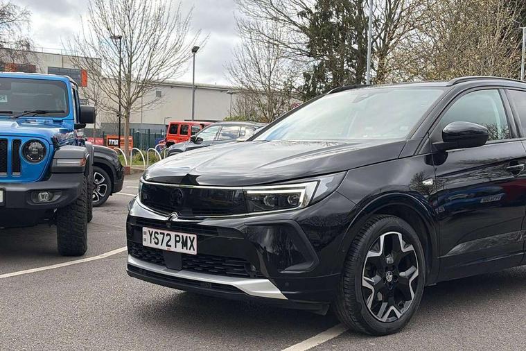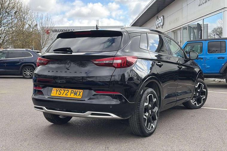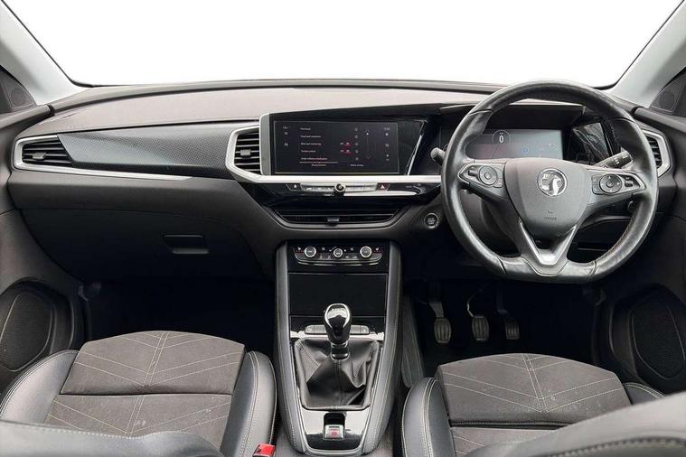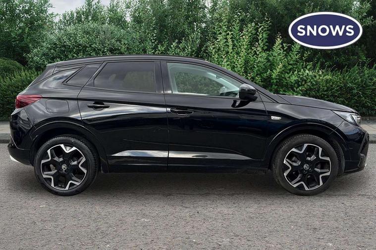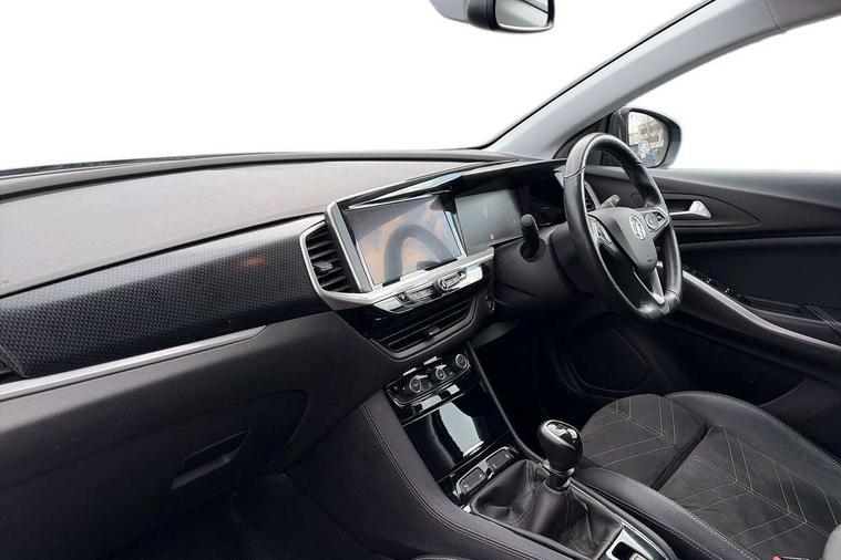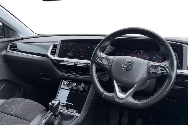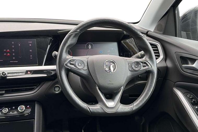 12" colour digital cluster, Central facia display with digital clock, outside air temperature and audio information, Cruise control with speed limiter, Digital fuel gauge with low fuel level warning light, Digital rev counter, Digital speedometer, Digital water temperature gauge with warning light, Driver drowsiness alert system, Driver information - Total mileage, service indicator, oil life, Front and rear parking distance sensors with 360 degree rear view camera and advanced park assist, Gearshift up/down indication light, Lane departure warning system, Lane keep assist, Lights on audible warning, Multi function trip computer - Trip odometer, vehicle range, average speed and fuel economy, instantaneous fuel economy and driving time, Multimedia navi pro with 10" colour touch+ sat nav+AM/FM/DAB radio, bluetooth audio streaming/mobile phone portal, Apple carplay/Android auto, USB, Power operated tailgate with foot sensor, Side blind spot alert, Speed sensitive electric power assisted steering, Speed sign recognition, Vauxhall connect including Emergency call (SOS e-call) and Breakdown call (b-call), Wireless charger for mobile devices, Anti-roll bars, Compound crank rear suspension with coil springs and gas pressure dampers, Independent decoupled MacPherson strut front suspension with gas pressure dampers and coil springs, anti-roll bar, Six speaker - four front + two rear, Steering wheel mounted audio/phone/cruise controls, Alloy effect front and rear skid plates, Automatic lighting control, Automatically dimming anti dazzle rear view mirror, Black door mirrors, Black side window trim, Body colour door handles, Body colour lower front and rear bumpers, protective wheel arches and lower door cladding, Body colour upper front bumper, Collapsible windscreen wipers, Dark tinted rear side and tailgate windows, Door to door illumination, Electric adjustable/heated/folding door mirrors, Electrically operated front and rear windows with safety auto reverse and one touch up/down facility, Front wiper system spraying directly from wipers, Hazard warning lights, Heated rear screen with timed cut off, High beam assist, High gloss black exterior detailing, High gloss black Griffin for Vizor and tailgate with high gloss black Grandland tailgate lettering, High gloss black roof rails, High level centre rear brake light, IntelliLux adaptive LED pixel headlights and LED tail lights, Intermittent rear window wash/wipe, LED daytime running lights, LED front fog lights, Magic wash, Manual headlight beam levelling, Partial heated windscreen, Rain sensor windscreen wipers, Rear side wing doors, Rear spoiler, Reversing light, Shark fin aerial, Soundproof insulated windscreen, Two speed windscreen wipers with variable intermittent wipe, Upper and lower bumper design, Vizor front grille, Welcome lighting, 12v plug in front console and 12v plug in boot, 3 bench rear seats in 2nd row, 3 spoke flat bottom leather steering wheel with satin chrome effect bezel, 4 way electric driver lumbar support, 4 way passenger electric lumbar support, 60/40 split folding rear seat with centre rear seat armrest and load though facility, Advanced predictive logic control system using a sun sensor, Alcantara upholstery, Alloy sports pedals, Ambient centre console downlighter, Automatic air direction and fan speed with manual override, Charcoal filter, Chrome effect interior door handles, Covered storage compartment in centre console and in driver armrest, Driver's centre armrest, Drivers and front passengers seat with height, reach, tilt, backrest adjustment and seat cushion extension, Dual zone electronic climate control, Ergonomic active drivers sports style seat, Ergonomic active front passenger sports style seat, Front door pockets with 2.6 litre capacity, Front seat back storage pockets, Fully carpeted luggage area, Height adjustable headrests, Illuminated driver/passenger sunvisors with vanity mirror, Illuminated luggage area, ISOFIX on front passenger and rear outer seats, Luggage compartment cover, Reach + rake adjustable steering column, Rear centre seat head restraint, Rear door pockets with 1.8 litre capacity, Rear passenger compartment heating ducts, Rear reading lights, Two drinks holders in centre console, Winter pack - Grandland, Anti-lock braking system (ABS), Automatic emergency braking with pedestrian detection, Child proof locks on rear doors, CSC - Cornering stability control, Deactivation switch for front passenger front and side impact airbags, Deflation detection system, Driver airbag, Dual seatbelt pretensioners on front seats, EBD - Electronic brakeforce distribution, Electronic parking brake, Electronic stability program (ESP) including traction control, Front brake ventilated disc 304mm diameter, Front passenger airbag, Front seat side impact airbags, Full-size curtain airbags for driver and front passenger, Hill start assist, Hydraulic Brake Assist (HBA), Inertia reel lap and diagonal seatbelts for all seats, Load limiters on outer rear seatbelt retractors, Pretensioners on outer rear seatbelt retractors, Rear brake ventilated disc 268mm diameter, Smart seatbelt reminder for front and rear seats, Tyre pressure monitoring system, Central locking, Deadlocking system, Electronically protected audio equipment, Engine deadlock immobiliser, Keyless entry and start, Locking wheel nuts, Remote security alarm system, Black door panels with black premium leather effect inserts, Dax decor facia panel with palladium medium finish, 19" diamond cut bi-colour alloy wheel, Tyre inflation kit,