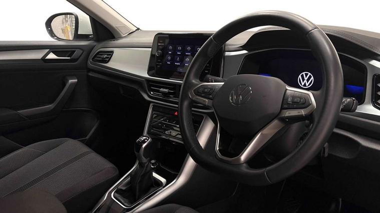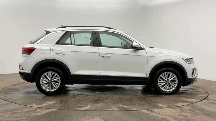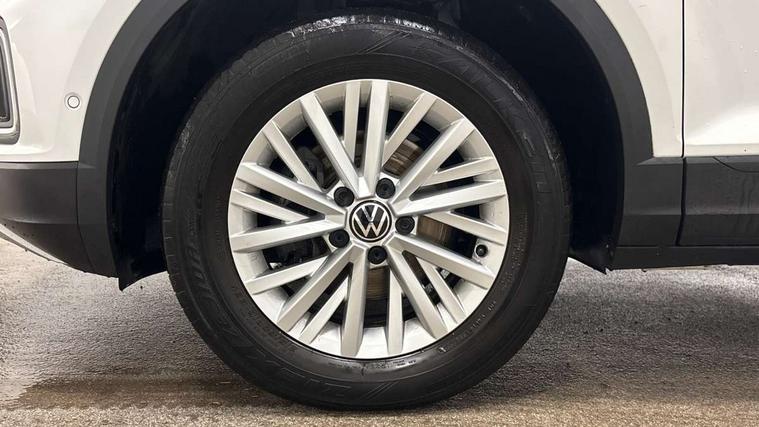 Bluetooth mobile phone interface, Driver alert system with fatigue detection, Driver tips and journey analysis, Emergency call service, Lane keeping system Lane Assist, Modified key software - reduce switch off time for key status change to Long no motion, Online services, Park assist including front and rear parking sensors, Power assisted speed sensitive steering, Service interval indicator, Tailgate/trunk lid release from outside, Think blue trainer driver tips and journey analysis, Warning sound and light for front seatbelts unfastened, Wireless app connect, Battery regeneration during braking, Front shock absorption, Rear shock absorption chassis with increased ride height, Start/stop function with battery regeneration, DAB Digital radio, Diversity antenna for FM reception, Front and rear 6 speakers, Music playback - MP3, WMA and AAC files, Premium USB cable in choice of either Apple or Android smartphone compatibility, SD card slot, Simultaneous pairing of 2 compatible mobile devices, Title and cover art display, We Connect and We Connect Plus functionality, 3rd brake light, Auto dimming interior rear view mirror, Automatic hazard lights activation under emergency braking, Automatic headlight control with LED separate daytime running lights with coming/leaving home function, Black roof rails, Body coloured bumpers and radiator grille with chrome trim and front fog lamps with chrome bezel, Body coloured exterior mirror housings and door handles, Extended roof spoiler, Exterior mirrors aspherical on driver side, convex on front passenger side, External USB type C socket and charging sockets, Front windscreen wiper with intermittent wipe and 4 position delay, Heated rear window, LED Headlights, LED rear combination lamps, LED rear number plate lights, LED tail lamp rear comination lamps, Power windows with comfort operation and circuit breaker, Rain sensor, Rear exhaust tailpipe, Rear fog light on one side and reversing lights on both sides, Rear side wing doors, Rear wash/wipe with intermittent wipe setting, Remote electrically foldable door mirrors, puddle lights and reverse activated passenger's door mirror, 12V power socket in centre console, 3 rear head restraints, 3 seat bench in 2nd row, 4 load lashing points in luggage compartment, Air care climatronic air conditoning system with active combination filter and 2-zone temperature control, Ambient lighting with mirror logo projection, Cloth upholstery, Door and side trim panel in cloth, Drawer under drivers seat, Driver/front passenger seat height adjustment, Front centre armrest, Front comfort sports seats, Front cupholders x 2, Front reading light, Instrument lighting, white adjustable panel illumination, Interior light delay, Isofix child seat preparation, Leather gearshift handle, Load-through provision with cup holder when folded down ('Unsplit rear seat bench, split folding backrest, with centre armrest), Luggage compartment lighting, Lumbar support for driver's and front passengers seat, Non-folding front passenger seat backrest, Single front passenger seat, Storage compartment in left and right luggage area, Storage compartment in rear doors, Storage compartments in driver and front passenger doors, Sunvisors with illuminated vanity mirrors, Variable boot floor, height adjustable and removable, Driver assistance pack without proactive passenger protection - T-Roc, 3 point height adj front seatbelts + pretensioners, 3 point seatbelts in outer rear with ECE label, ABS, Child locks on rear doors, Driver and front passenger airbag with front passenger airbag deactivation, Driver and front passenger safety-optimised head restraints, Drivers seatbelt reminder, Electronic parking brake, Electronic Stability Control (ESC) inc EDL (Electronic Differential Lock) and ASR (Traction Control), Front and rear passengers curtain airbag system including front side airbags, Front assist with city emergency braking and pedestrian monitoring, Front disc brakes, Front seat side impact airbags, Hill start assist, Predictive pedestrian protection, Rear disc brakes, Single tone horn, Tyre pressure loss indicator, Volkswagen roadside assistance, Alarm with interior protection, Anti-theft alarm system with interior monitoring, backup horn, and towing protection, Remote central locking with SAFELOCK, radio remote control with 2 remote control folding keys, Pewter matt decorative inserts for intrument panel, centre console and door panels at the front, Trims for alloy wheels,