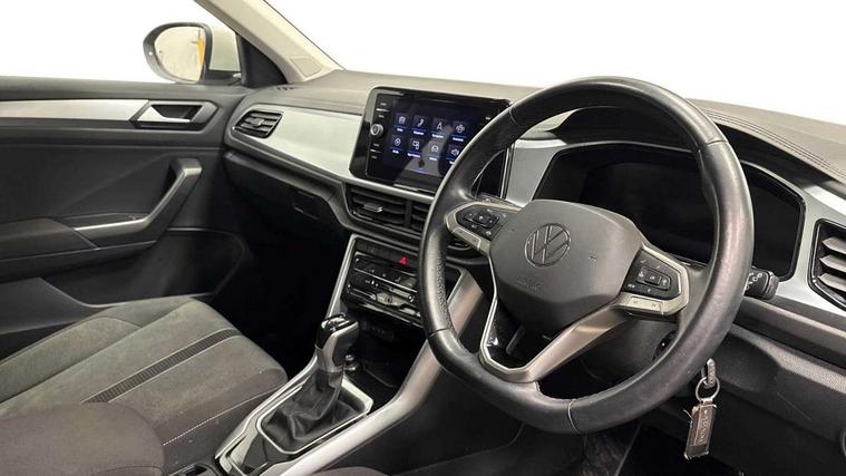Bluetooth mobile phone interface, Driver alert system with fatigue detection, Driver tips and journey analysis, Emergency call service, Lane keeping system Lane Assist, Modified key software - reduce switch off time for key status change to Long no motion, Online services, Park assist including front and rear parking sensors, Power assisted speed sensitive steering, Service interval indicator, Tailgate/trunk lid release from outside, Think blue trainer driver tips and journey analysis, Warning sound and light for front seatbelts unfastened, Wireless app connect, Battery regeneration during braking, Front shock absorption, Rear shock absorption chassis with increased ride height, Start/stop function with battery regeneration, DAB Digital radio, Diversity antenna for FM reception, Front and rear 6 speakers, Music playback - MP3, WMA and AAC files, Premium USB cable in choice of either Apple or Android smartphone compatibility, SD card slot, Simultaneous pairing of 2 compatible mobile devices, Title and cover art display, We Connect and We Connect Plus functionality, 3rd brake light, Auto dimming interior rear view mirror, Automatic hazard lights activation under emergency braking, Automatic headlight control with LED separate daytime running lights with coming/leaving home function, Black roof rails, Body coloured bumpers and radiator grille with chrome trim and front fog lamps with chrome bezel, Body coloured exterior mirror housings and door handles, Extended roof spoiler, Exterior mirrors aspherical on driver side, convex on front passenger side, External USB type C socket and charging sockets, Front windscreen wiper with intermittent wipe and 4 position delay, Heated rear window, LED Headlights, LED rear combination lamps, LED rear number plate lights, LED tail lamp rear comination lamps, Power windows with comfort operation and circuit breaker, Rain sensor, Rear exhaust tailpipe, Rear fog light on one side and reversing lights on both sides, Rear side wing doors, Rear wash/wipe with intermittent wipe setting, Remote electrically foldable door mirrors, puddle lights and reverse activated passenger's door mirror, 12V power socket in centre console, 3 rear head restraints, 3 seat bench in 2nd row, 4 load lashing points in luggage compartment, Air care climatronic air conditoning system with active combination filter and 2-zone temperature control, Ambient lighting with mirror logo projection, Cloth upholstery, Door and side trim panel in cloth, Drawer under drivers seat, Driver/front passenger seat height adjustment, Front centre armrest, Front comfort sports seats, Front cupholders x 2, Front reading light, Instrument lighting, white adjustable panel illumination, Interior light delay, Isofix child seat preparation, Leather gearshift handle, Load-through provision with cup holder when folded down ('Unsplit rear seat bench, split folding backrest, with centre armrest), Luggage compartment lighting, Lumbar support for driver's and front passengers seat, Non-folding front passenger seat backrest, Single front passenger seat, Storage compartment in left and right luggage area, Storage compartment in rear doors, Storage compartments in driver and front passenger doors, Sunvisors with illuminated vanity mirrors, Variable boot floor, height adjustable and removable, Driver assistance pack without proactive passenger protection - T-Roc, 3 point height adj front seatbelts + pretensioners, 3 point seatbelts in outer rear with ECE label, ABS, Child locks on rear doors, Driver and front passenger airbag with front passenger airbag deactivation, Driver and front passenger safety-optimised head restraints, Drivers seatbelt reminder, Electronic parking brake, Electronic Stability Control (ESC) inc EDL (Electronic Differential Lock) and ASR (Traction Control), Front and rear passengers curtain airbag system including front side airbags, Front assist with city emergency braking and pedestrian monitoring, Front disc brakes, Front seat side impact airbags, Hill start assist, Predictive pedestrian protection, Rear disc brakes, Single tone horn, Tyre pressure loss indicator, Volkswagen roadside assistance, Alarm with interior protection, Anti-theft alarm system with interior monitoring, backup horn, and towing protection, Remote central locking with SAFELOCK, radio remote control with 2 remote control folding keys, Pewter matt decorative inserts for intrument panel, centre console and door panels at the front, Trims for alloy wheels,