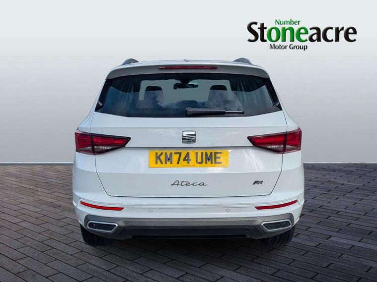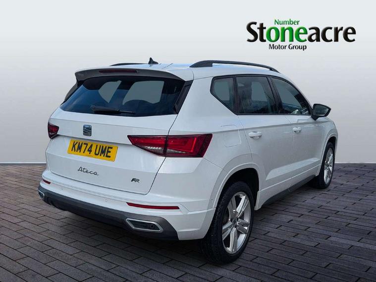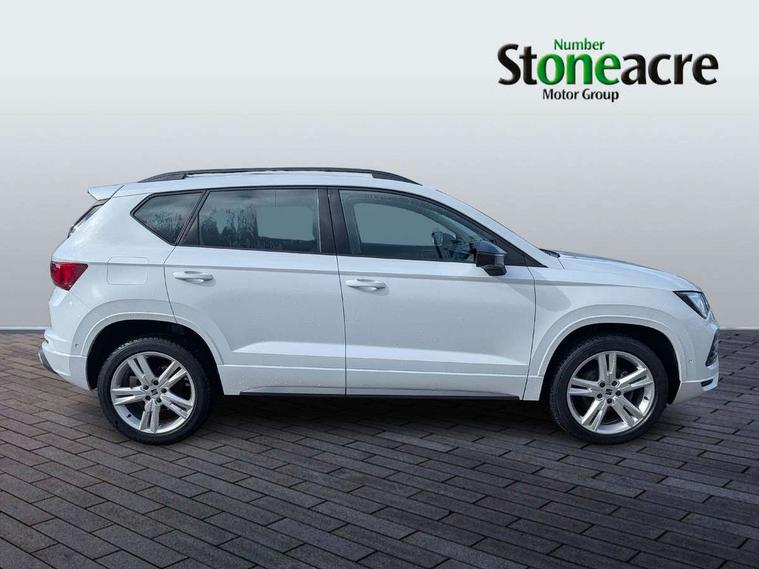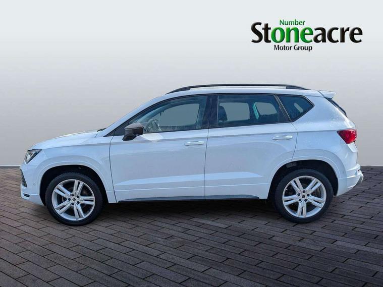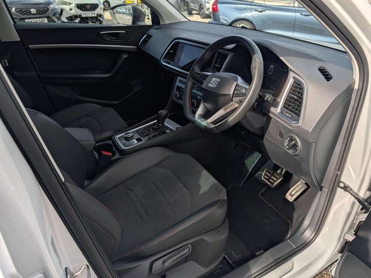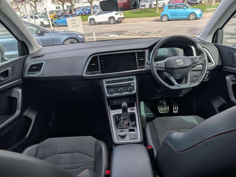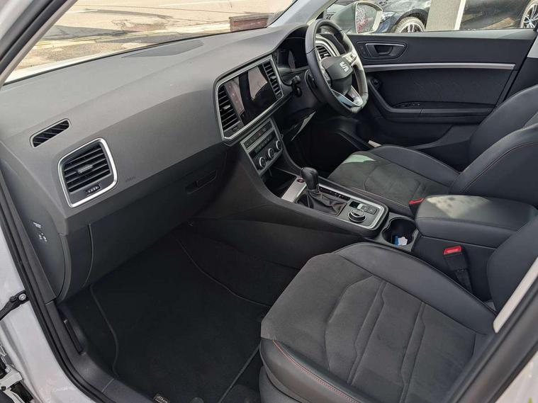 8" Digital cockpit, Colour multi-function on board computer display, Cruise control system with speed limiter, E-call, Outside temperature gauge, Progressive power assisted steering, SEAT drive profile with driving experience button - Normal, Sport, Eco and Individual mode, gearshift, steering and throttle response, Self parking functionality (includes front and rear parking sensors), Start/stop system, Tailgate, Trip computer, wired and wireless full link smartphone integration, Wireless phone charger, Steering wheel mounted audio/phone controls, Black roof rails, Black side window trim, Body colour bumpers, Body coloured wheel arch surrounds, Chrome front grille frame, Dark tinted rear windows, Daytime running lights, Door mirrors with welcome light silhouette, Dynamic headlight range control with self adjusting whilst driving, Electric adjustable/heated/folding door mirrors, Front and rear electric windows, Full LED headlamps with lens and LED front fog lamps with cornering function, Illuminated aluminium front door sill, LED 3rd brake light, LED rear tail lights with dynamic indicators, Rear exhaust tailpipe, Rear fog lights, Rear side wing doors, Rear wash/wipe, Roof spoiler, Variable front intermittent wipers, 12V socket in front, 3 seat bench in 2nd row, 60/40 split folding rear seat, Aluminium pedals, Dinamica upholstery with front comfort seats, Drawer under right front seat, Dual zone climate control, Front and rear head restraints, Front centre armrest, Front seat back storage pockets, Height adjustable driver and passenger seat with lumbar adjustment, ISOFIX points in outer rear seats with top tether anchorage points, Leather sports steering wheel and gear knob, Rear armrest and easy back seat release mechanism from boot, Single front passenger seat, Steering wheel mounted gearshift paddles, Convenience pack - Ateca, Interior lighting pack - Ateca, Navigation system pack with DAB - Ateca, Safety and driving pack with attention and drowsiness assist - Ateca, 3x3 point rear seatbelts, ABS, Traction control system (TCS), Electronic stability control (ESC) and Electronic differential lock system (XDS), Airbags - Driver and front passenger airbag with deactivation, front side, two curtain and driver's knee airbags, Electric parking brake with auto hold function, Front and rear seatbelt reminder, Front assist with autonomous emergency braking, Hill hold control, Manual rear child locks, Single tone horn, Tiredness recognition system, Tyre pressure monitoring system, Alarm, Keyless entry, Locking wheel bolts, Remote central locking, Chrome interior detailing, 18" Brillaint silver alloy wheels,