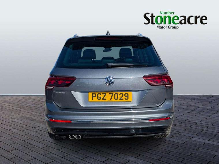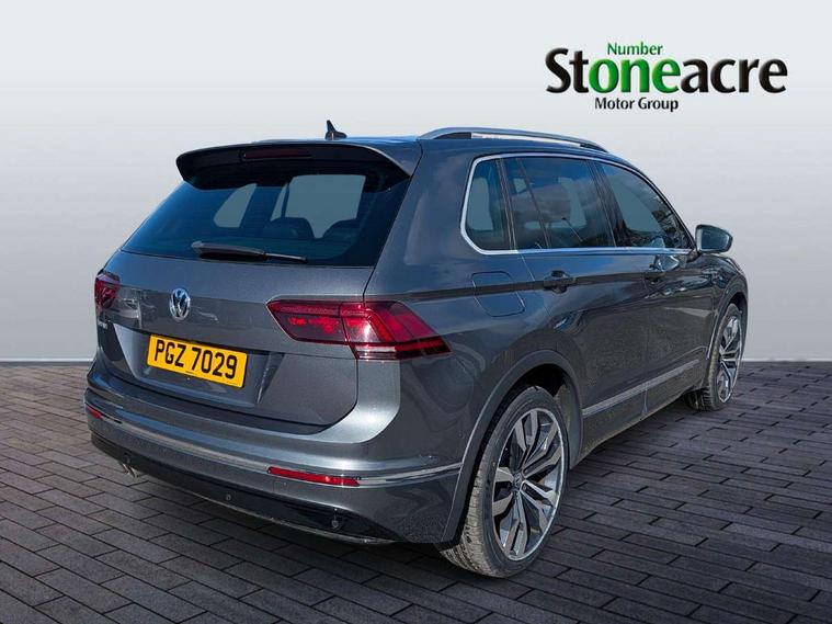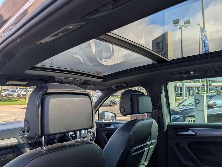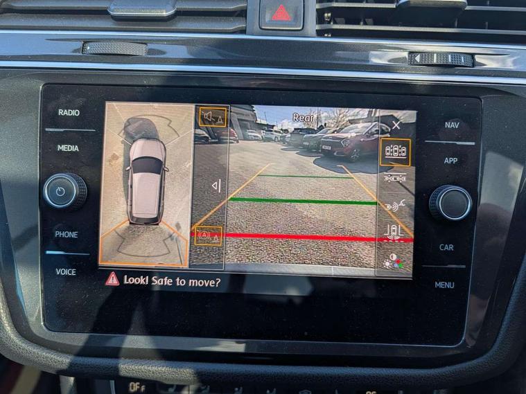 2D/3D map view, Active information display, Adaptive cruise control, App-Connect, Bluetooth phone integration system, Car information display, Distance control assist, Driver profile selection, Front assist, radar sensor controlled distance monitor, city emergency braking + predictive pedestrian protection, Instrument cluster, Lane assist, Lights on warning, Multifunction computer with visual gear change recommendation for fuel consumption, Outside temperature display, Service interval indicator, Speed limiter, Start/Stop function, Warning sound and light for doors and tailgate open, Battery regeneration during braking, XDS electronic differential lock for improved traction and handling, 2 x USB connection + USB charging socket, 4 X 20 watt output, DAB Digital radio, SD card slot, Simultaneous pairing of 2 compatible mobile devices, SMS functionality - read, compose and send SMS messages using touch-screen display, Title and cover art display, 3D effect cherry red LED rear tail lights, Auto dimming interior mirror, Automatic activation of hazard warning lights, Black grained lower door protectors with chrome inserts, Body colour door handles, Body colour door mirrors, Body coloured bumpers, Chrome side window surrounds, Chrome trimmed radiator grille, Coming/leaving home lighting function, Dusk sensor + auto driving lights, Electric panoramic sunroof with sunblind, Electrically heated and foldable door mirrors, door mirror puddle lights and reverse activated kerb view adjustment on passenger's door mirror, Front and rear electric windows, Heated rear window, High level 3rd brake light, LED headlights with dynamic light assist daytime running lights and cornering front fog lights, LED rear number plate lights, Piano black front air intake and rear diffuser, Rain sensor windscreen wipers, Rear tinted glass from B-pillar backwards approx 65% tinted, Rear windscreen washer and wiper with interval delay, Side door sills with chrome inserts, Silver front underbody protection and rear diffuser, Silver roof rails, Windscreen wipers/ intermittent wipe + 4 position delay, 12V socket in centre console storage area, 2 cup holders in front, 3 rear headrests, 3 zone climate control, 4 load lashing points, 40:20:40 split folding rear seats, Bag hook in luggage compartment, Driver and front passenger under seat drawer, Foldable front passenger seat backrest, Front + rear carpet mats, Front centre armrest with 12v socket, Front centre armrest with storage + rear 2 air vents, Front seat back storage pockets, Front seatback folding tables, Height/reach adjust steering wheel, Illuminated driver/passenger vanity mirrors, Illuminated scuff plates, Instrument lighting white adjustable panel illumination, Interior light with delay, Isofix Preparation 2 Rear child seats, Leather gear knob, Load through provision with 2 cupholders when folded, Lockable cooled glovebox, Luggage compartment lighting, Map pockets on front seats, Passenger seat height adjuster, Removable luggage cover, Sliding/reclining rear seats, Storage compartment in driver's door, Storage compartment in passenger's door, Storage compartment in rear doors, Storage compartments in luggage area left and right, Storage tray on dashboard, Sunglasses storage, Variable boot floor, height adjustable and removable, Ambient lighting pack - Tiguan, 3 rear 3 point seatbelts, ABS+EBD+Brake assist, Active bonnet, Active pedestrian safety system, Curtain airbags, Driver/Front Passenger airbags, Driver/Passenger whiplash optimised head restraints, Drivers knee airbag, DTC - Drag torque control, Electronic parking brake with auto hold, ESC with EDL, ASR, EDTC and trailer stabilisation function, First aid kit, Front seat side impact airbags, Front side airbags, Front ventilated disc brakes and rear disc brakes, Head airbag system, Height adjustable front 3 point seatbelts + pretensioners, Hill hold control, Passenger airbag deactivate switch, Passenger knee airbag, Pre crash preventive occupant protection, Rear side airbags, Rigid safety cell with front and rear crumple zones, Two tone horn, Warning sound and light for front seat belts if unfastened, Warning triangle, Alarm with interior protection, Electronic engine immobiliser, Remote central locking with 2 remote folding keys, Chrome door trim inserts, Dark grey decorative inserts in dash and door panel, Piano black decorative inserts in centre console,