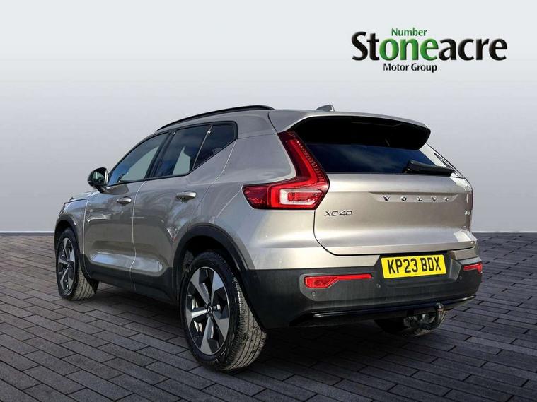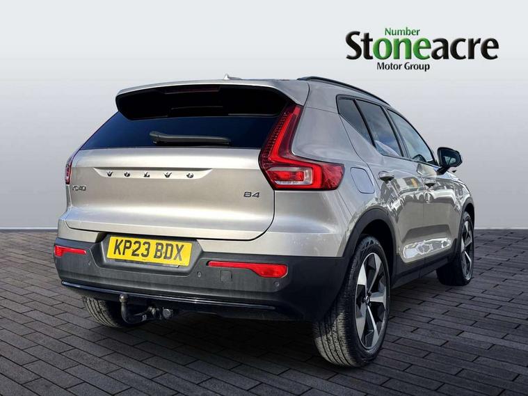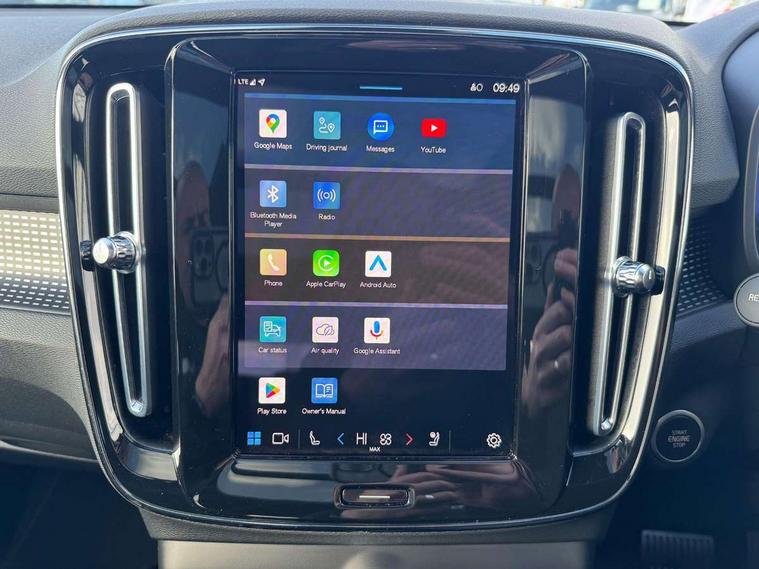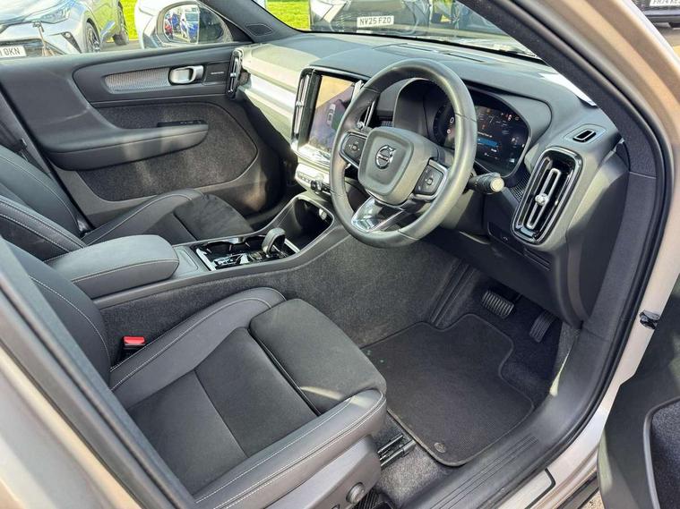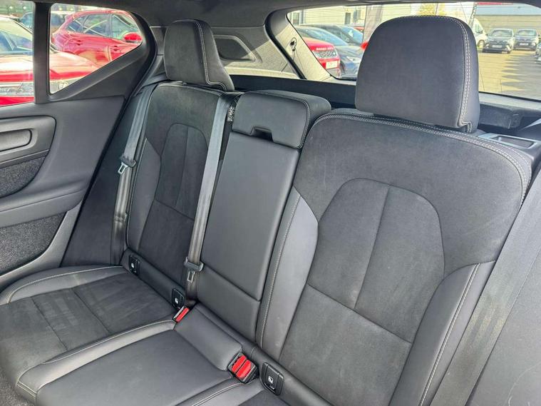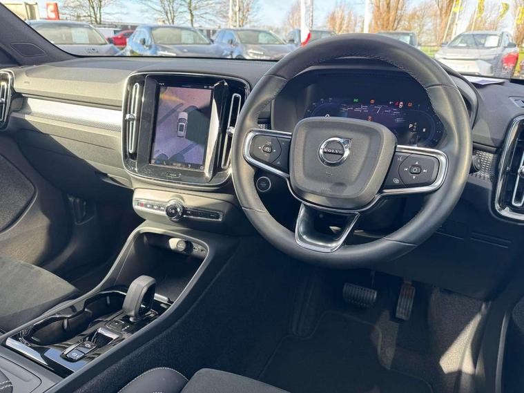 12.3" Progressive Driver Display, 360 degree surround view parking camera with side proximity sensors, 9" centre console portrait touch screen, Adjustable steering wheel force, Bluetooth hands free telephone kit, E-call, Front park assist, Google automatic services - Nav with google maps, apple carplay/android auto, voice recognition with google assistant, Hands free power tailgate, Lane keep assist with driver alert control, Oncoming Lane Mitigation, Rear park assist, Speed limiter, Speed sensitive steering, Wireless/Inductive Mobile Phone Charging, Dynamic chassis, DAB Digital radio, Premium Sound by Harman Kardon, Dolby Pro Logic II Surround Sound, Dirac Unsion, 12 speakers/600W and subwoofer, Steering wheel mounted remote controls, Active bending pixel LED headlights with adaptive shadow technology, Active high beam incorporating daytime running lights, Adaptive brake lights with high level LED brake lights, Auto dimming interior mirror, Automatic headlamp levelling, Dark tinted windows for rear door side windows and cargo compartment, Front aluminium tread plates, Front and rear electric windows, Headlight cleaning system, High gloss black front and rear skid plate, High gloss black mesh front grille with high gloss black surround, High gloss black window trim, Home safe and approach lighting, Integrated roof rails in high gloss black, LED front fog lights, Power glass tilt and slide panoramic sunroof with sun curtain, Puddle lights, Rain sensor with automatic windscreen wiper activation, Rear side wing doors, Rear wiper, Roof antenna, Roof spoiler, Visible VIN plate, 12V socket in front tunnel console and cargo compartment, 2 zone electronic climate control with clear zone air quality system and pollen filter, 3 seat bench in 2nd row, 3 Spoke tailored steering wheel with chrome trim, 60/40 versatile split folding rear seat, A-pillar parking ticket holder, Ambient front door and instrumental panel lighting, Centre console cupholders and storage, Flexible load floor and grocery bag holder, Floor mats, Front door pocket and front cupholder illumination, Front footwell illumination, Front headrests, Front reading light and theatre lighting, Front seat cushion extensions, Front tunnel pocket, Glovebox bag hook, Heated front seats, Height adjustable passenger seat, Height/reach adjustable steering column, High gloss centre tunnel deco, Illuminated glovebox, Illuminated luggage compartment, Illuminated tailgate, Illuminated vanity mirrors, Integrated waste bin, Isofix attachments on rear seats, Load protection net, Multi directional lumbar support, Power driver seat with memory + exterior mirrors memory, Power folding rear headrests, Power passenger seat, Rear armrest / integral cup holders / storage tray, Rear reading and courtesy lights, Single front passenger seat, Underfloor cargo storage, Climate pack without heated front seats - XC40, Driver assist pack - XC40, 3x3 point rear seatbelts, City safety with steering support with Pedestrian + cyclist + front collision warning with full auto brake and rear auto brake, Drivers knee airbag, Dual stage driver/passenger airbags, Electronic parking brake with auto hold, First aid kit, Front and outer rear seatbelt reminder and pretensioners, Front seats SIPS airbags, Hill descent control, Hill start assist, Inflatable curtain, Passenger airbag cut-off device, Power child locks on rear doors, Road sign information display, Run off Road Mitigation, Run off Road Protection, SIPS (Side Impact Protection System), Slippery road and hazard light alert, Stability and Traction Control with Spin control, Engine Drag Control and Corner Traction Control, Tyre pressure monitoring system, Vehicle deceleration control with Anti-lock Brake System, Electronic Brake Distribution and Emergency Brake Assist, Warning triangle, WHIPS whiplash protection system - front, Anti-theft alarm including immobiliser/volume sensor + level sensor, Key integrated remote control central locking + fuel flap with deadlocking system and auto open/close power windows, Keyless drive includes keyless entry and keyless start, Locking wheel nuts,