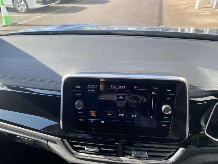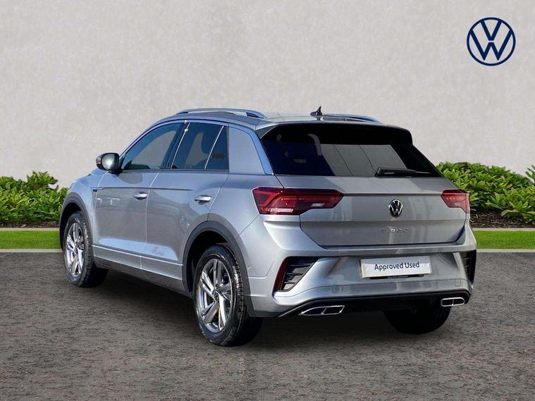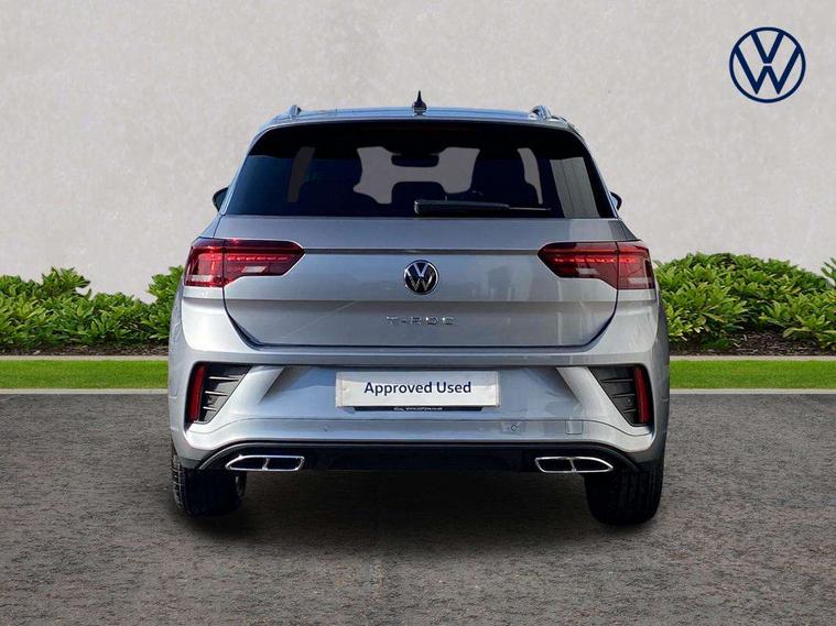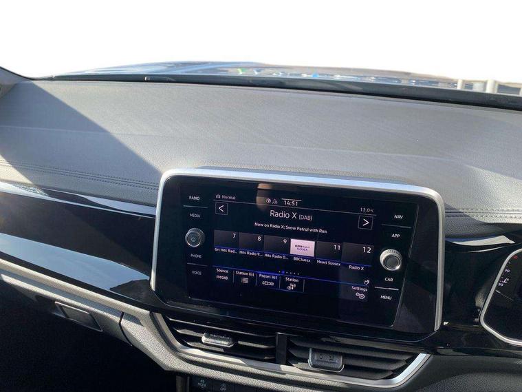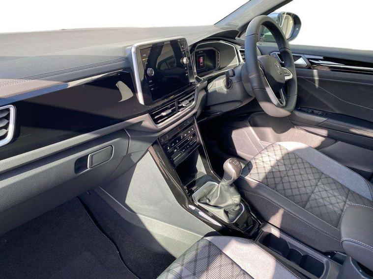 10.25" Digital cockpit pro, Advanced driver attention and drowsiness monitor, Emergency call service, Lane keeping system Lane Assist, Mobile phone interface, Modified key software - reduce switch off time for key status change to Long no motion, Online services, Park assist including front and rear parking sensors, Service interval indicator, Tailgate/trunk lid release from outside, Think blue trainer driver tips and journey analysis, Warning sound and light for front seatbelts unfastened, Wireless app connect, Battery regeneration during braking, Start/stop function with battery regeneration, DAB Digital radio, Diversity antenna for FM reception, Front and rear 6 speakers, Music playback - MP3, WMA and AAC files, Premium USB cable in choice of either Apple or Android smartphone compatibility, SD card slot, Simultaneous pairing of 2 compatible mobile devices, Title and cover art display, We Connect and We Connect Plus functionality, Auto dimming interior rear view mirror, Automatic hazard lights activation under emergency braking, Automatic headlight control with LED separate daytime running lights with coming/leaving home function, Body coloured exterior mirror housings and door handles, Electrically adjustable and heated door mirrors, Extended roof spoiler, Exterior mirrors aspherical on driver side, convex on front passenger side, External USB type C socket and charging sockets, Front windscreen wiper with intermittent wipe and 4 position delay, Heated rear window, LED 3rd brake light, LED rear combination lamps, LED rear number plate lights, Power windows with comfort operation and circuit breaker, Privacy glass for rear side windows and rear window, R-Line design body coloured bumpers, Rain sensor, Rear exhaust tailpipe, Rear fog light on one side and reversing lights on both sides, Rear side wing doors, Rear wash/wipe with intermittent wipe setting, Remote electrically foldable door mirrors, puddle lights and reverse activated passenger's door mirror, 12V power socket in centre console, 3 rear head restraints, 3 seat bench in 2nd row, 4 load lashing points in luggage compartment, Air care climatronic air conditoning system with active combination filter and 2-zone temperature control, Black roof lining, Chrome plated decorative trims, Chrome plated radiator grille inserts, air vent surrounds and light switch surrounds, Door and side trim panel with leatherette insert, Front + rear carpet mats, Front centre armrest, Front cupholders x 2, Front footwell illumination, Front reading light, Front scuff plates with R Line logo, Front seat back storage pockets, Glove compartment door with light, Instrument lighting, white adjustable panel illumination, Interior ambient lighting and surround lighting, Interior light delay, Isofix child seat preparation, Leather gearshift handle, Load-through provision with cup holder when folded down ('Unsplit rear seat bench, split folding backrest, with centre armrest), Luggage compartment lighting, Single front passenger seat, Stainless steel pedals, Storage compartment in left and right luggage area, Storage compartment in rear doors, Storage compartments in driver and front passenger doors, Sunvisors with illuminated vanity mirrors, Variable boot floor, height adjustable and removable, Driver assistance pack without proactive passenger protection - T-Roc, 3 point height adj front seatbelts + pretensioners, 3 point seatbelts in outer rear with ECE label, ABS, Child locks on rear doors, City emergency braking and pedestrian monitoring, Driver and front passenger airbag with front passenger airbag deactivation, Driver and front passenger safety-optimised head restraints, Drivers seatbelt reminder, Electronic parking brake, Electronic Stability Control (ESC) inc EDL (Electronic Differential Lock) and ASR (Traction Control), Front and rear passengers curtain airbag system including front side airbags, Hill start assist, Predictive pedestrian protection, Rear disc brakes, Two tone horn, Tyre pressure loss indicator, Volkswagen roadside assistance, Piano black decorative inserts in dashboard and front door trim panels, Trims for alloy wheels,