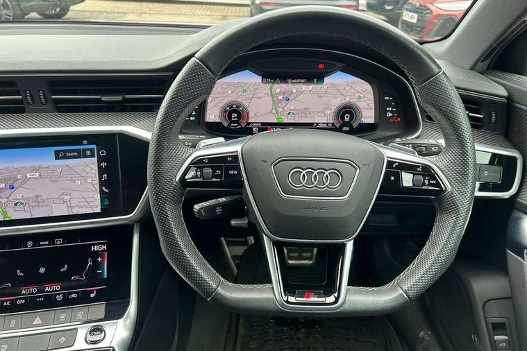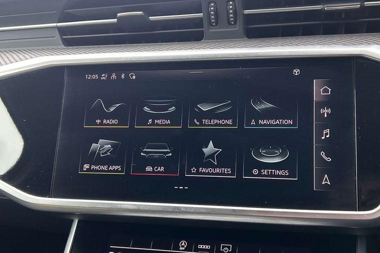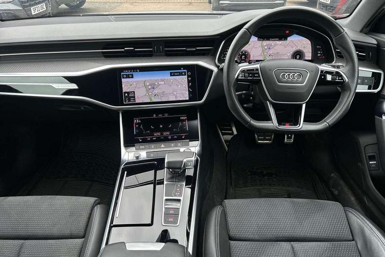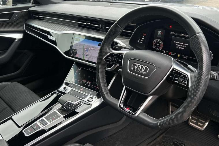 7" high resolution colour driver information display system, Audi connect safety and service (e-call), Audi drive select, Audi parking system plus - acoustic and visual park assist system for front and rear, Audi smartphone interface, Automatic start/stop system with coasting functionality, Bluetooth interface, Lane departure warning system, MMI navigation with MMI touch + twin touch screens 8.8" and 8.6" with haptic and acoustic feedback, Power operated tailgate, Progressive steering, Rear view camera, Service interval indicator, Voice control system, 12V Mild hybrid, 24 litre AdBlue tank, Diesel particulate filter, Quattro on demand, Sports suspension, Audi music interface, Audi sound system, Auxiliary input socket, DAB Digital radio, USB connection, Black roof rails, Electric front/rear windows, Frameless auto dimming interior rear view mirror, Gloss black exterior mirror housings, Gloss black highlights on the exterior area of the Audi Single frame, Gloss black highlights on the front and rear bumpers, Gloss black highlights on the radiator grille, Gloss black highlights on the side windows trim strips, Headlight washers, Heat insulating glass in side and rear windows, Heat insulating glass in windshield, LED rear lights, LED signature front daytime running light, Matrix LED headlights with dynamic rear indicators, Matt black rear diffuser with diffuser strip and tailpipes in chrome, Matt black side air intake grille with inlay in matt aluminium, Privacy glass, Rain and light sensors, Rear roof spoiler, Signature rear LED light design, 2 zone deluxe electronic climate control, 4 way electric lumbar support for driver and front passenger, 40/20/40 split folding 3 rear seat bench in 3 parts with rear centre armrest, Black cloth headlining, Electrically adjustable front seats with driver memory, Front centre armrest, Front head restraints, Front/rear floor mats, Heated front seats, Height/reach adjust steering wheel, Illuminated door sill trims with S logo, Illuminated sun visors with vanity mirrors, ISOFIX child seat mounting and Top Tether with front passenger airbag deactivation, Leather gear knob, Luggage compartment system, Rear headrests, Stainless steel pedals and foot rest, Tool kit and car jack, LED Interior Ambient Lighting Pack - A6, Non smoking pack - A6, 3 point seatbelts on all seats, Airbags - Front side, front and rear including head, Audi pre-sense front, Black seatbelts, EBD - Electronic brakeforce distribution, Electromechanical parking brake, Electronic Stability Control (ESC) including ABS, ASR and EDL, Extended pedestrian protection measures, Seatbelt monitoring, Tyre pressure warning light, Warning triangle and first aid kit, Anti theft alarm with tow away protection, Anti-theft wheel bolts and wheel loosening detection, Immobiliser, Keyless Go, Remote central locking, Matt brushed aluminium dark inlays, 20" 5 V spoke star design Audi sport cast aluminium alloy wheels in matt titanium look,